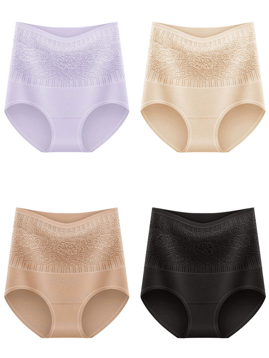 4 stk. højtaljede undertøj til kvinder med kunstnerisk blomsterprint