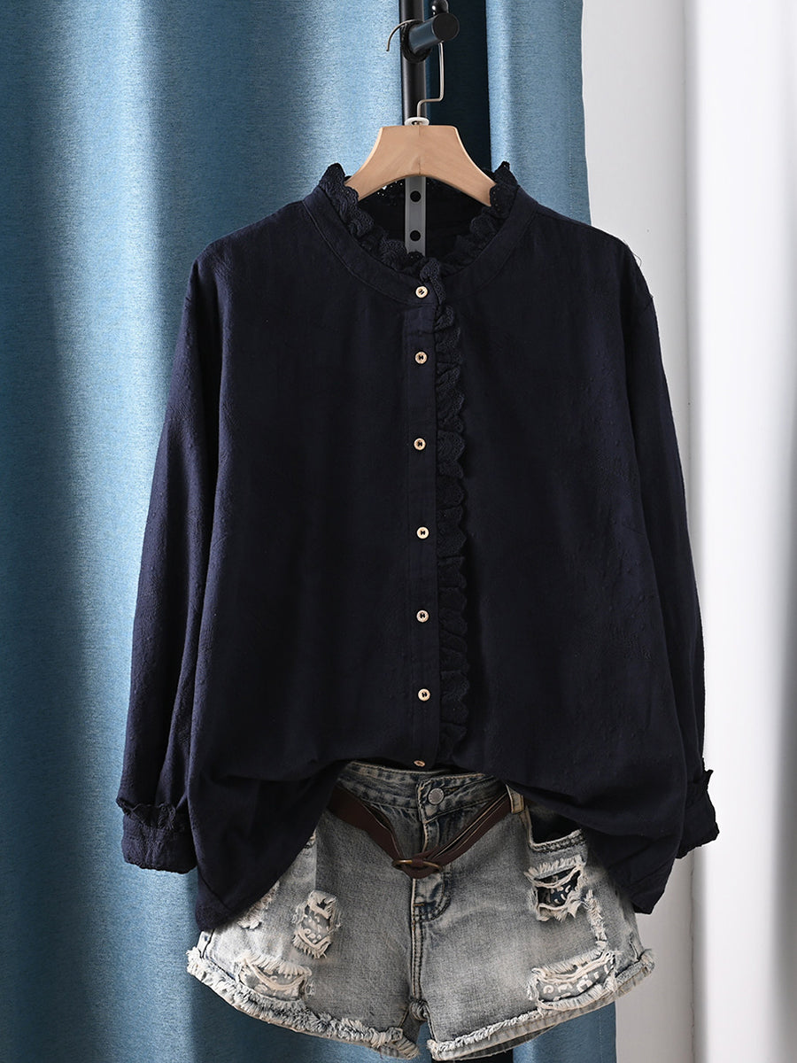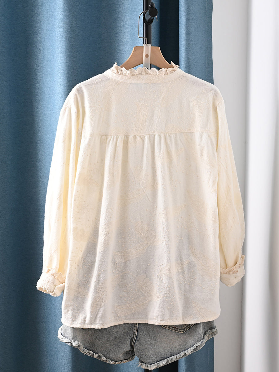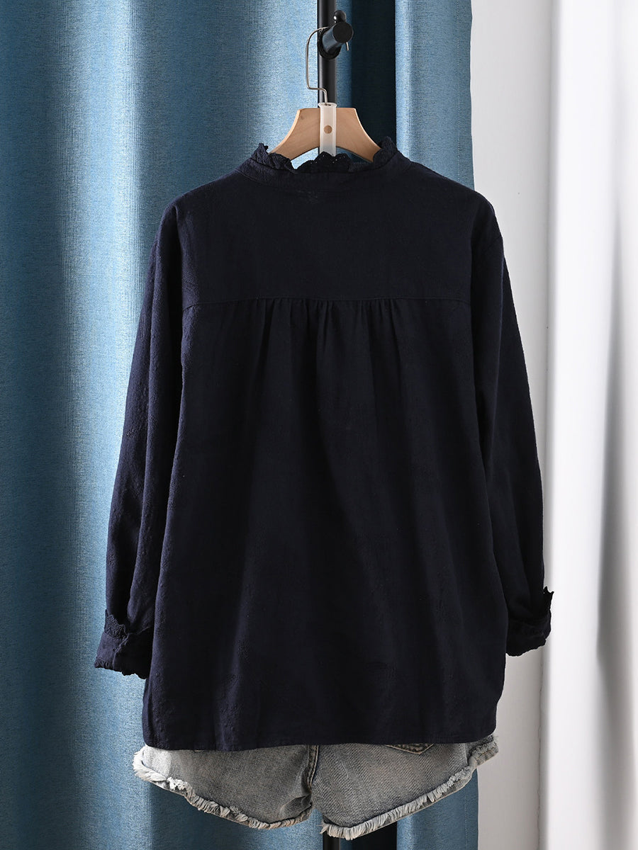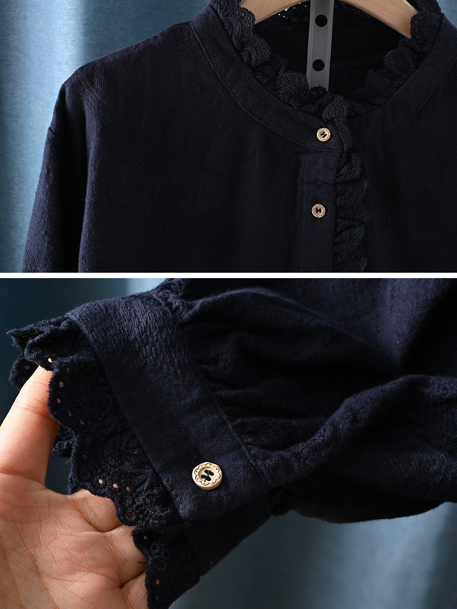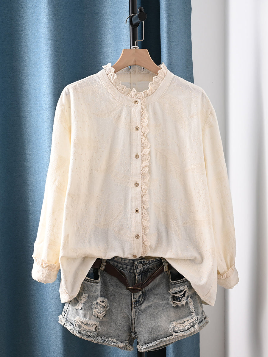 Kunstnerisk forårsskjorte med broderi og blonder til kvinder i 100% bomuld