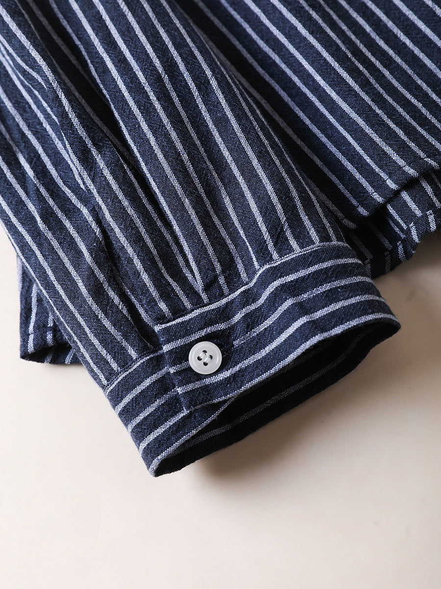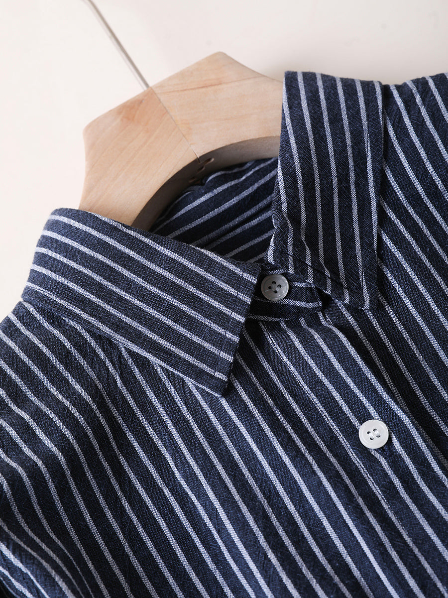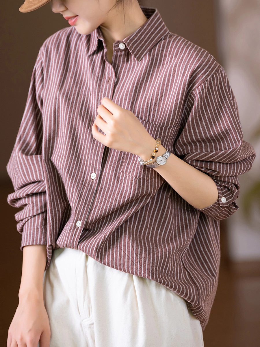 Dameskjorte med striber og nedadgående krave i 100% bomuld