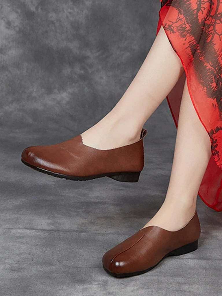 Kvinders afslappede bløde ægte lædersko med lav hæl