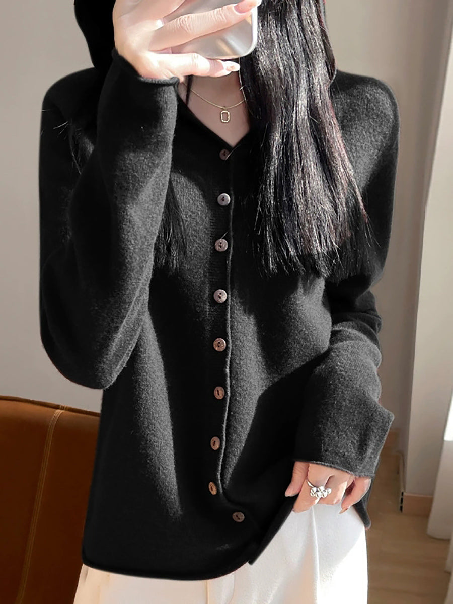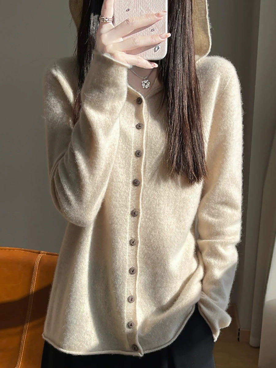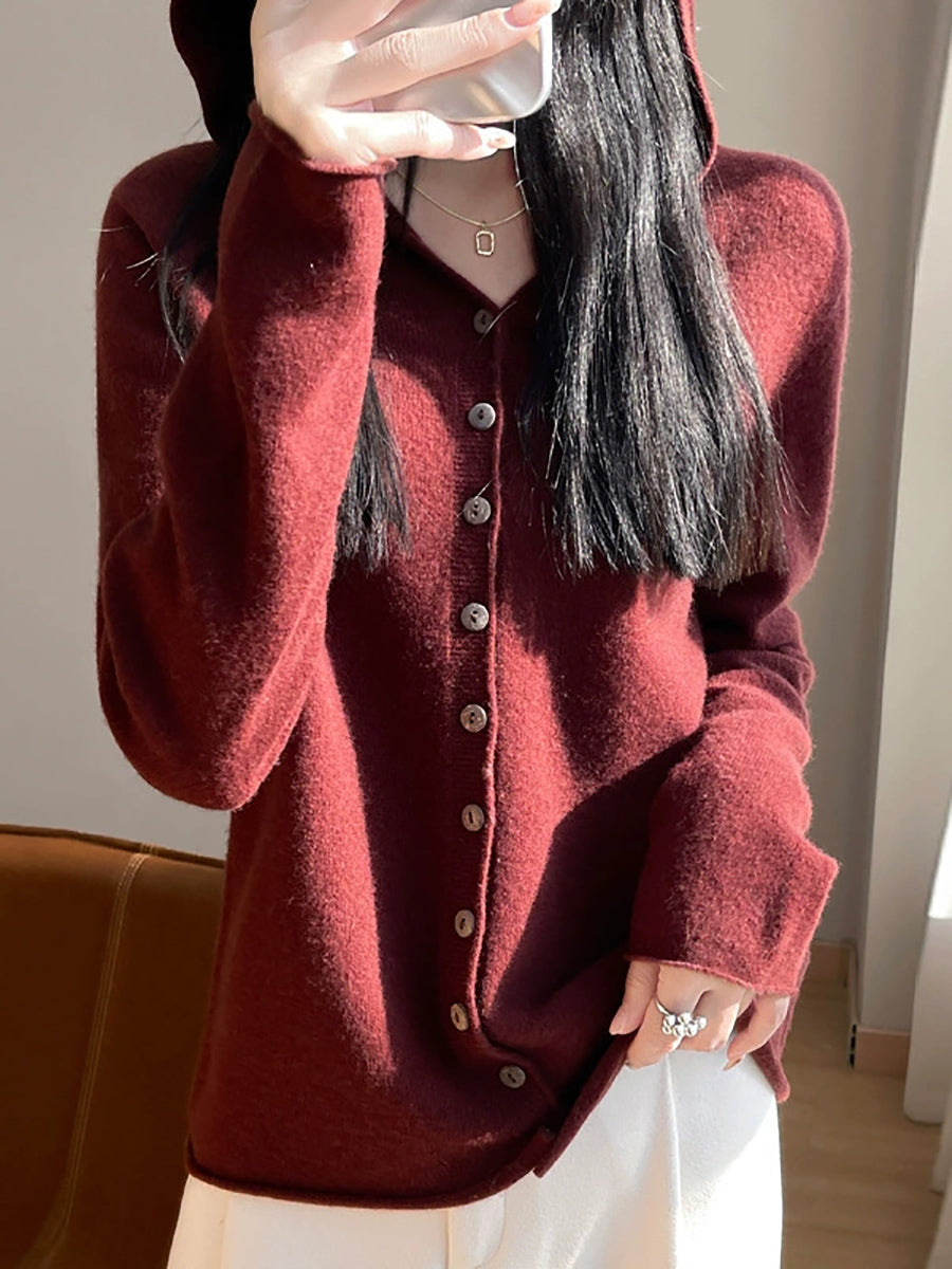Kvinders forårskunstnerisk cardigan i ren farve med hætte
