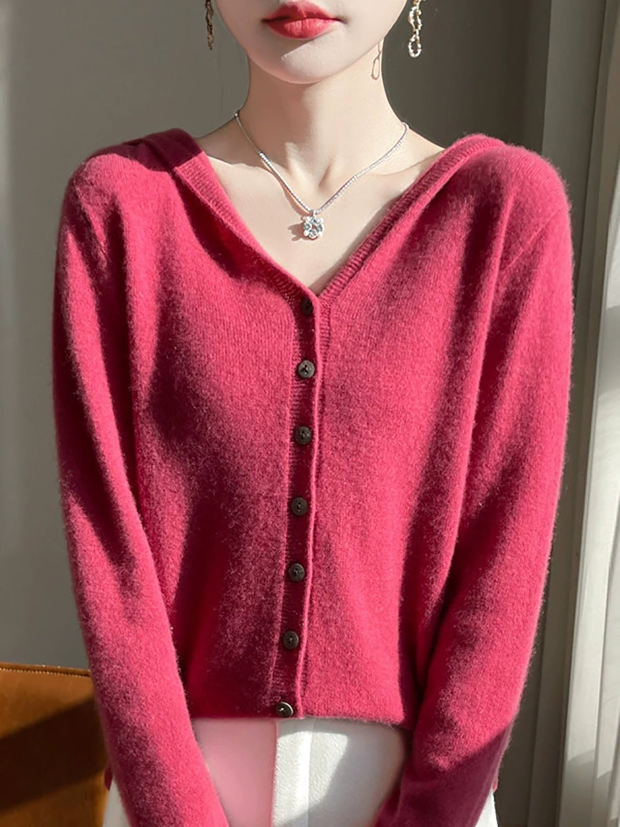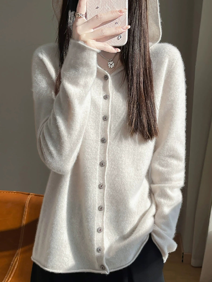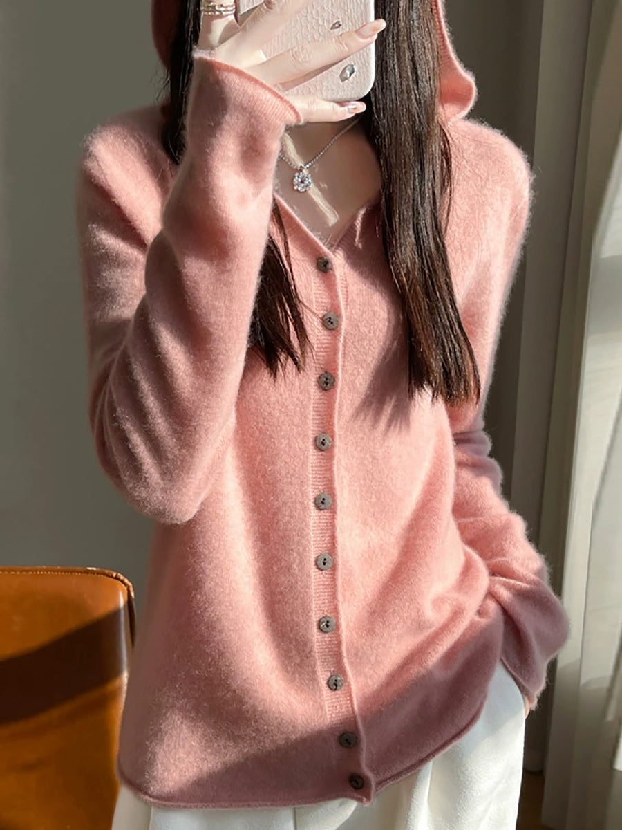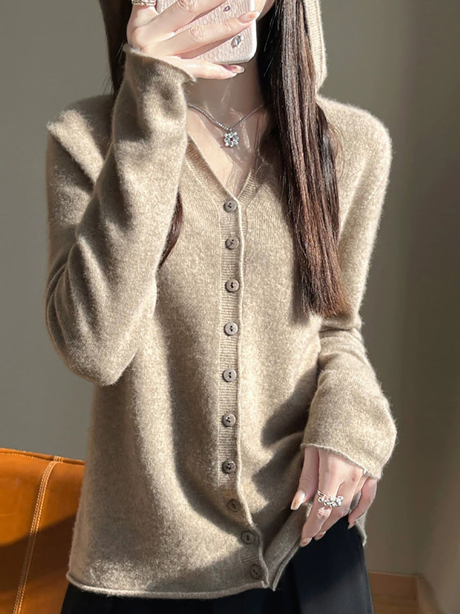 Kvinders forårskunstnerisk cardigan i ren farve med hætte