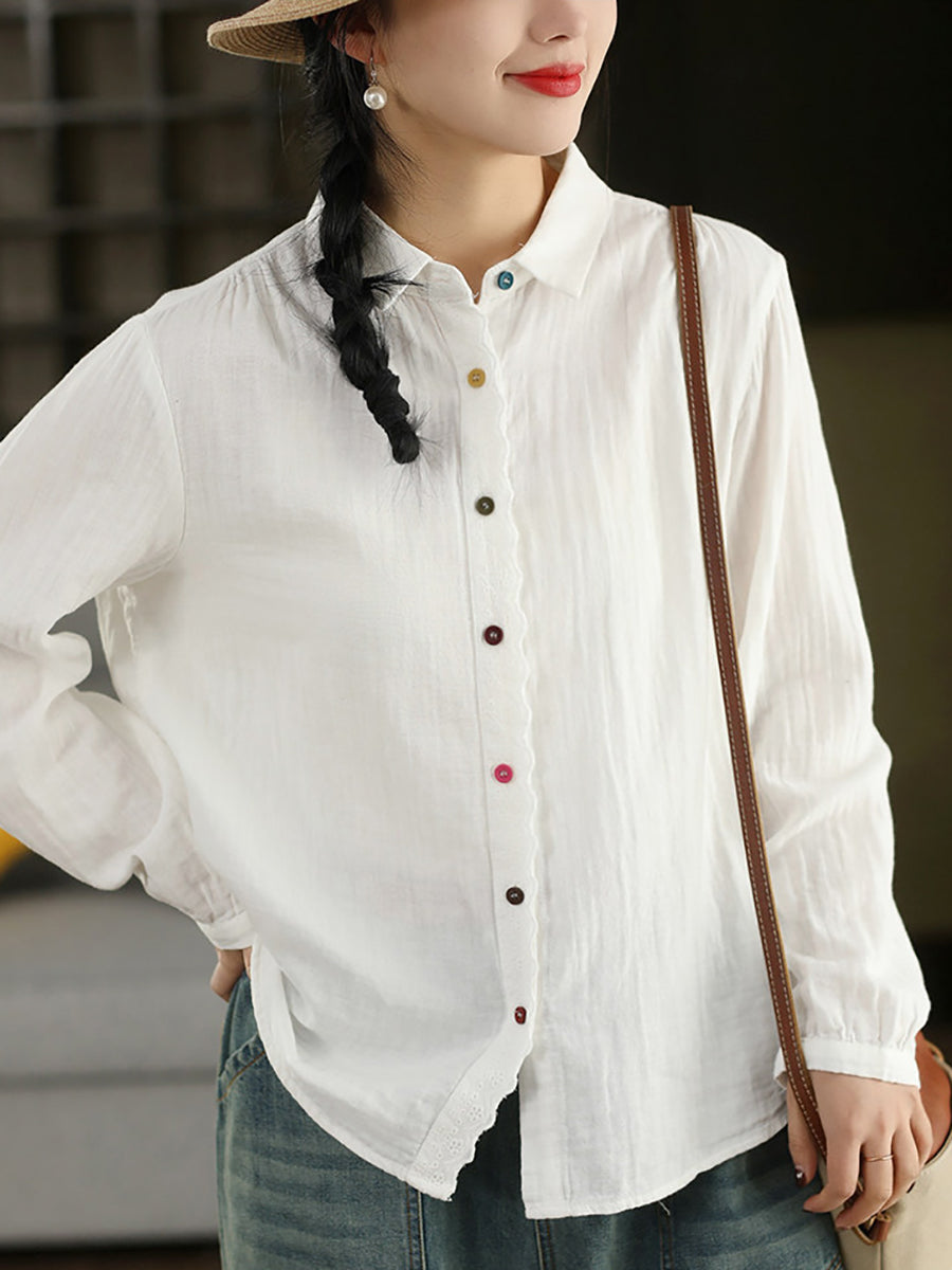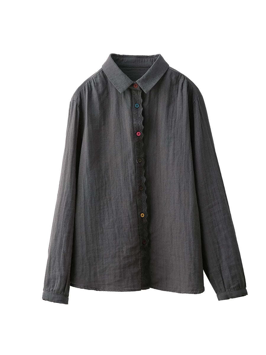 Dame forårsskjorte med kunstnerisk splejsning i 100% bomuld