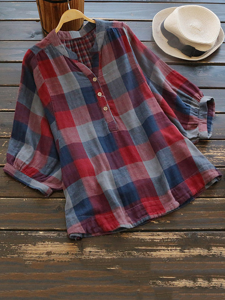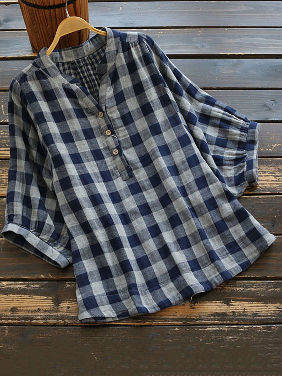 Kvinder Sommer Casual Ternet Tynd 100% Bomuldsskjorte