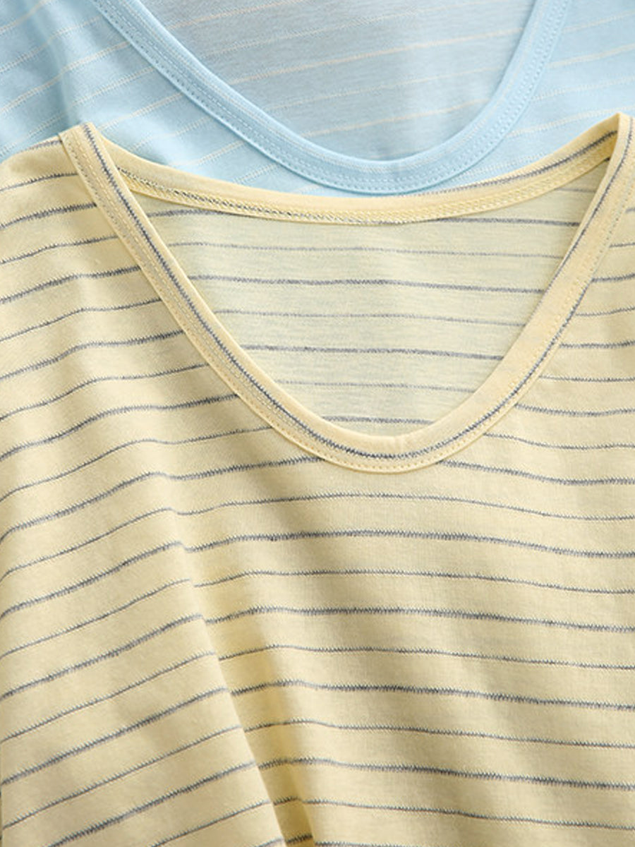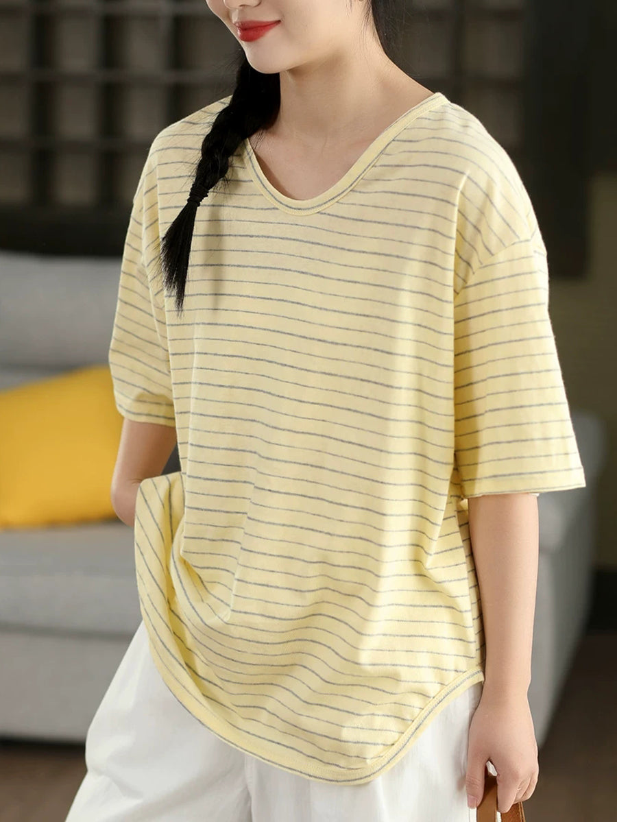 Kvinder Sommer Casual Stribet V-hals T-shirt