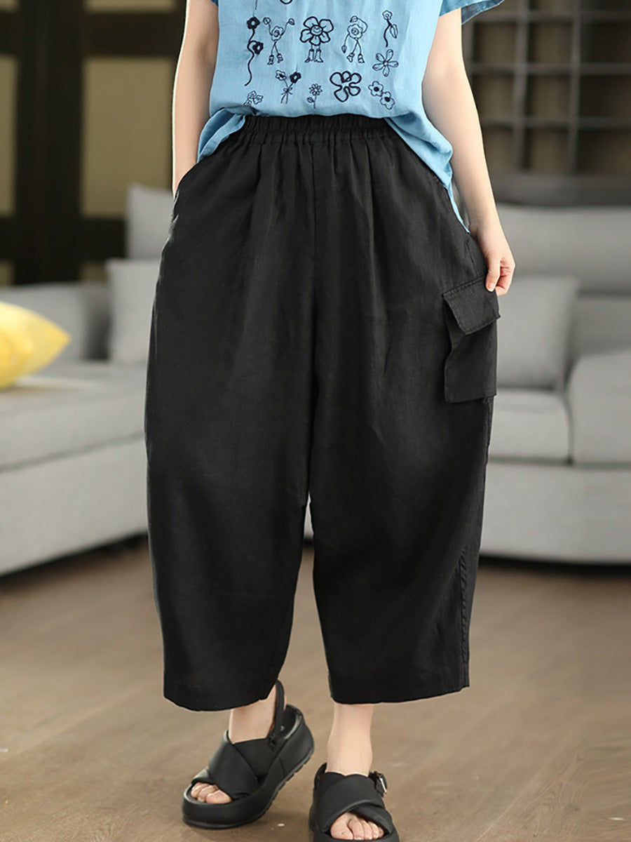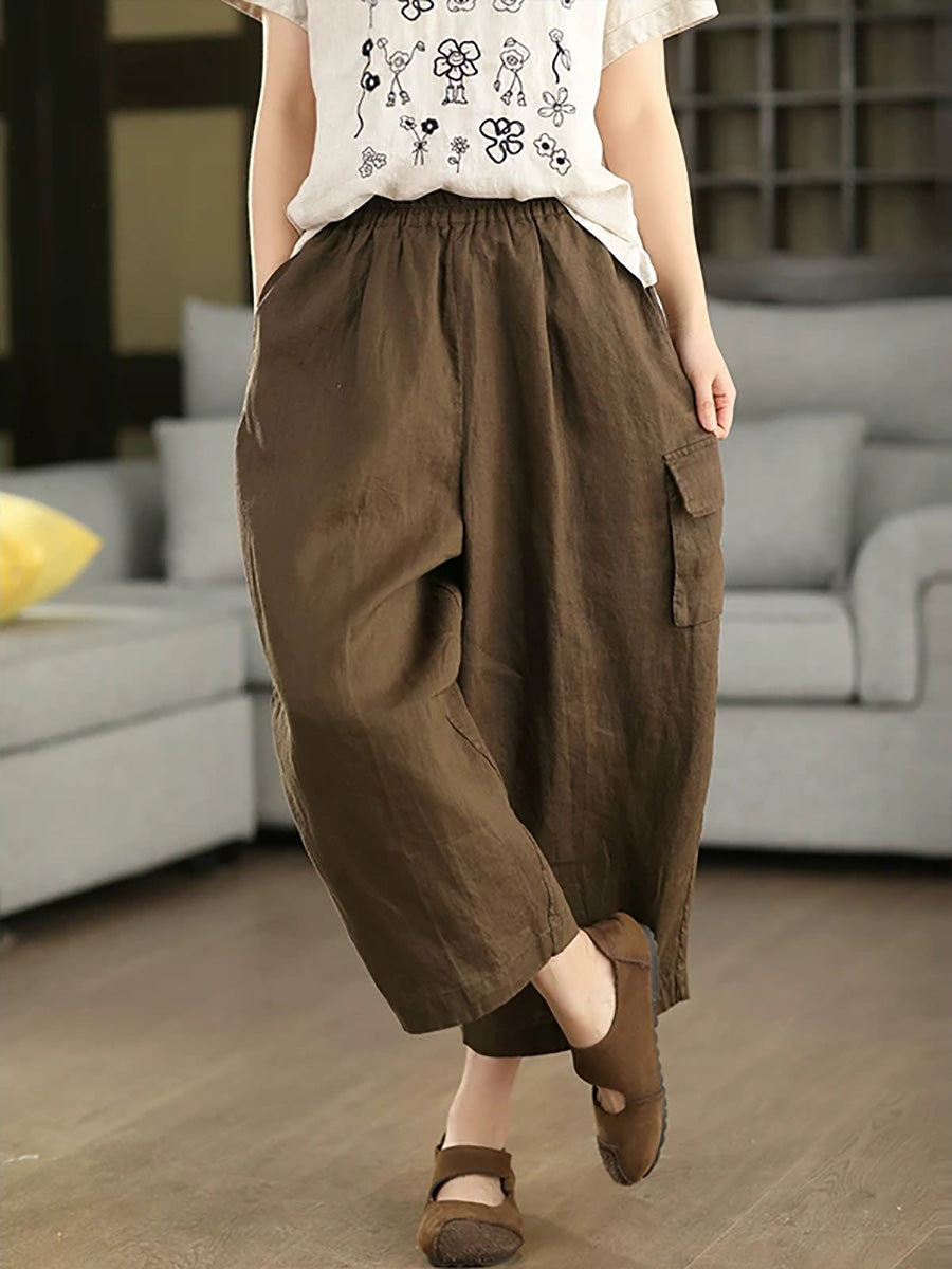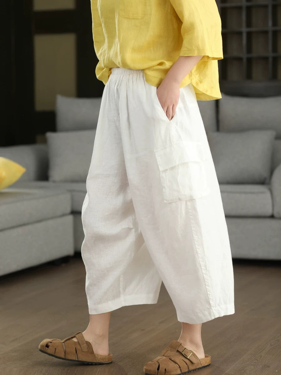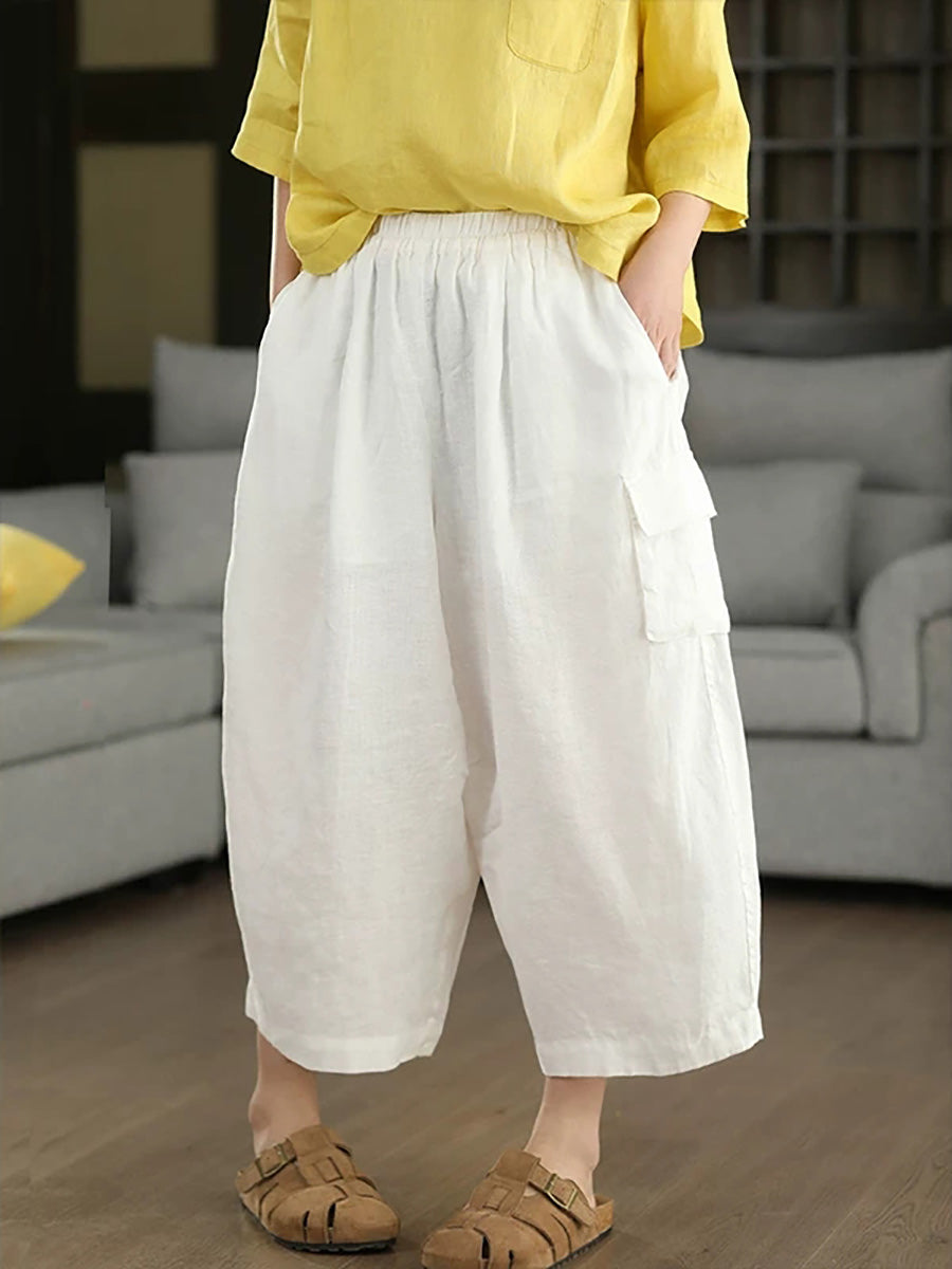 Kvinder Sommer Ren Farve 100% Hør Harem Bukser