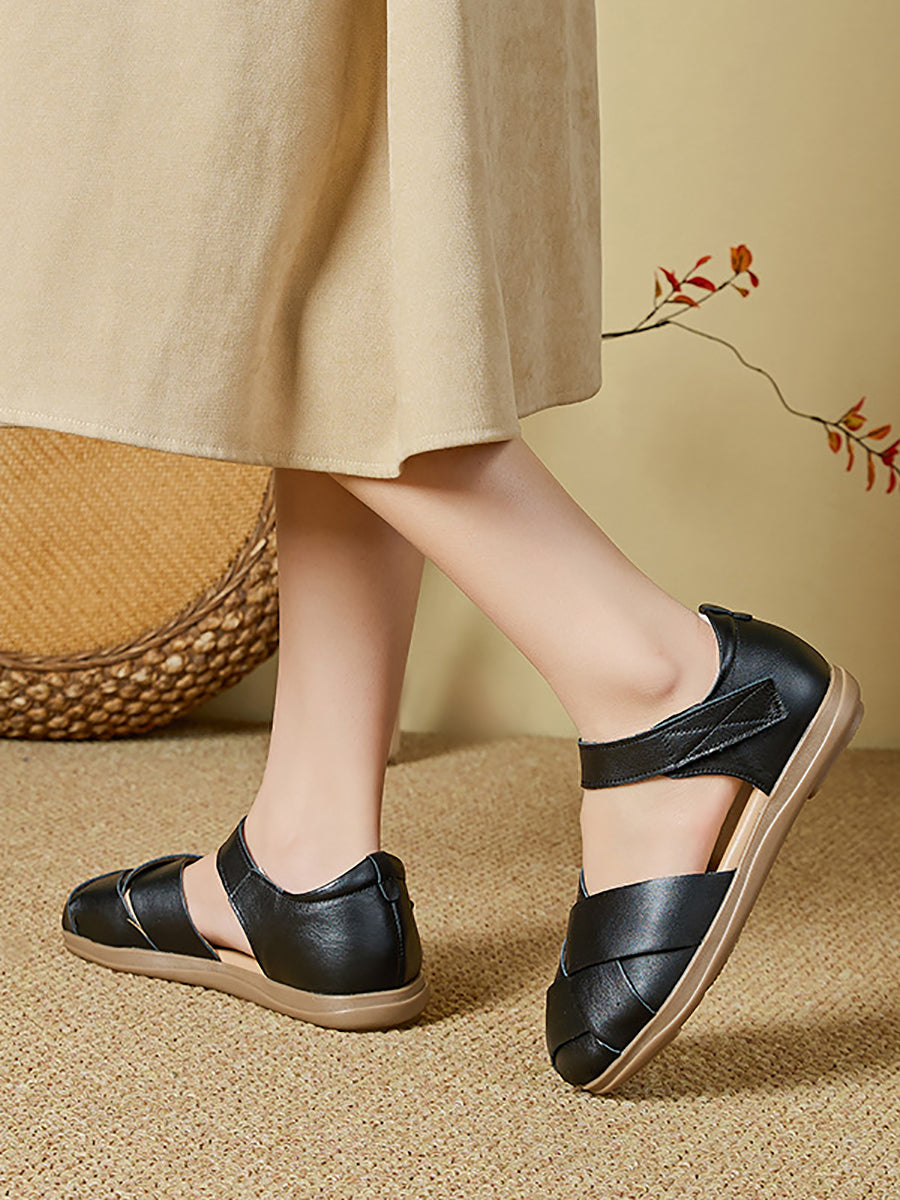 Kvinder Sommer Retro Ægte Læder Vævede Sandaler