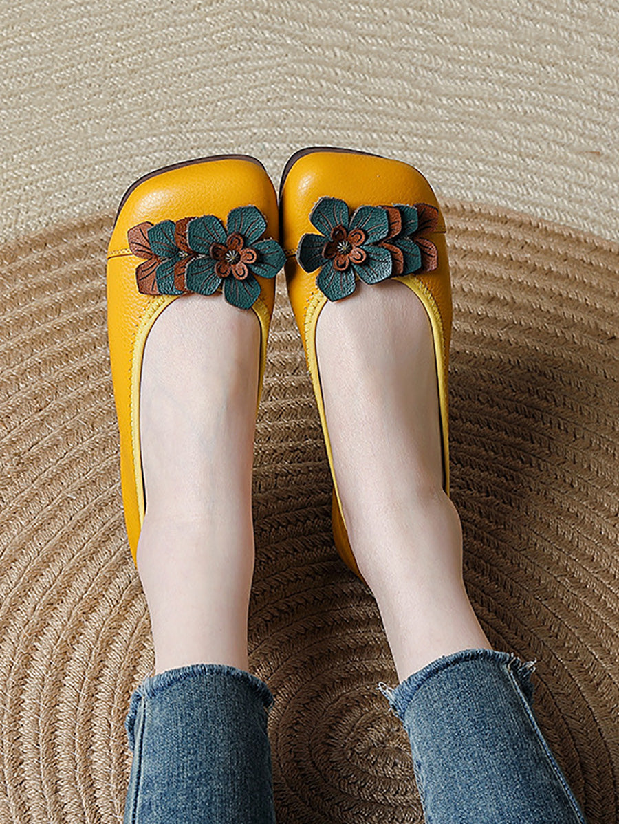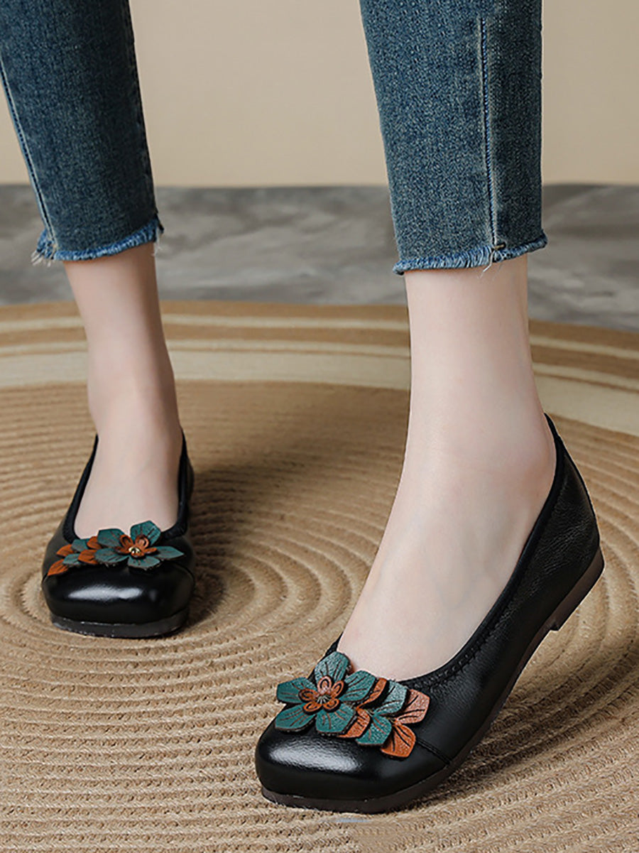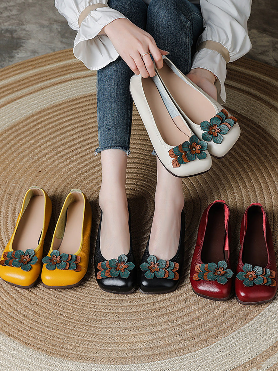 Kvinder Vintage Blomster Læder Spliced Sko