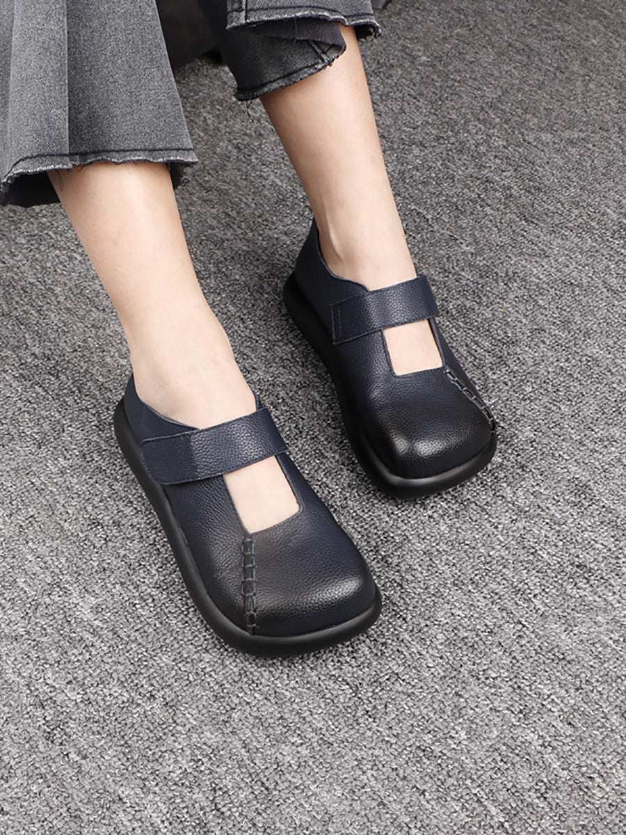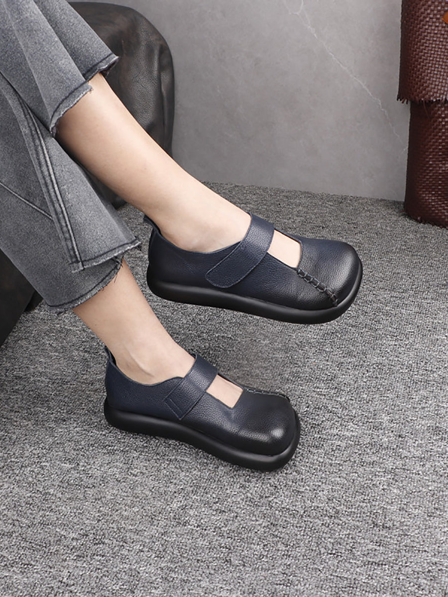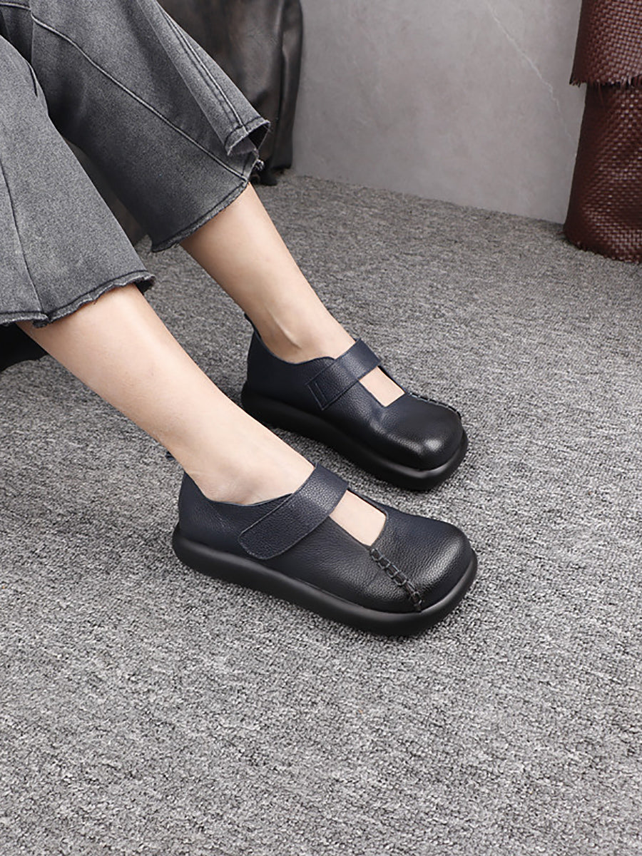 Kvinder Vintage ægte læder firkantet tå sko