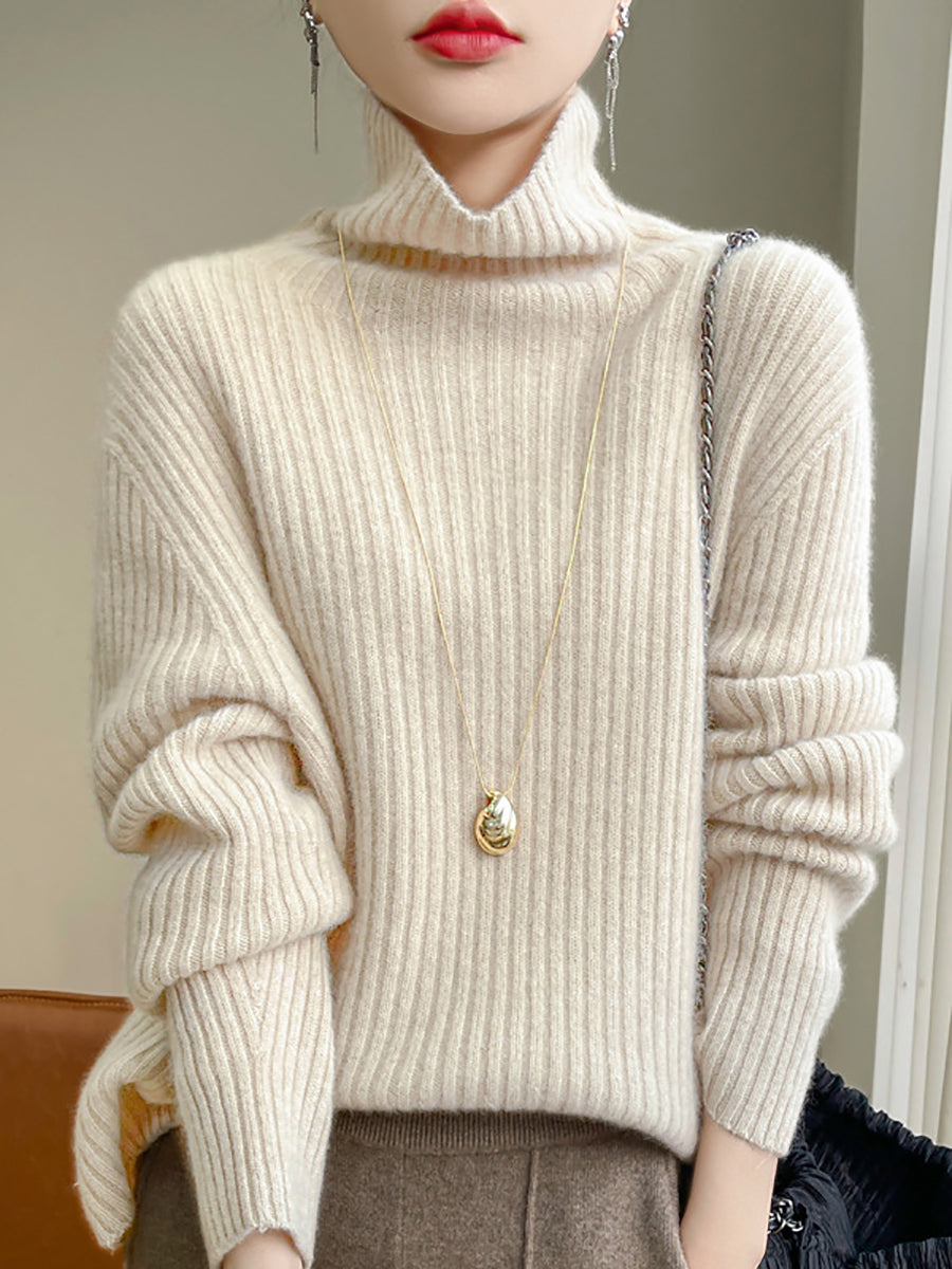 Kvinder Vinter Casual Ren Farve Strikket Rullekravetrøje