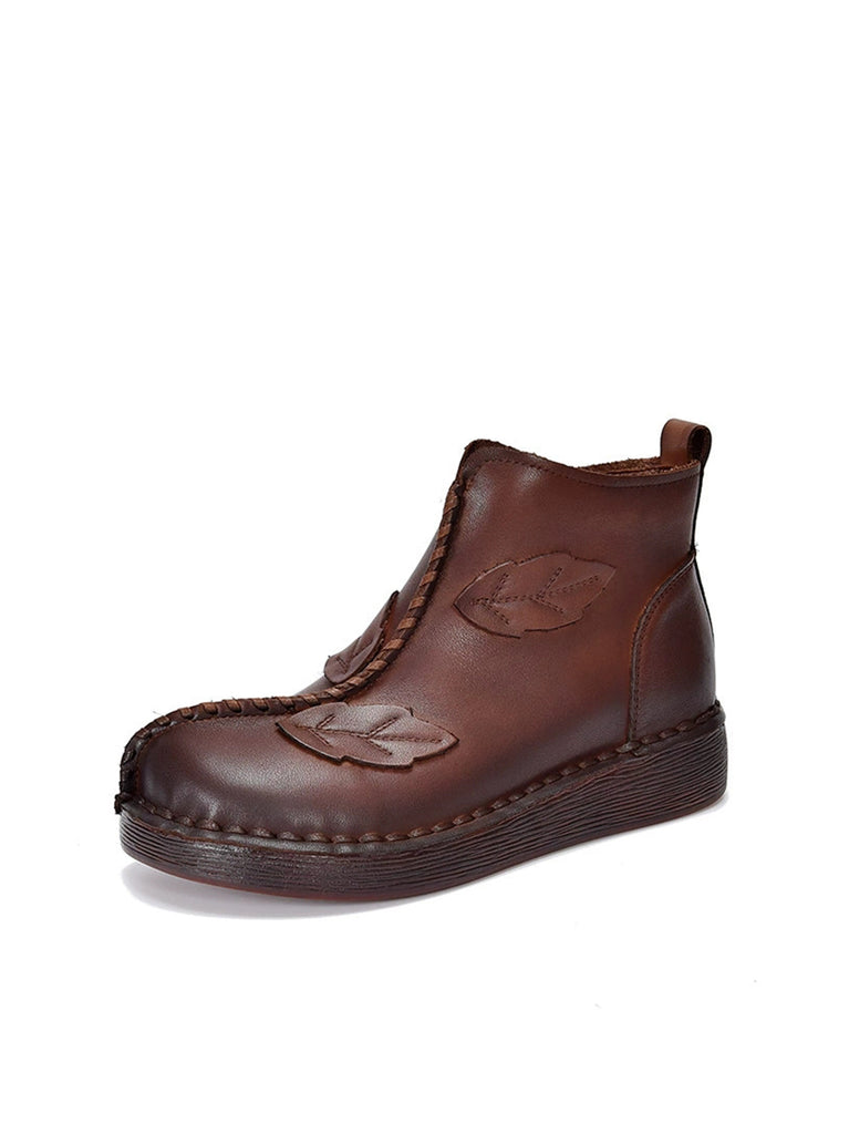 Kvinder Vinter Retro Læder Spliced Læder Ankelstøvler