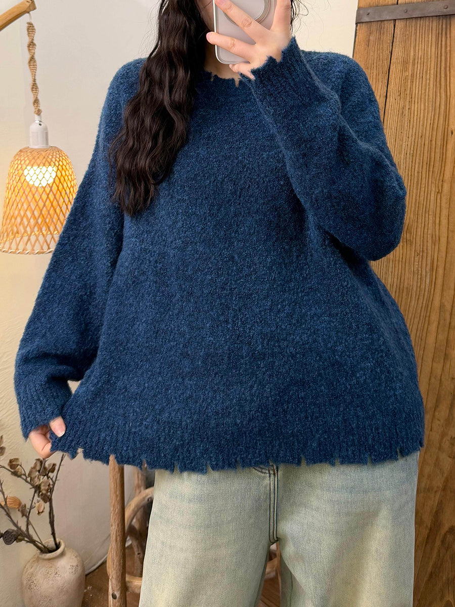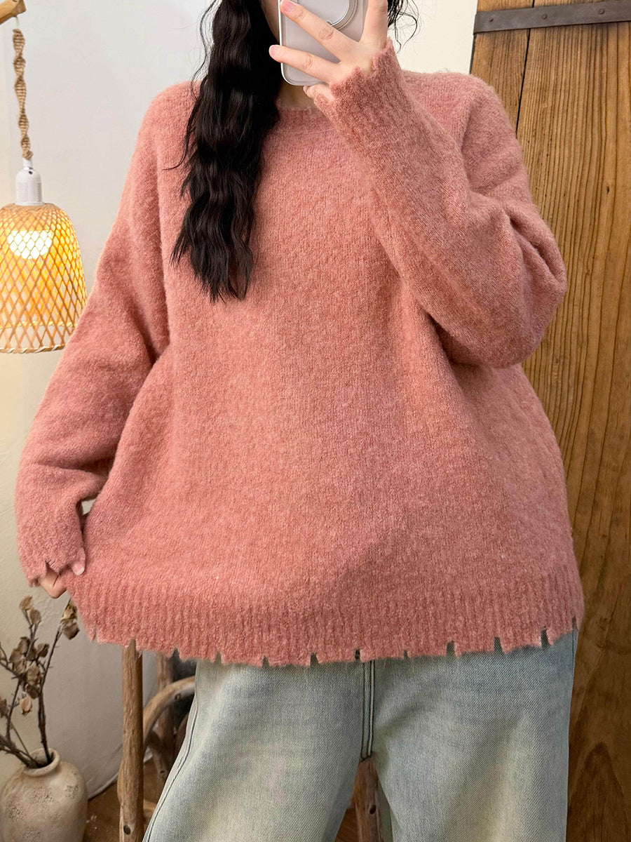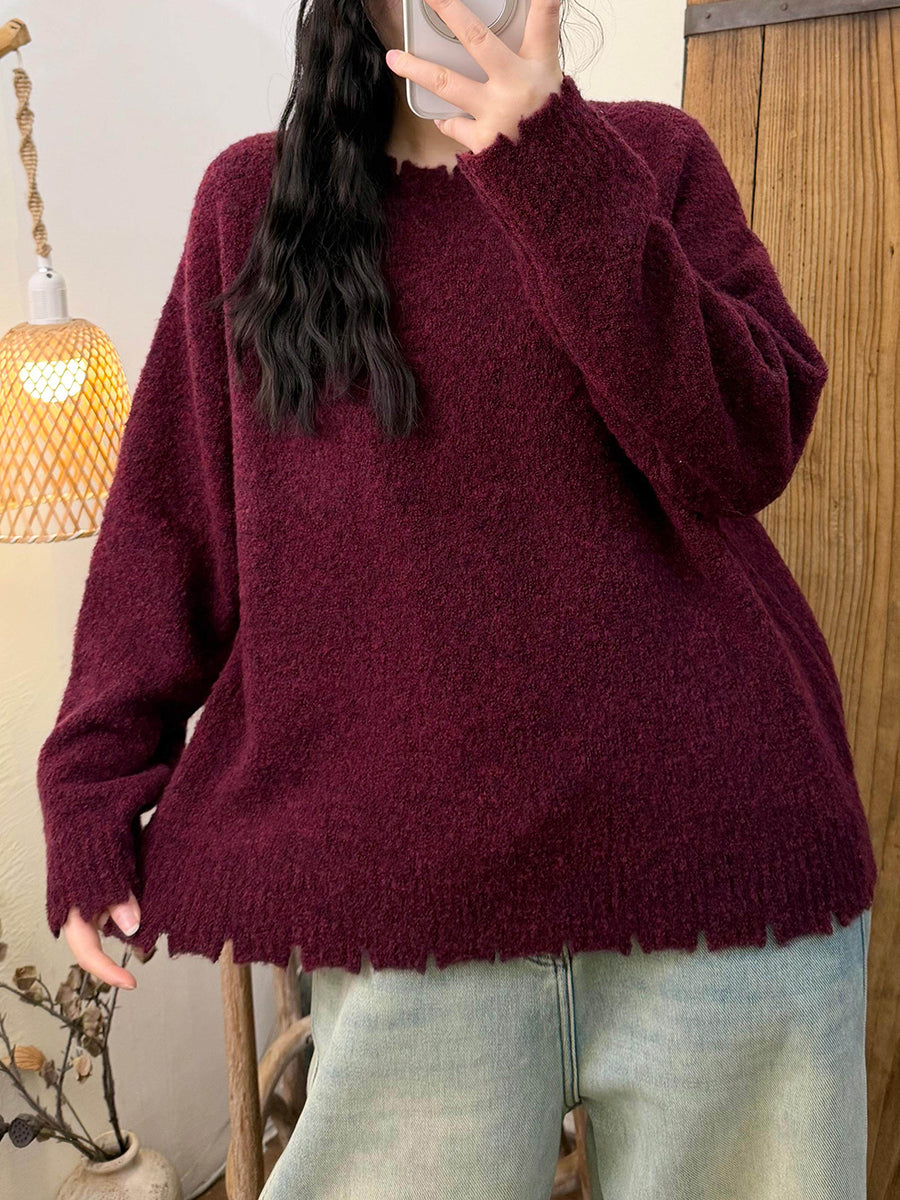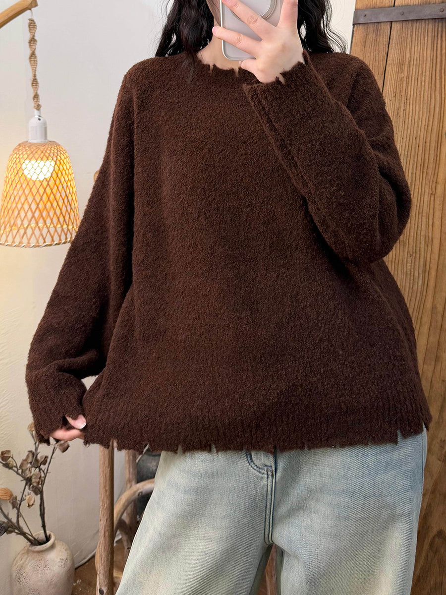 Damen Winter Retro Einfarbiger Rundhalspullover