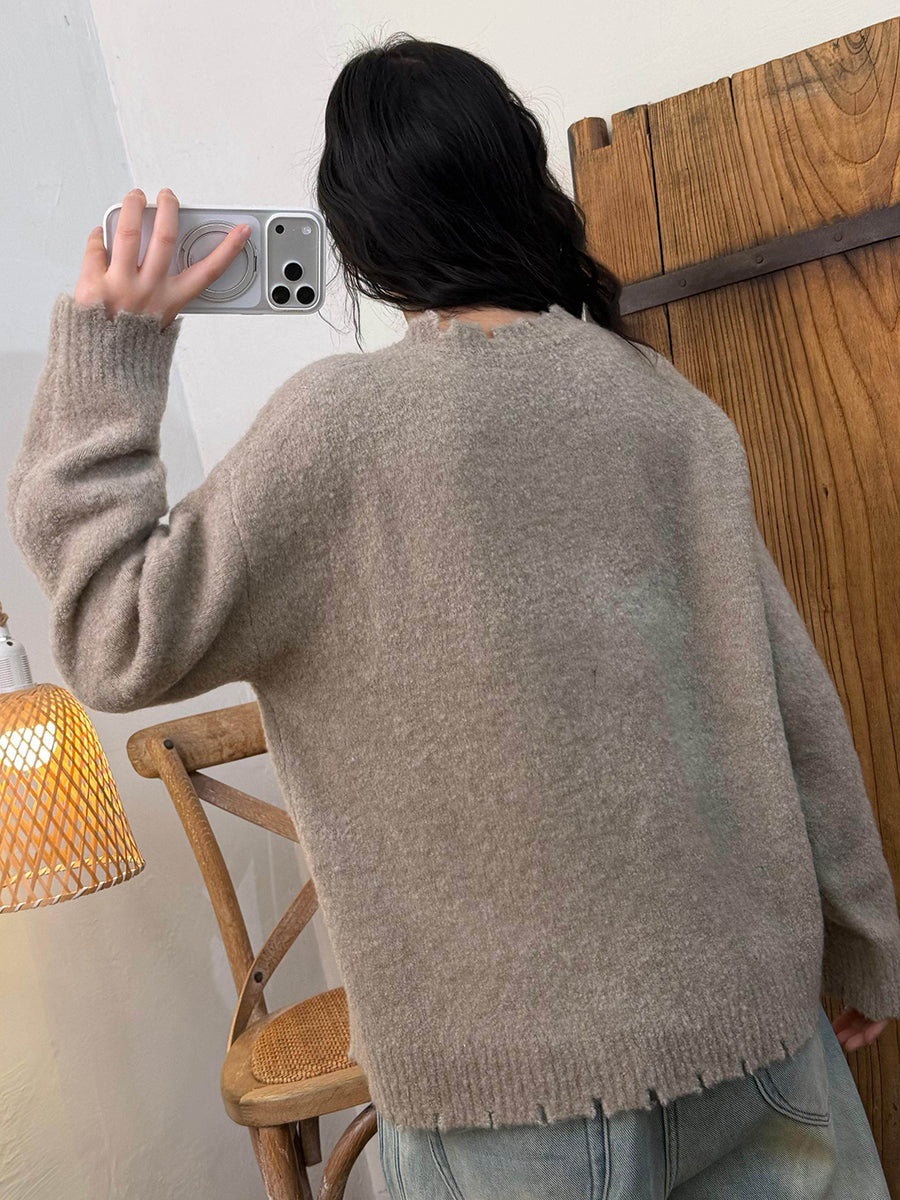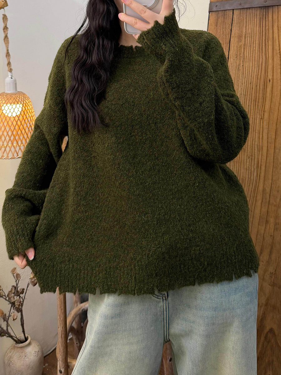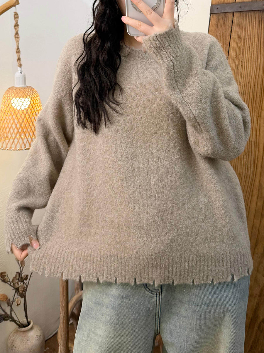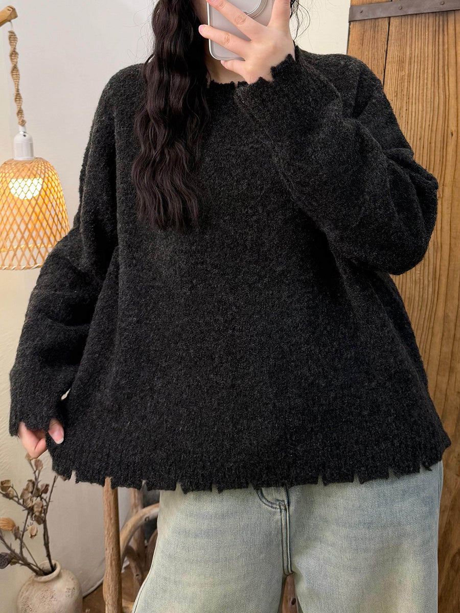 Damen Winter Retro Einfarbiger Rundhalspullover