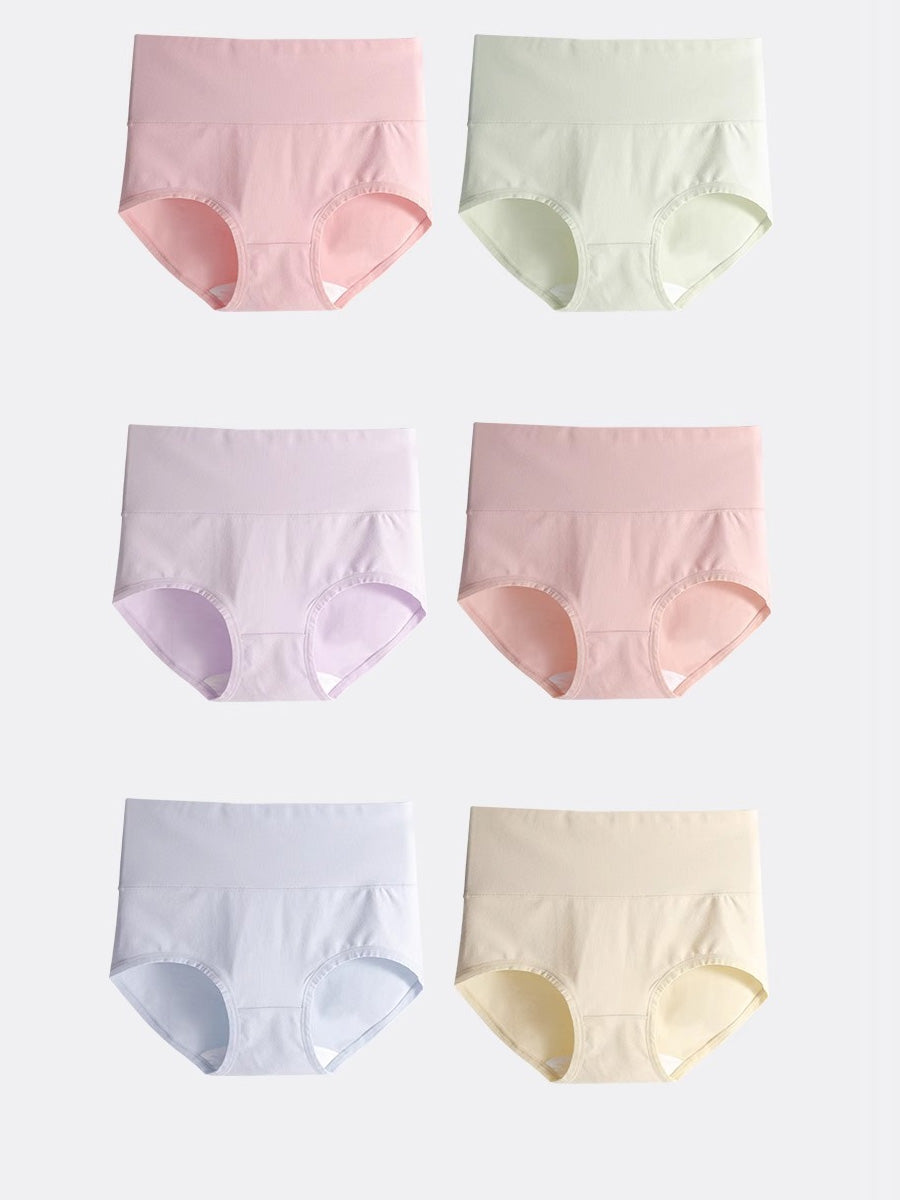 6-teiliges Set Damen-Freizeitunterwäsche in Unifarben mit hohem Bund