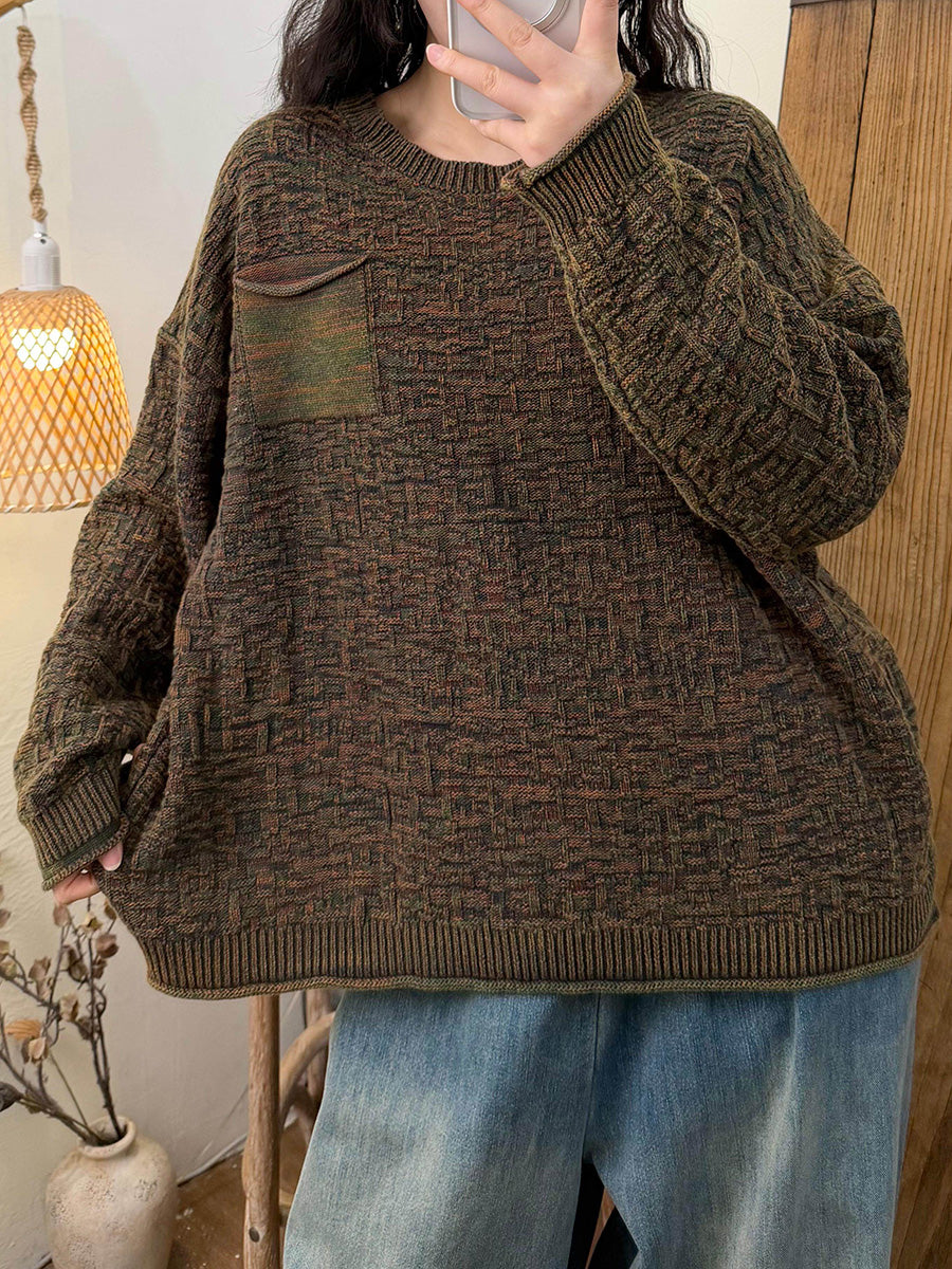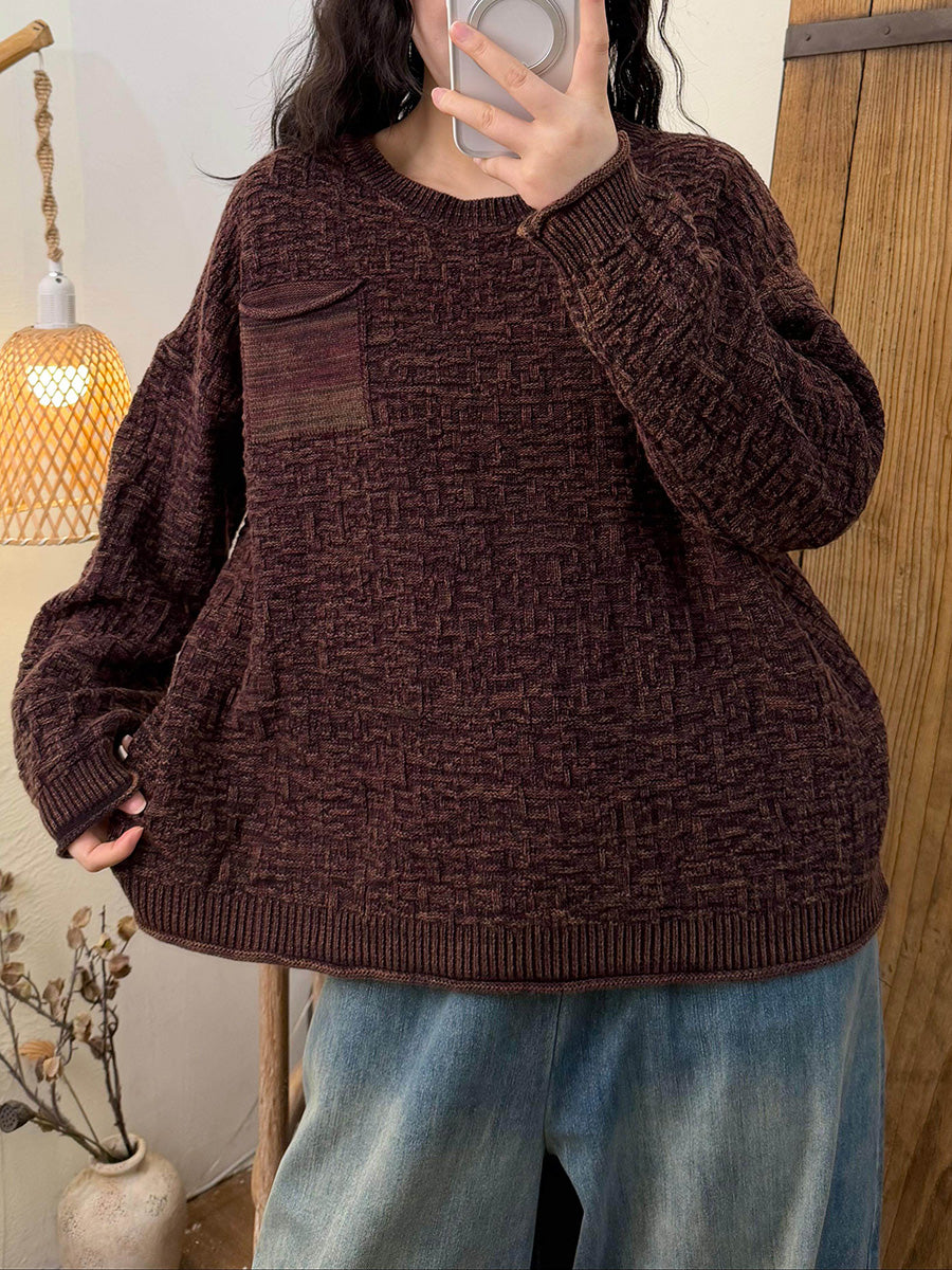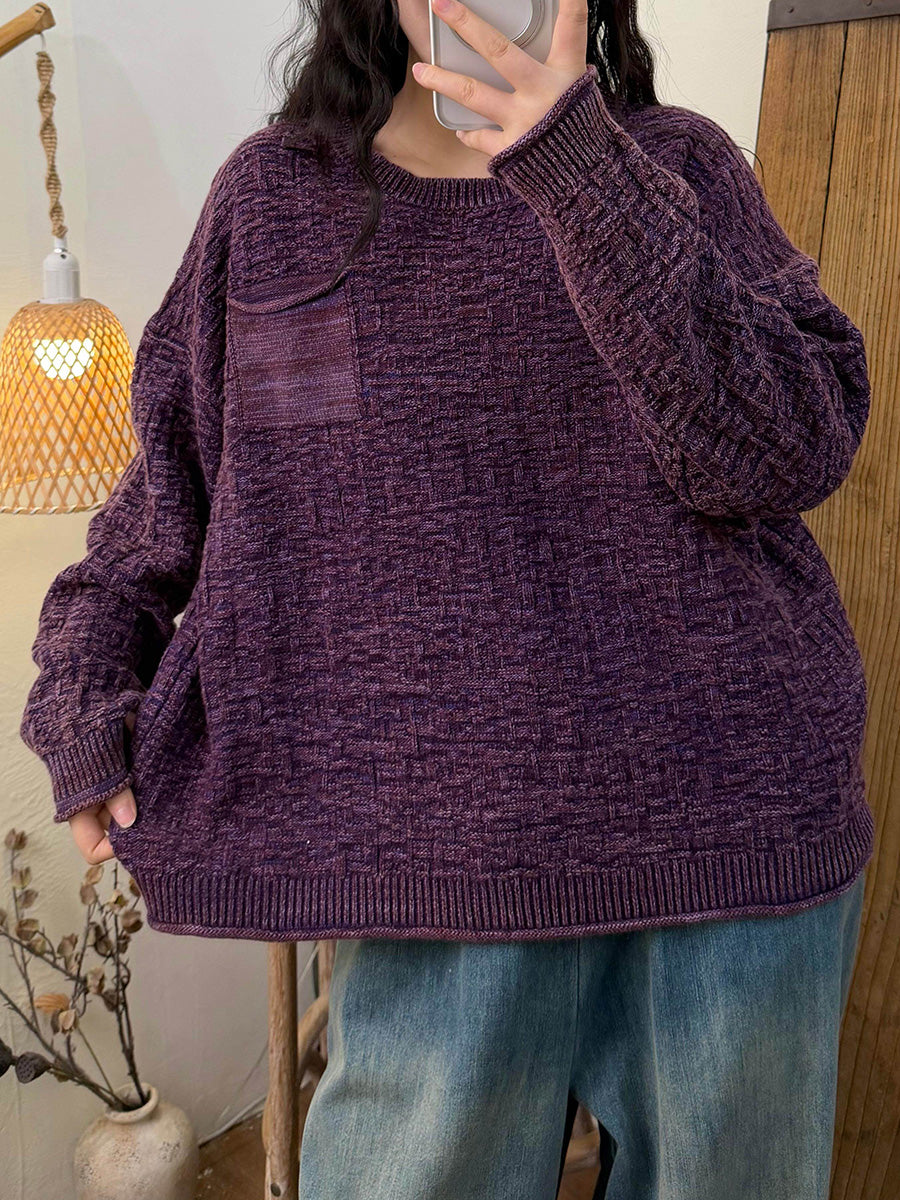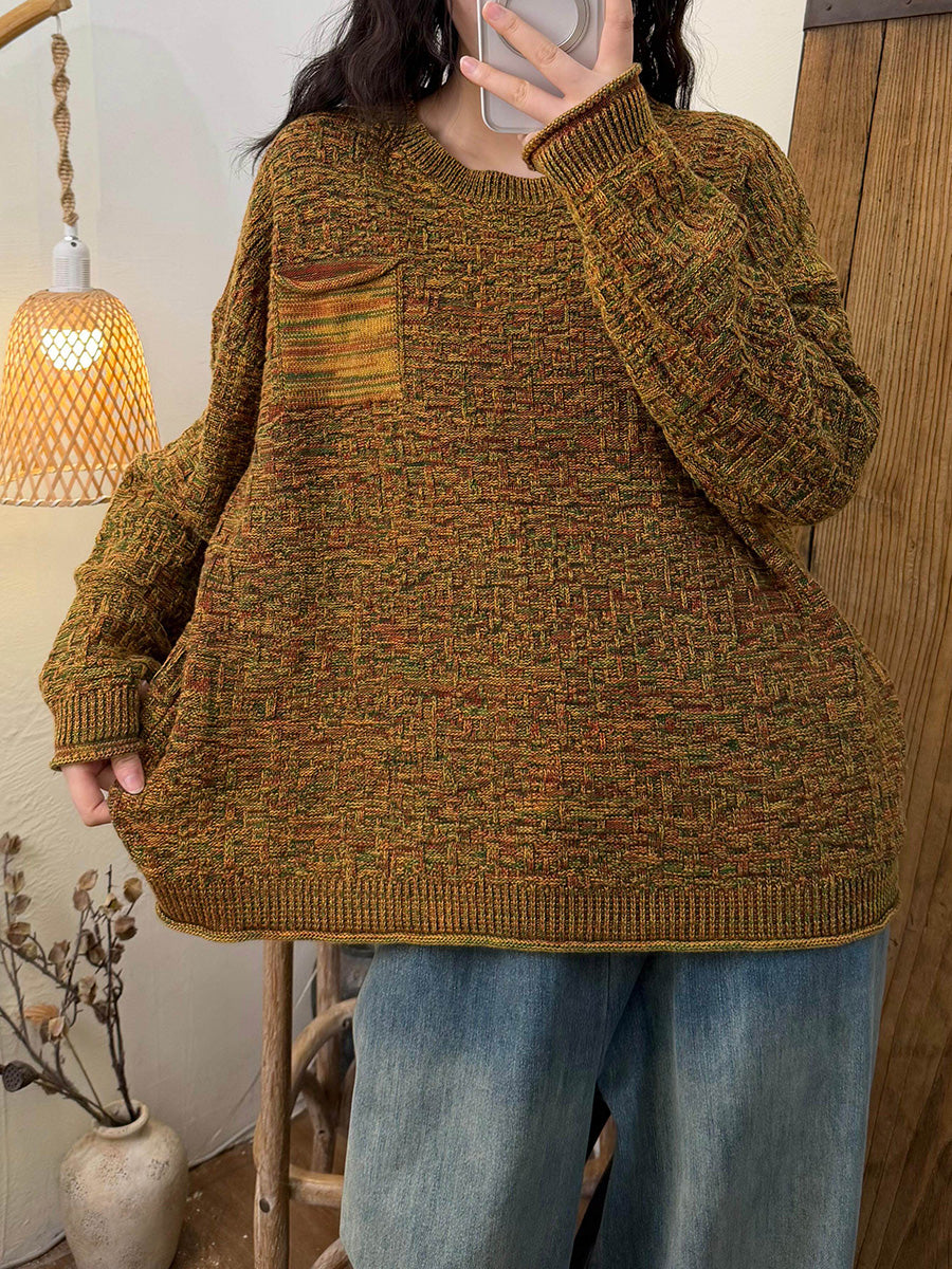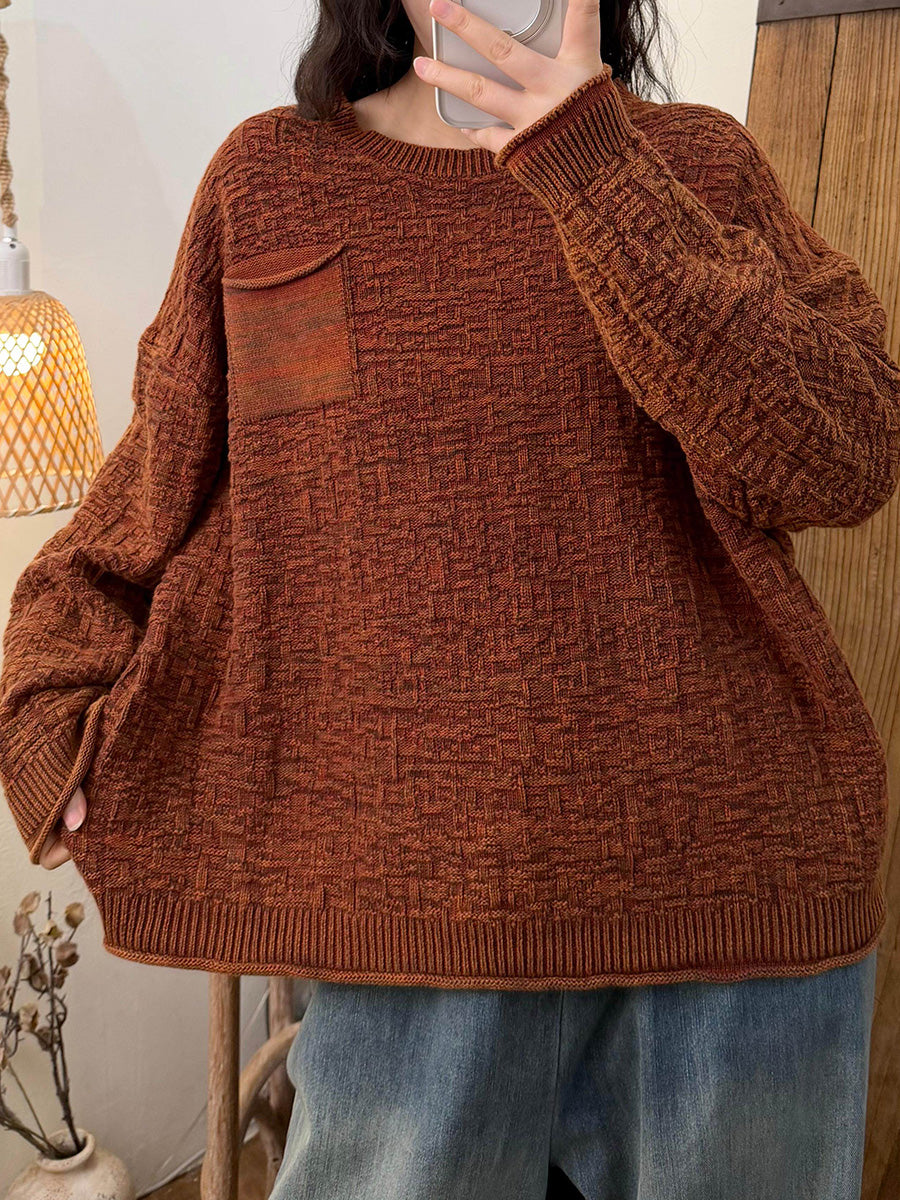 Damen Herbst Strickpullover mit Rundhalsausschnitt