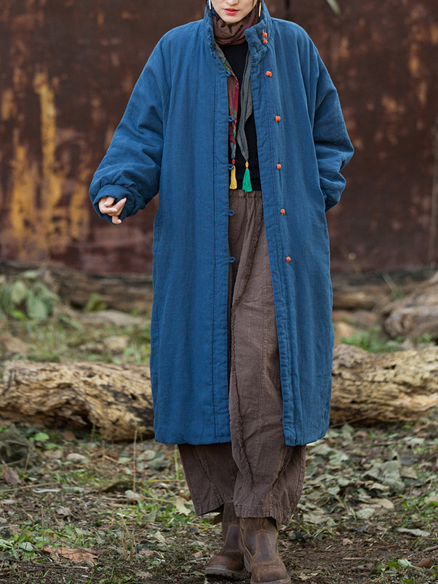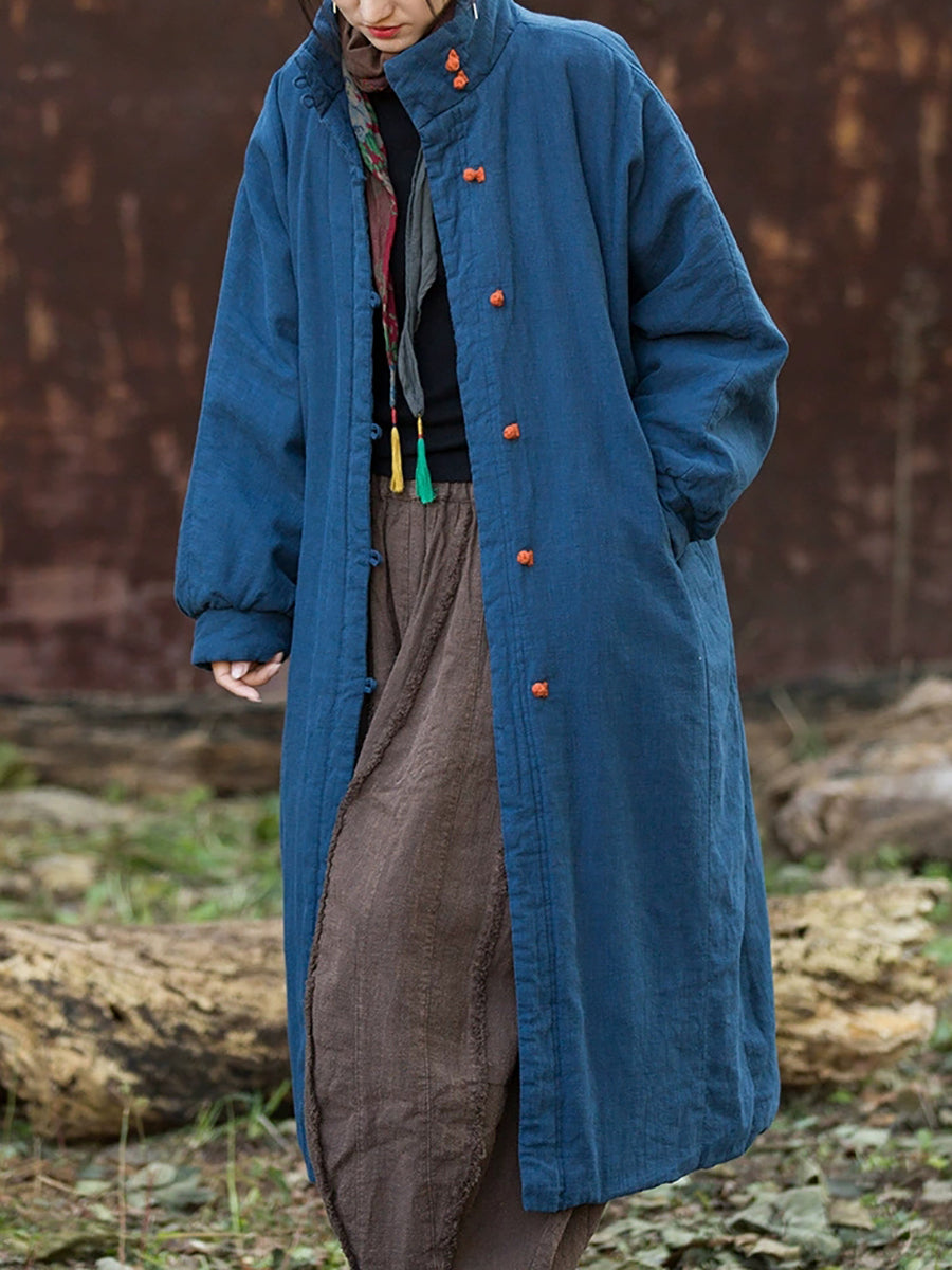 Damen Wintermantel in Unifarben mit Stehkragen, wattiert