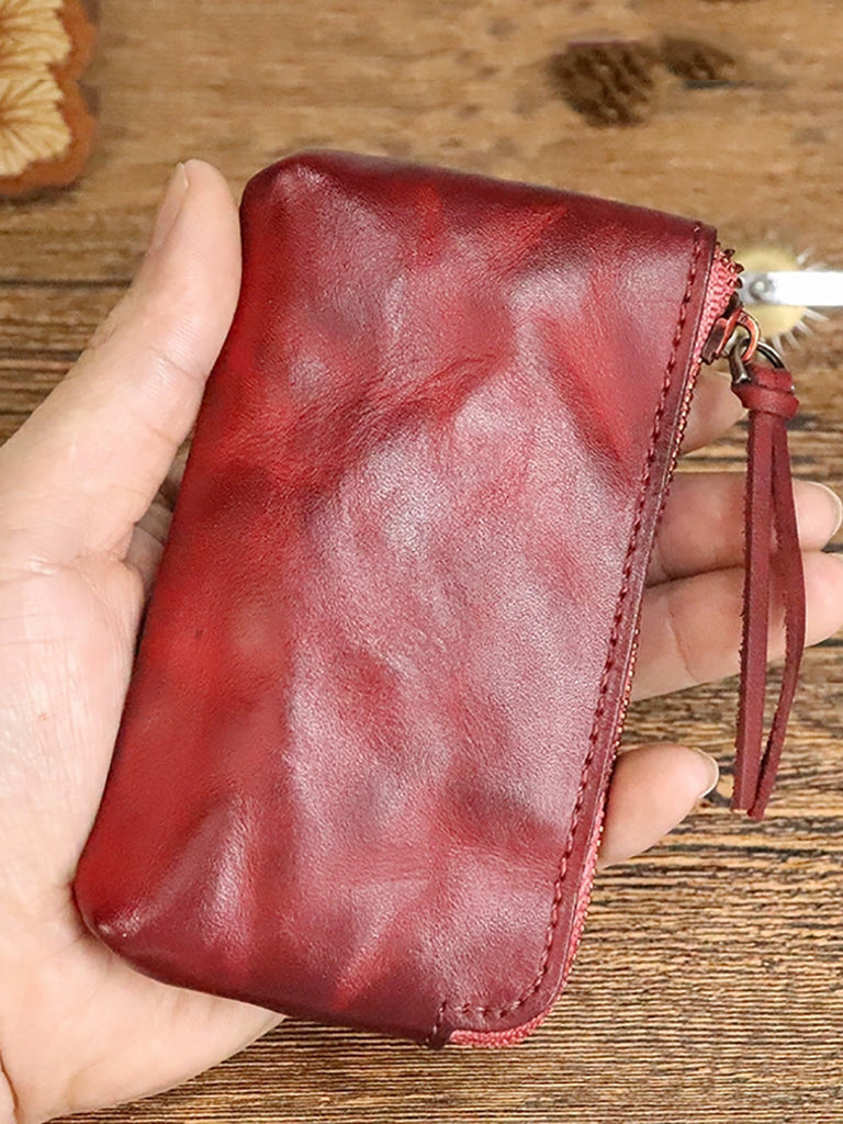Damen Retro Leder-Multifunktions-Geldbörse mit Reißverschluss