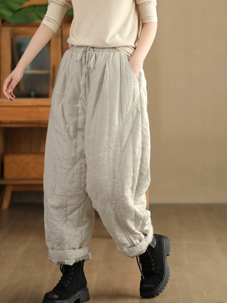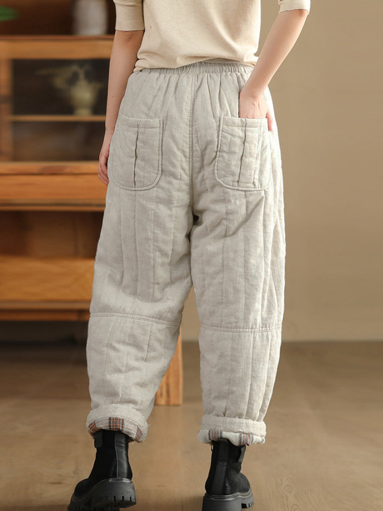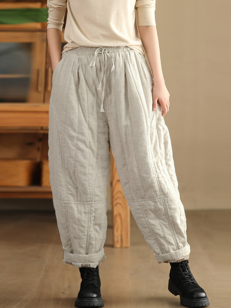 Damen Herbst Pure Color 100% Leinen gepolsterte Haremshose