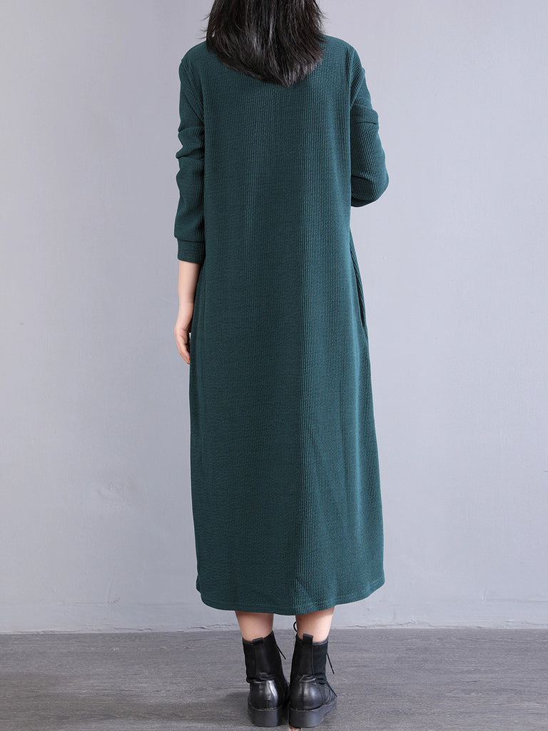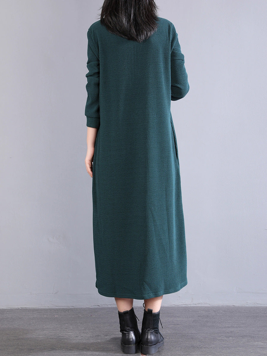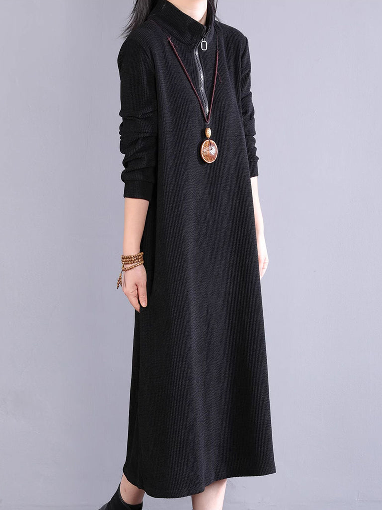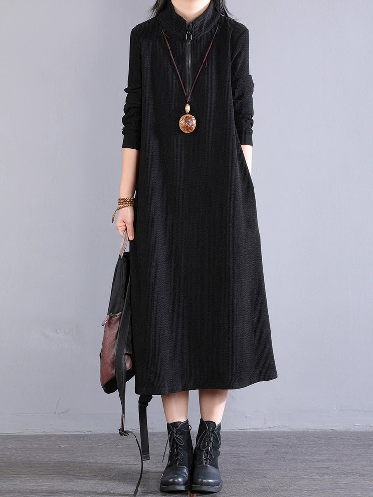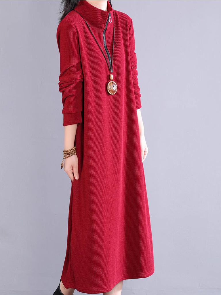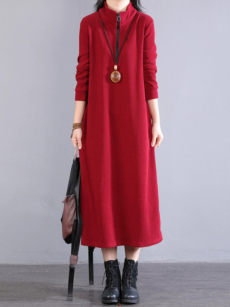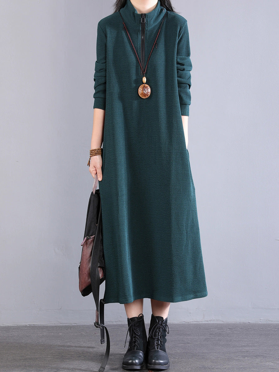 Damen Herbstkleid aus 100% Baumwolle, einfarbig, mit Stehkragen