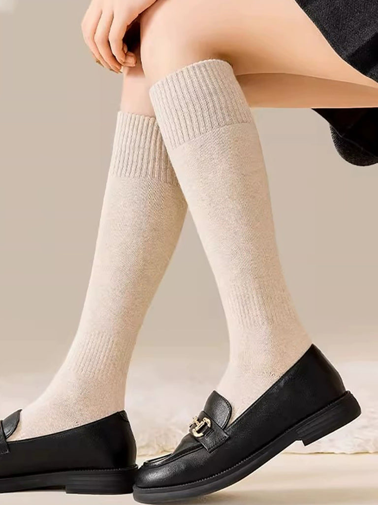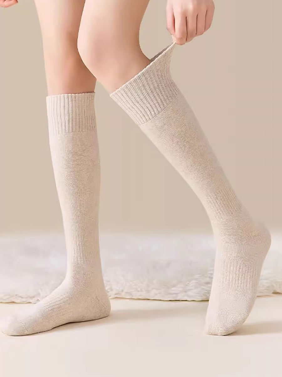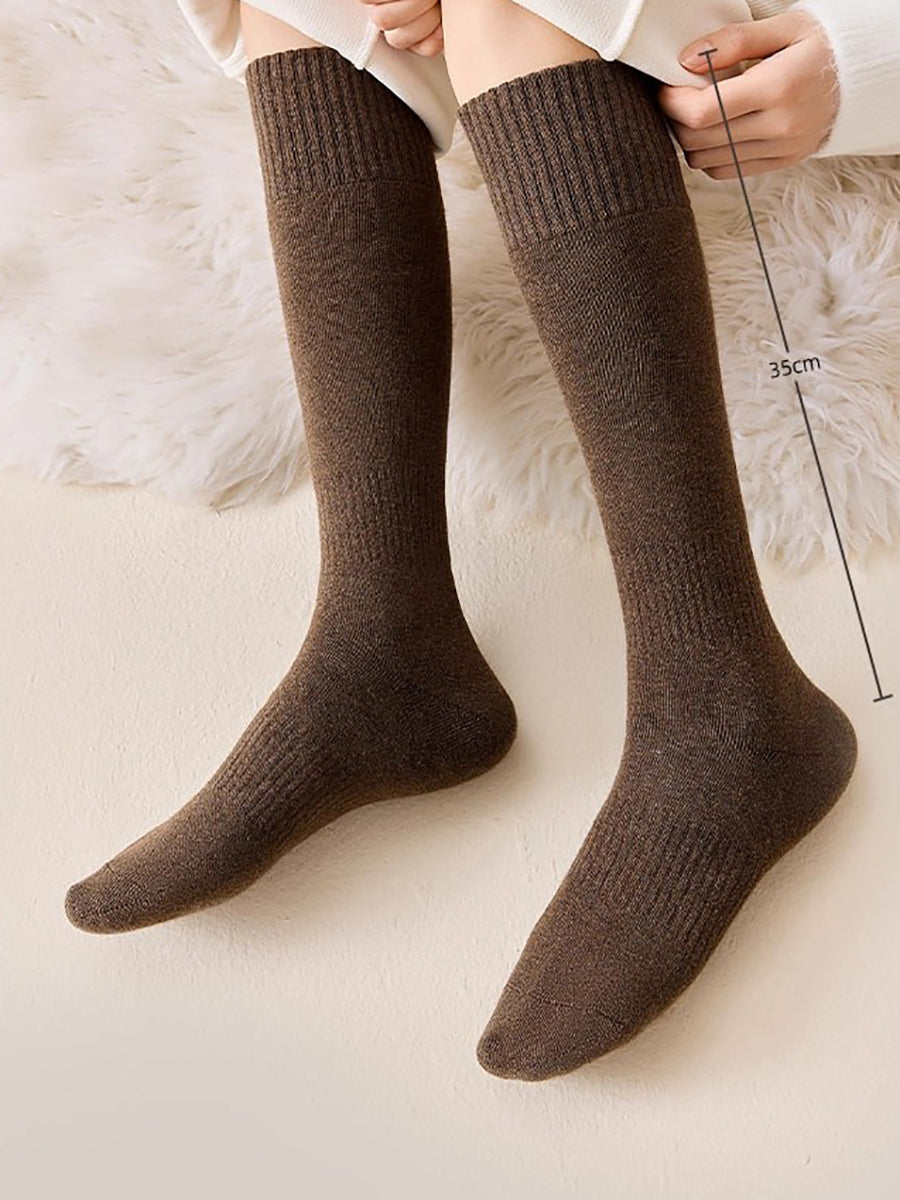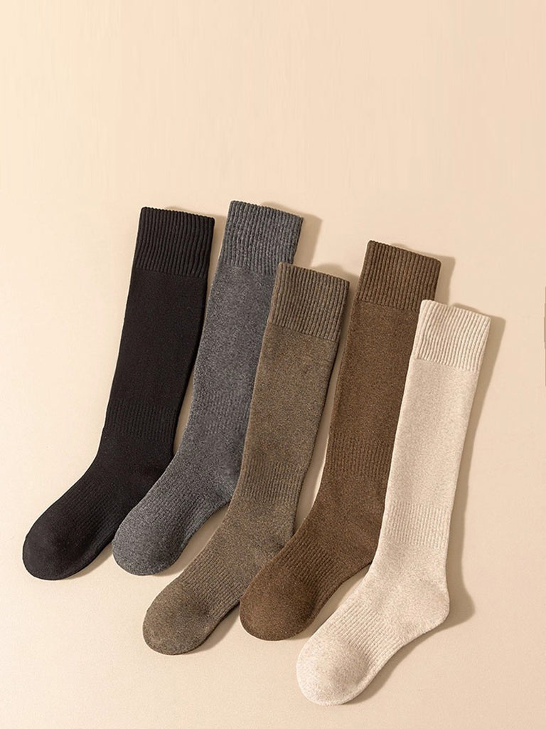 5 Paar dicke, wadenlange Wintersocken für Damen, gefüttert mit Fleece