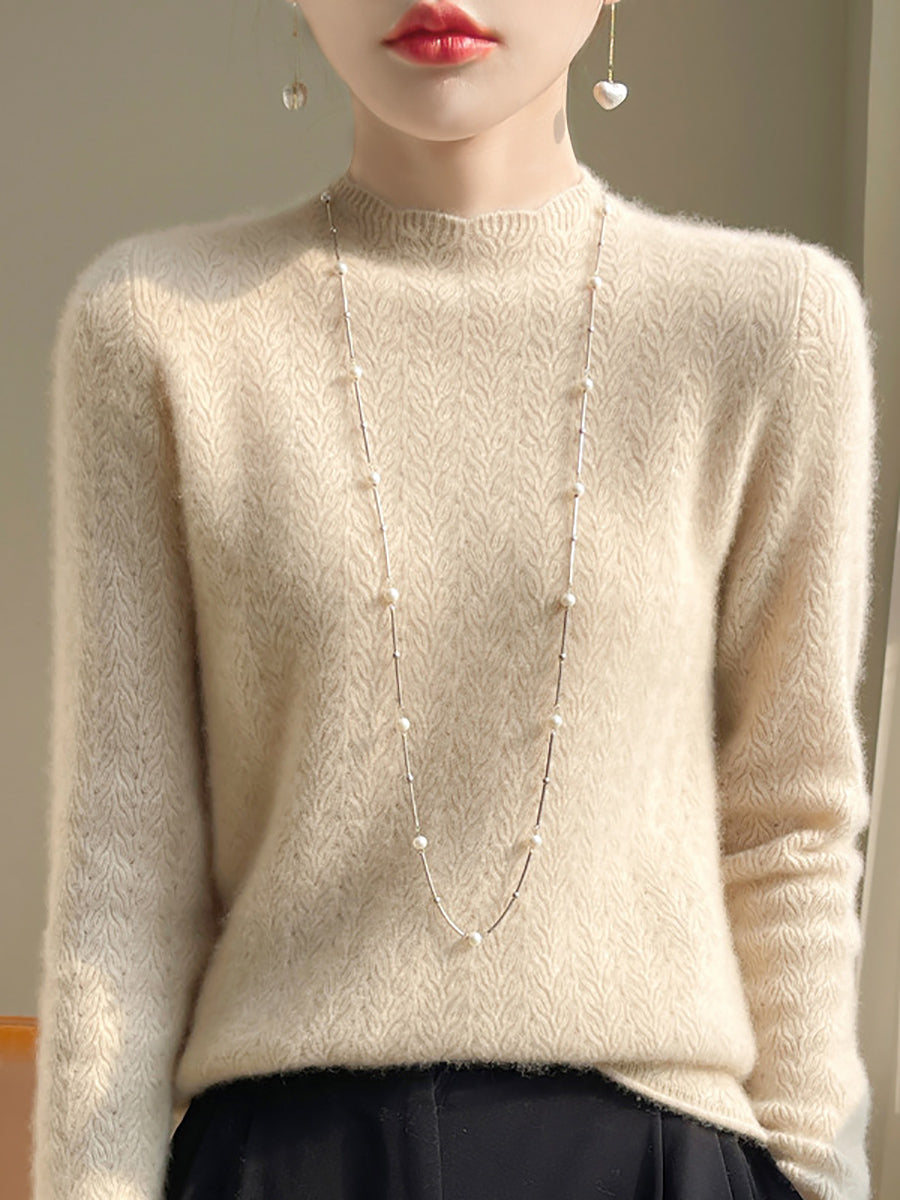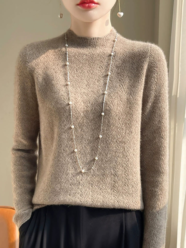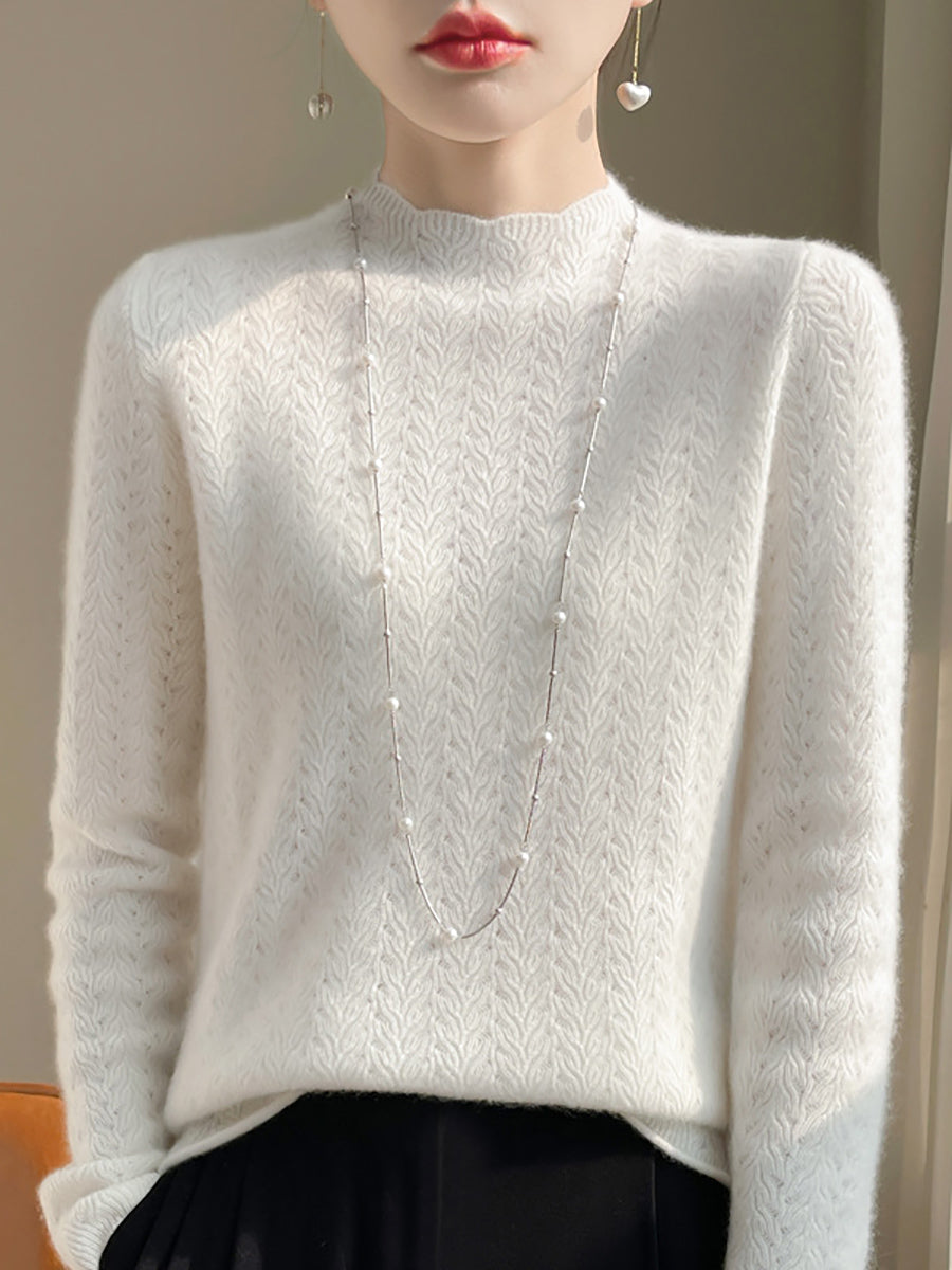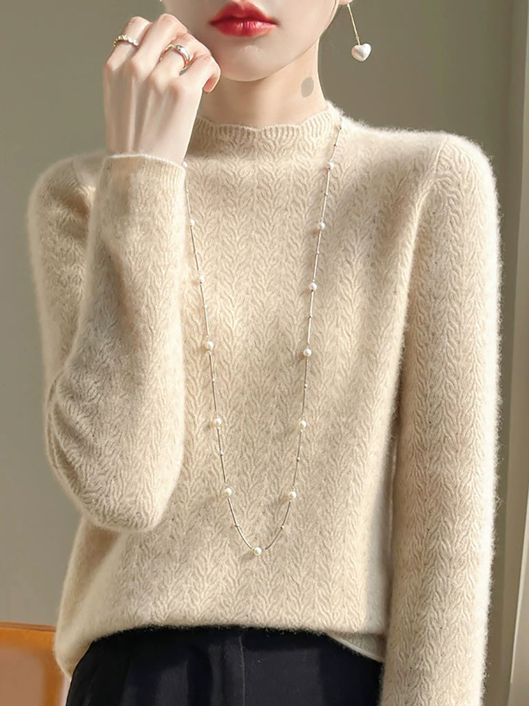 Damen Winterpullover aus Wolle mit Hakenmuster und halbem Rollkragen