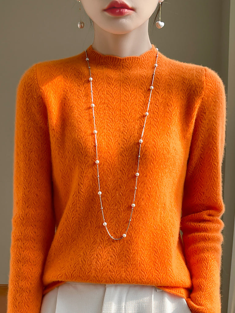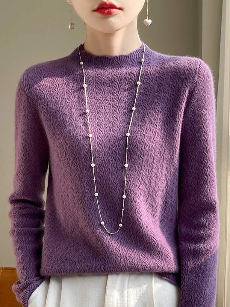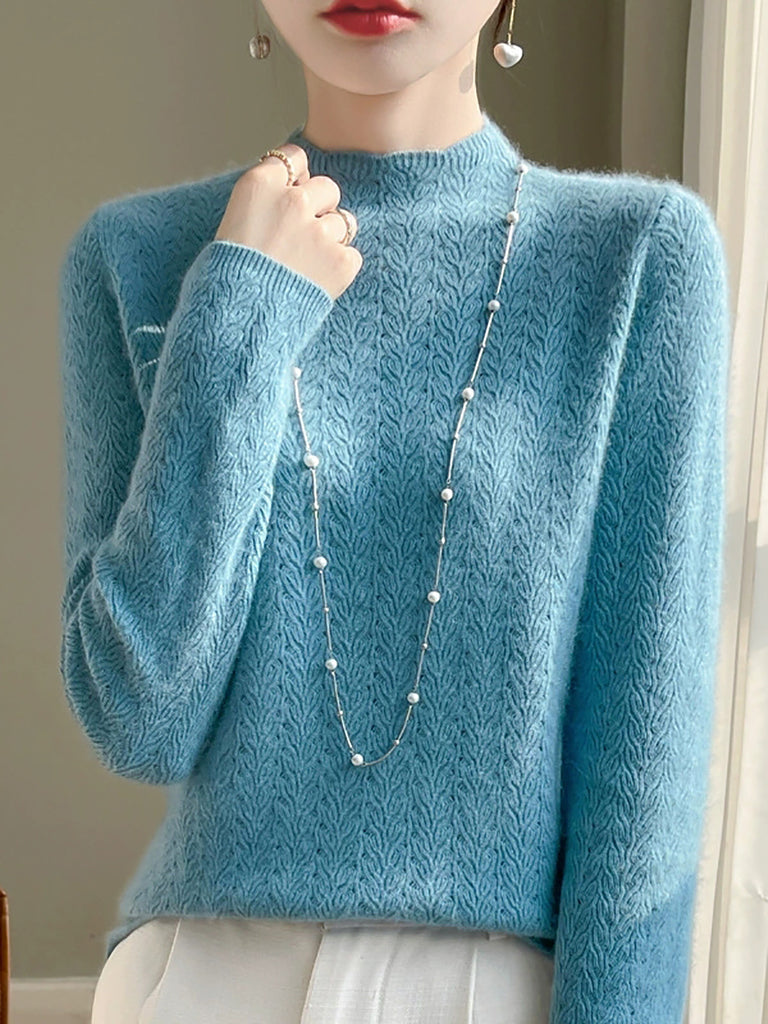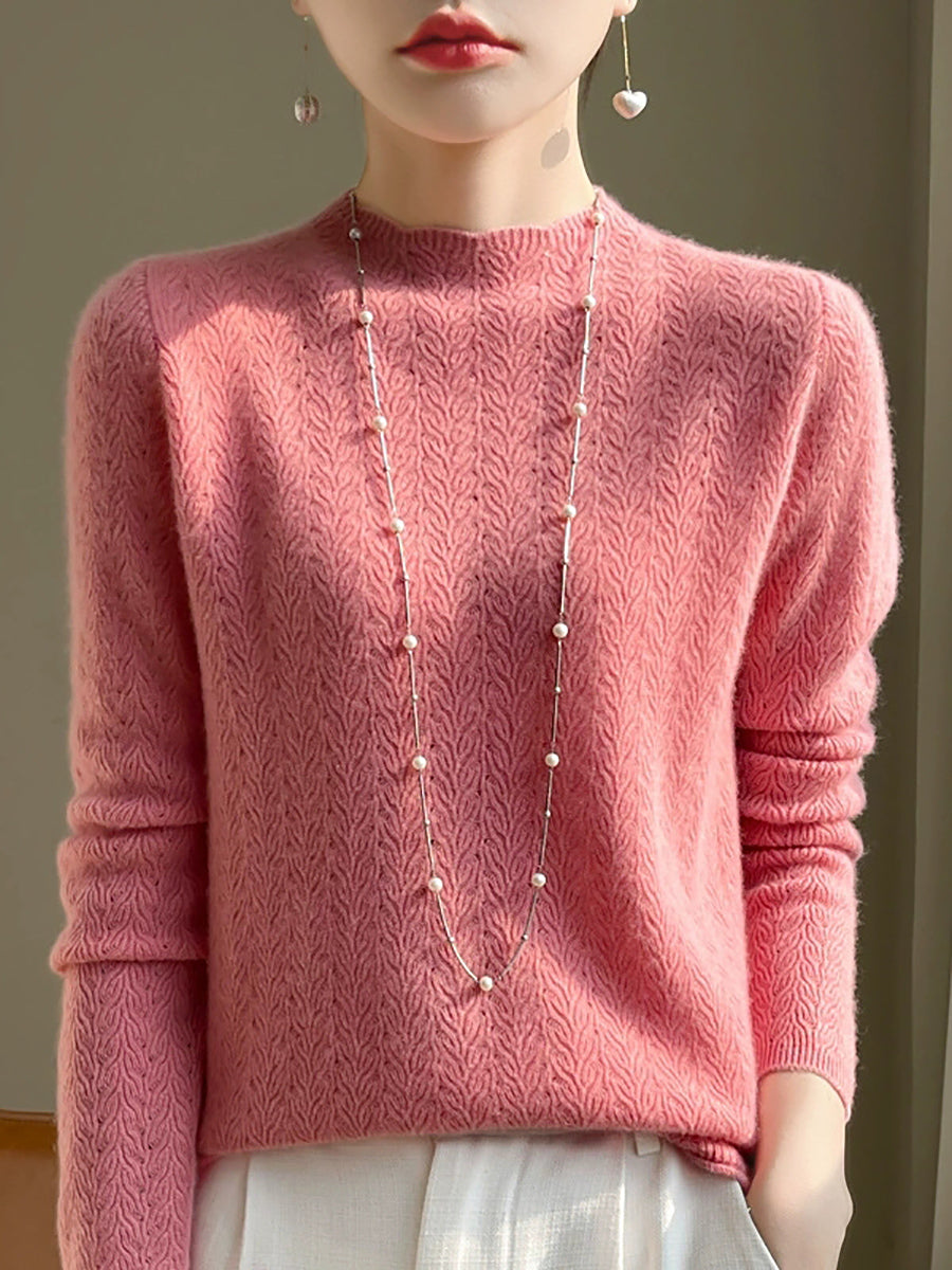Damen Winterpullover aus Wolle mit Hakenmuster und halbem Rollkragen