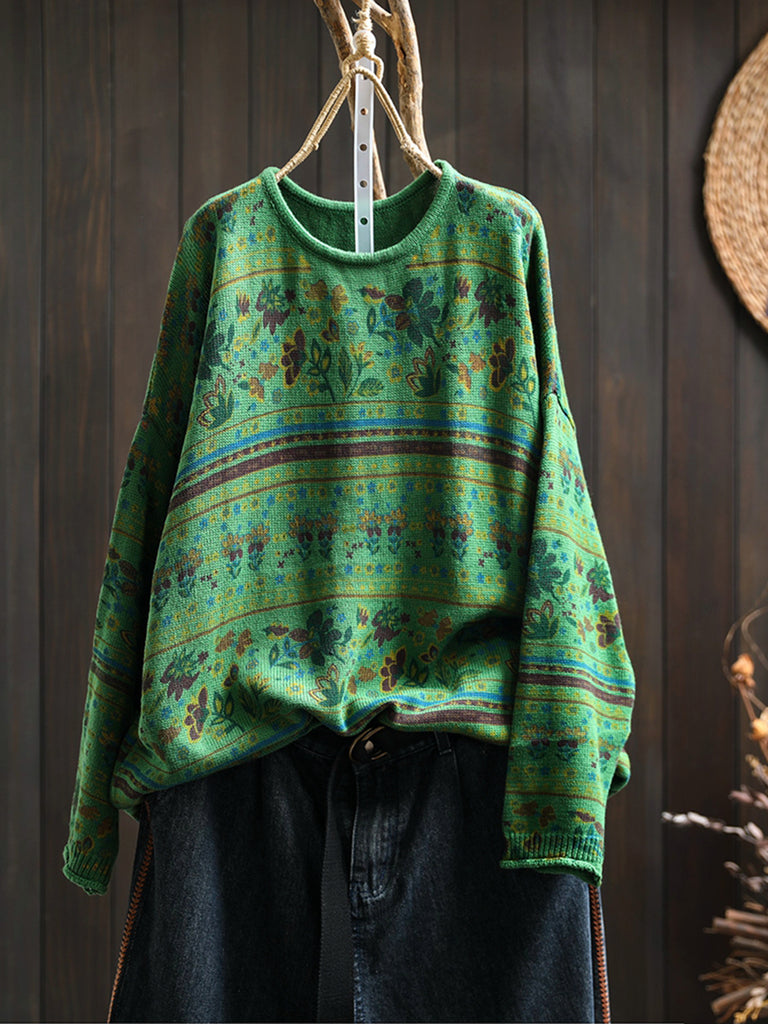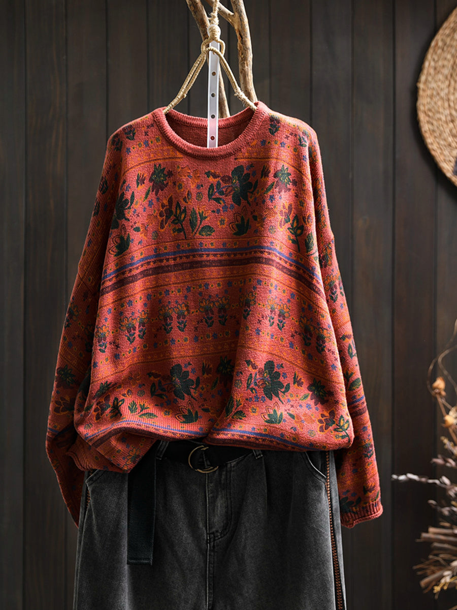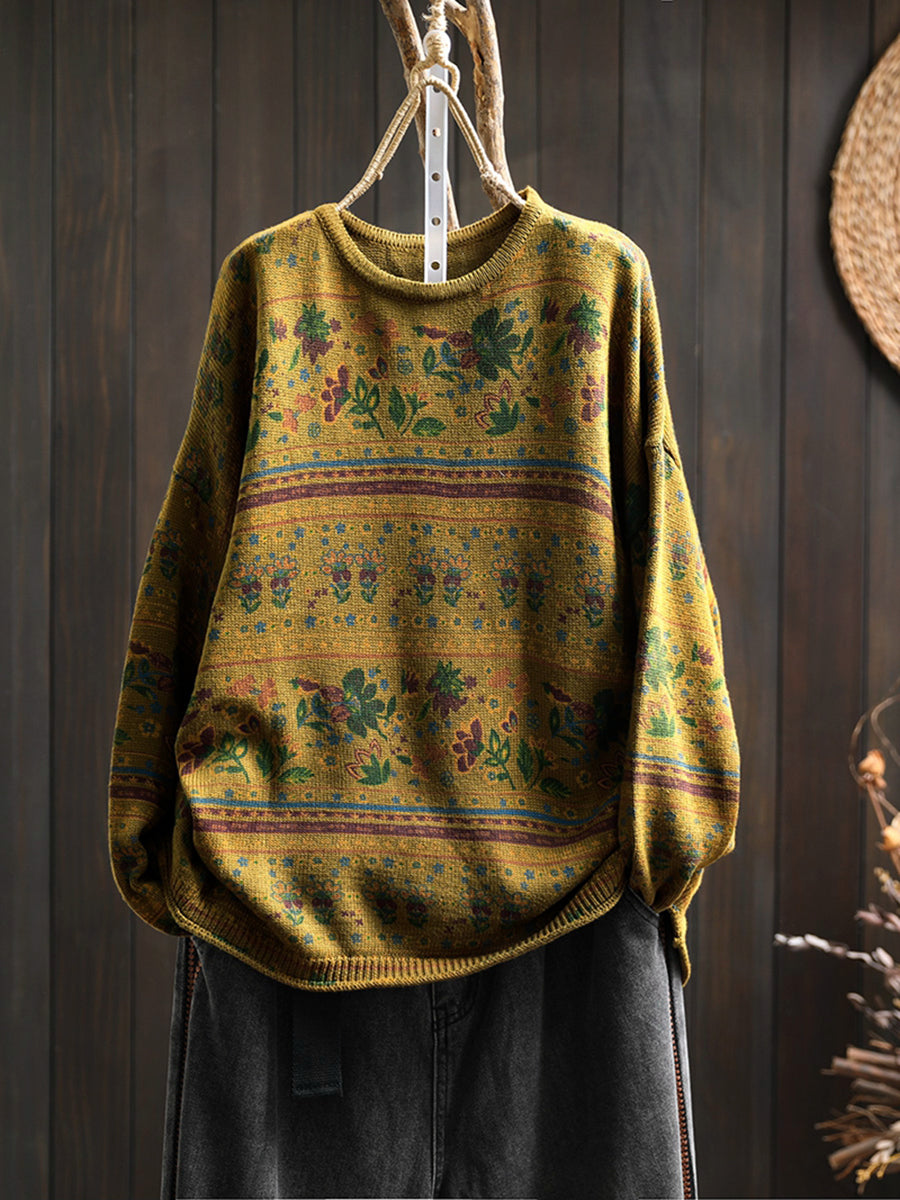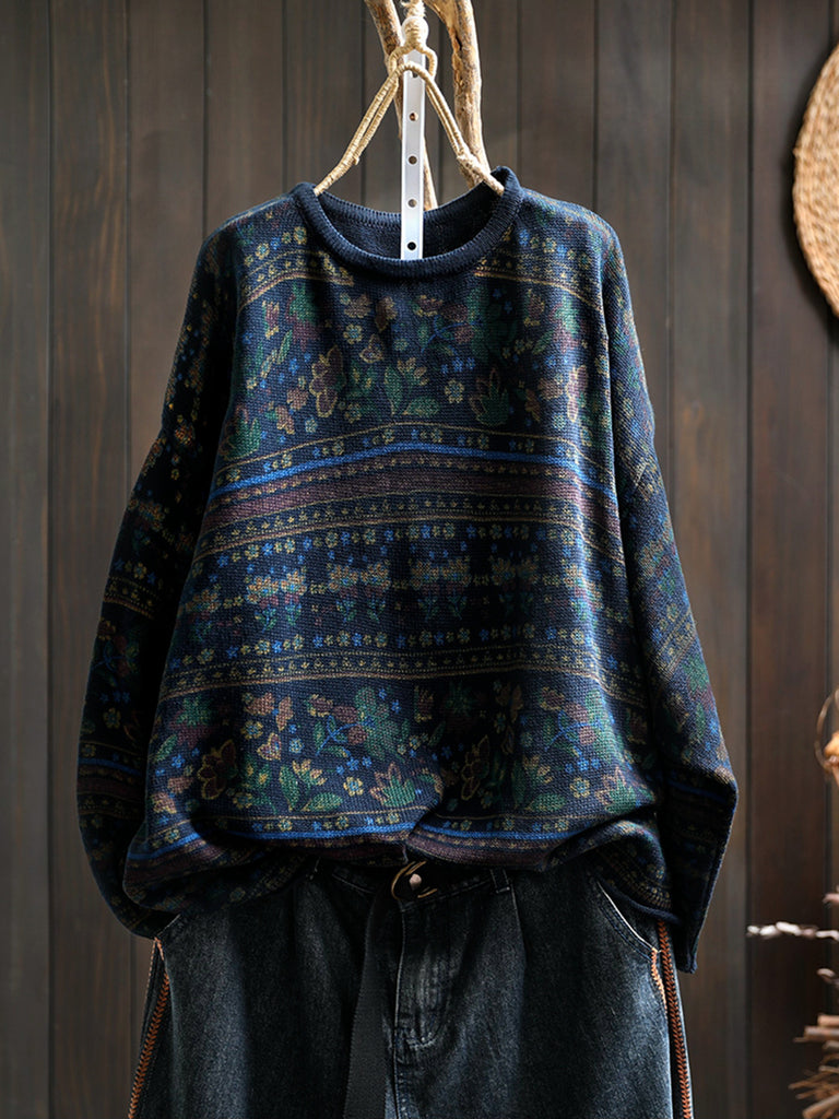 Damen-Strickpullover mit Blumenmuster und Rundhalsausschnitt für den Herbst