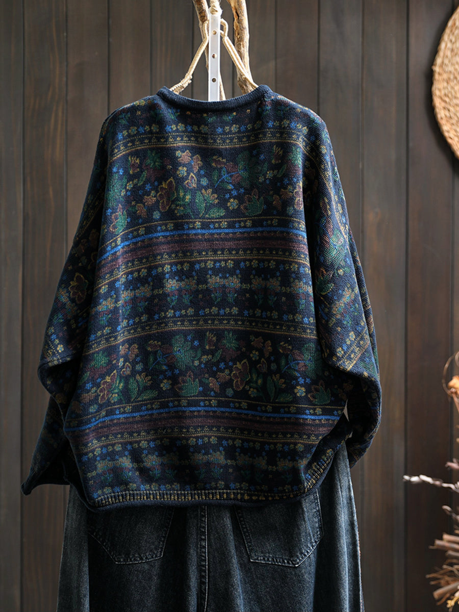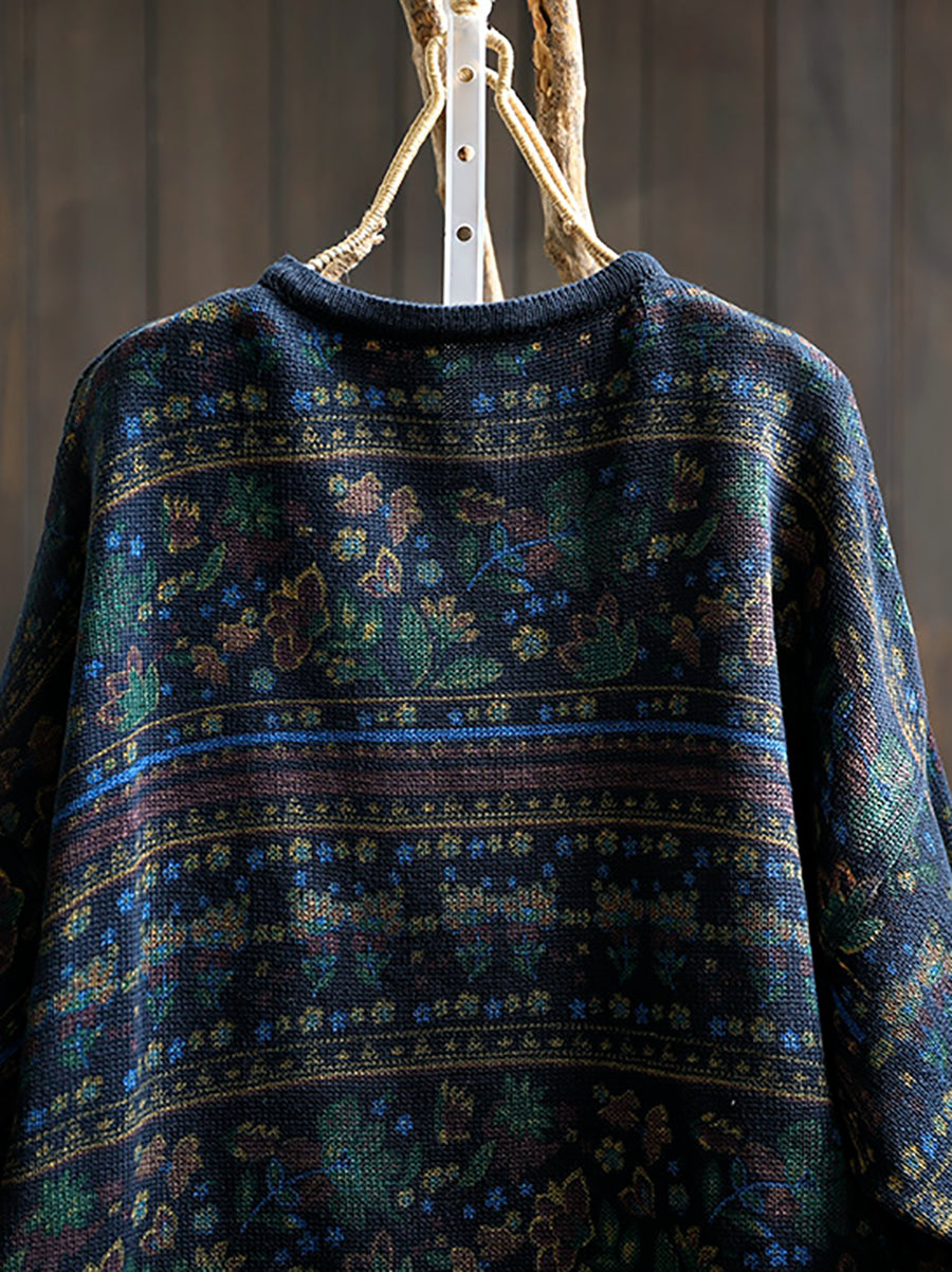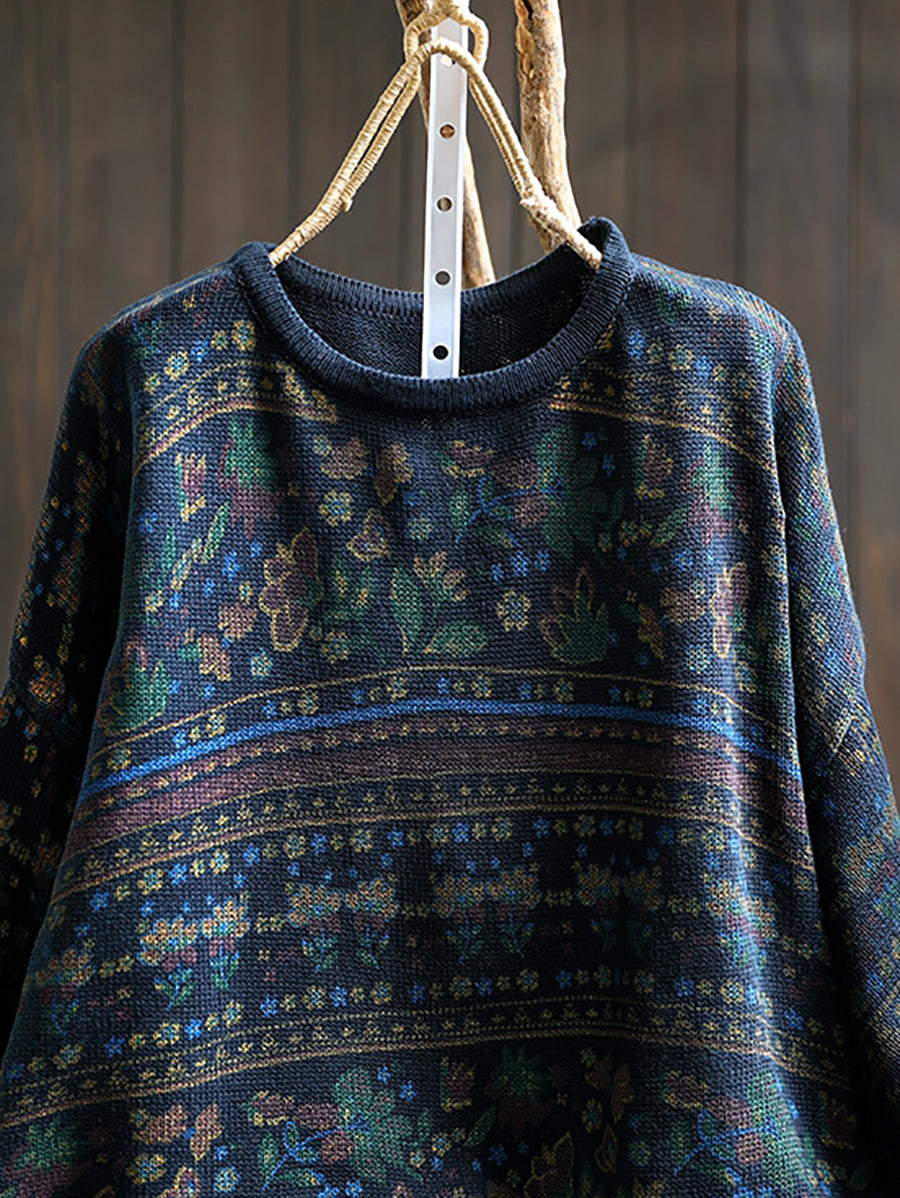 Damen-Strickpullover mit Blumenmuster und Rundhalsausschnitt für den Herbst