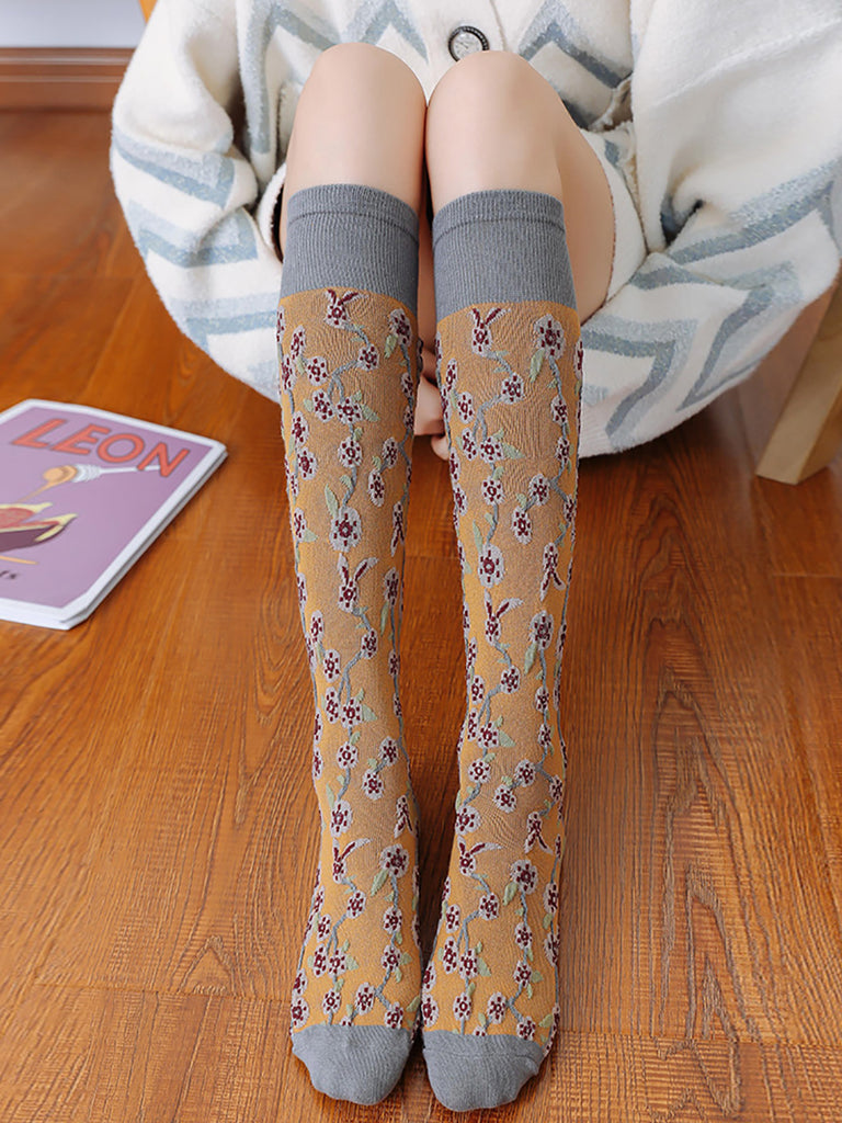 4 Paar lange Wintersocken aus Jacquard mit Blumenmuster für Damen