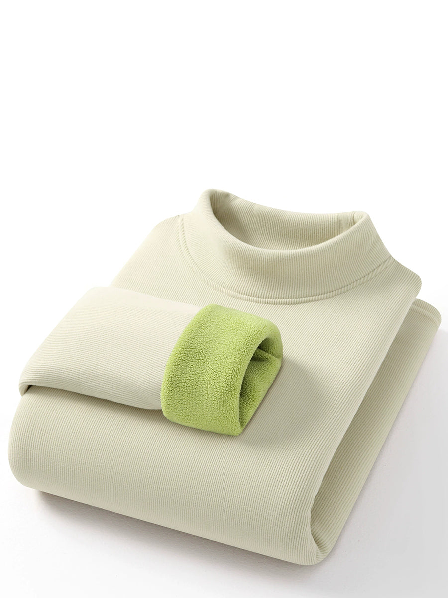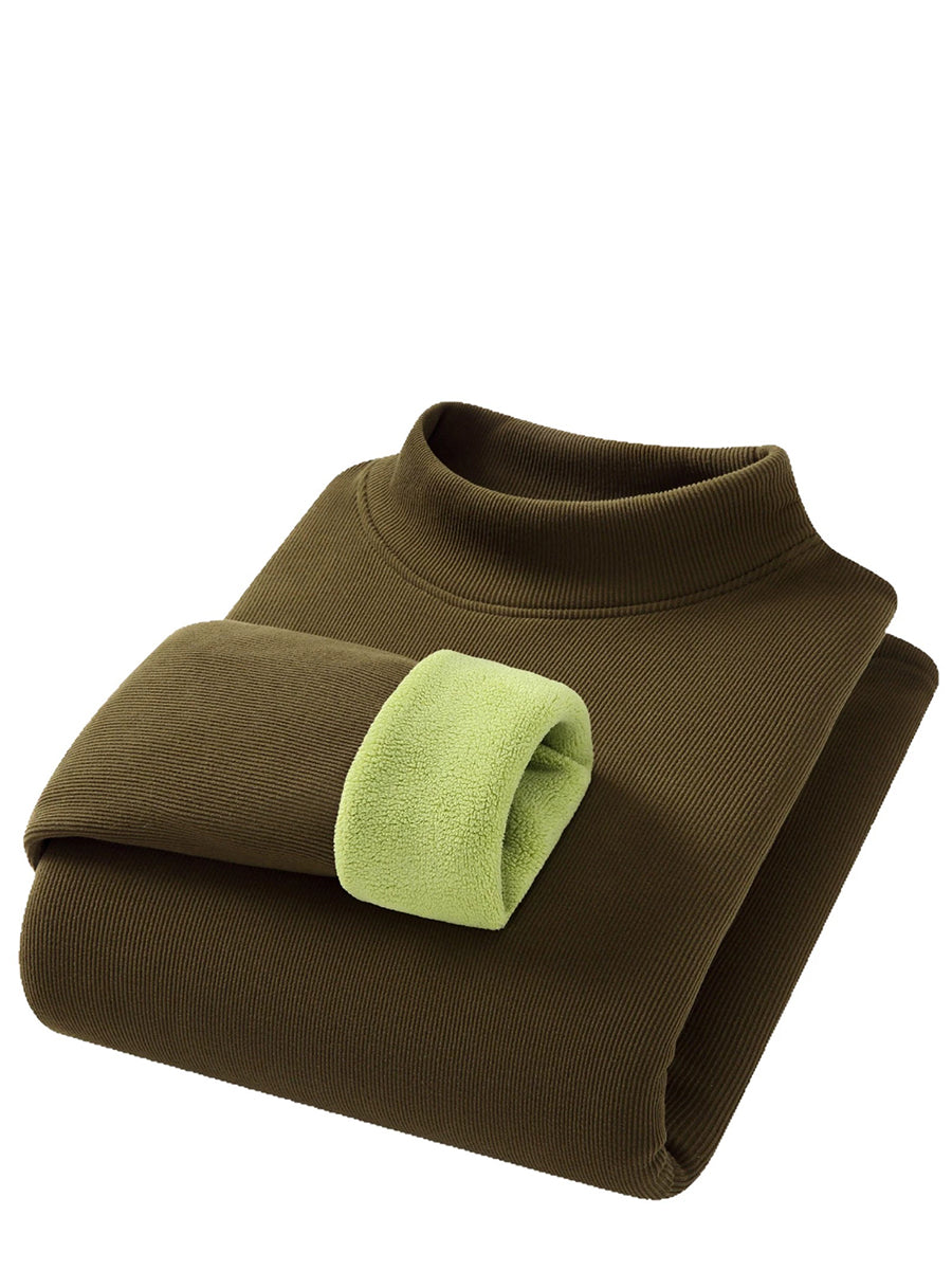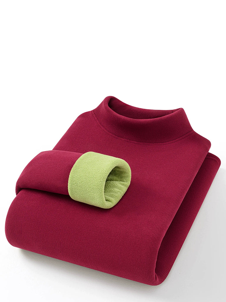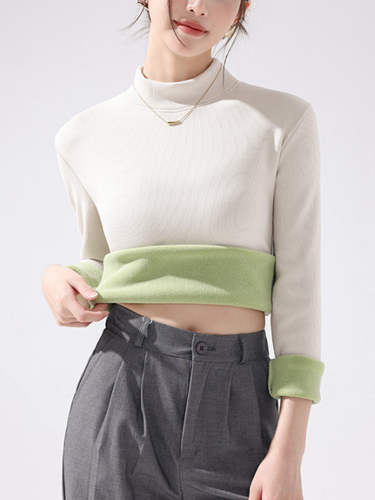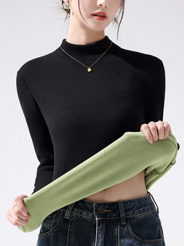 Damenbluse mit halben Rollkragen, einfarbig, fleecegefüttert, für den Herbst