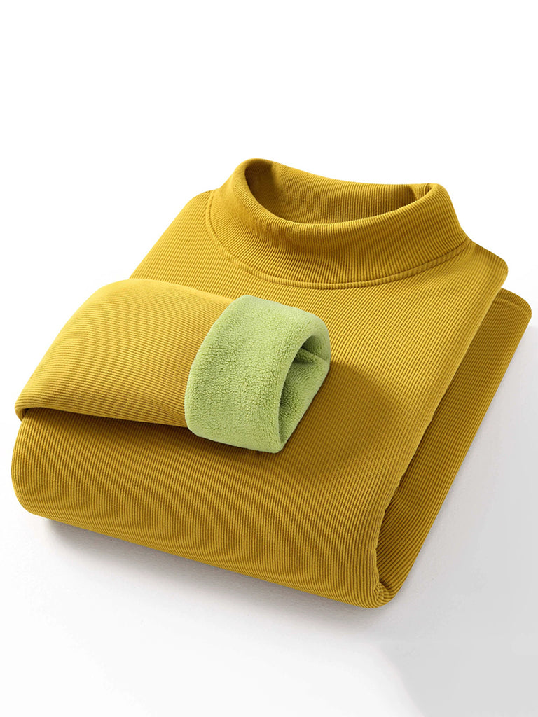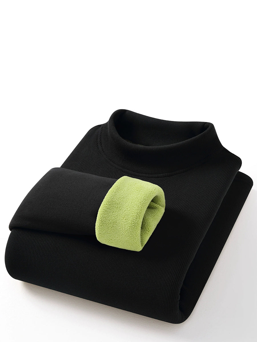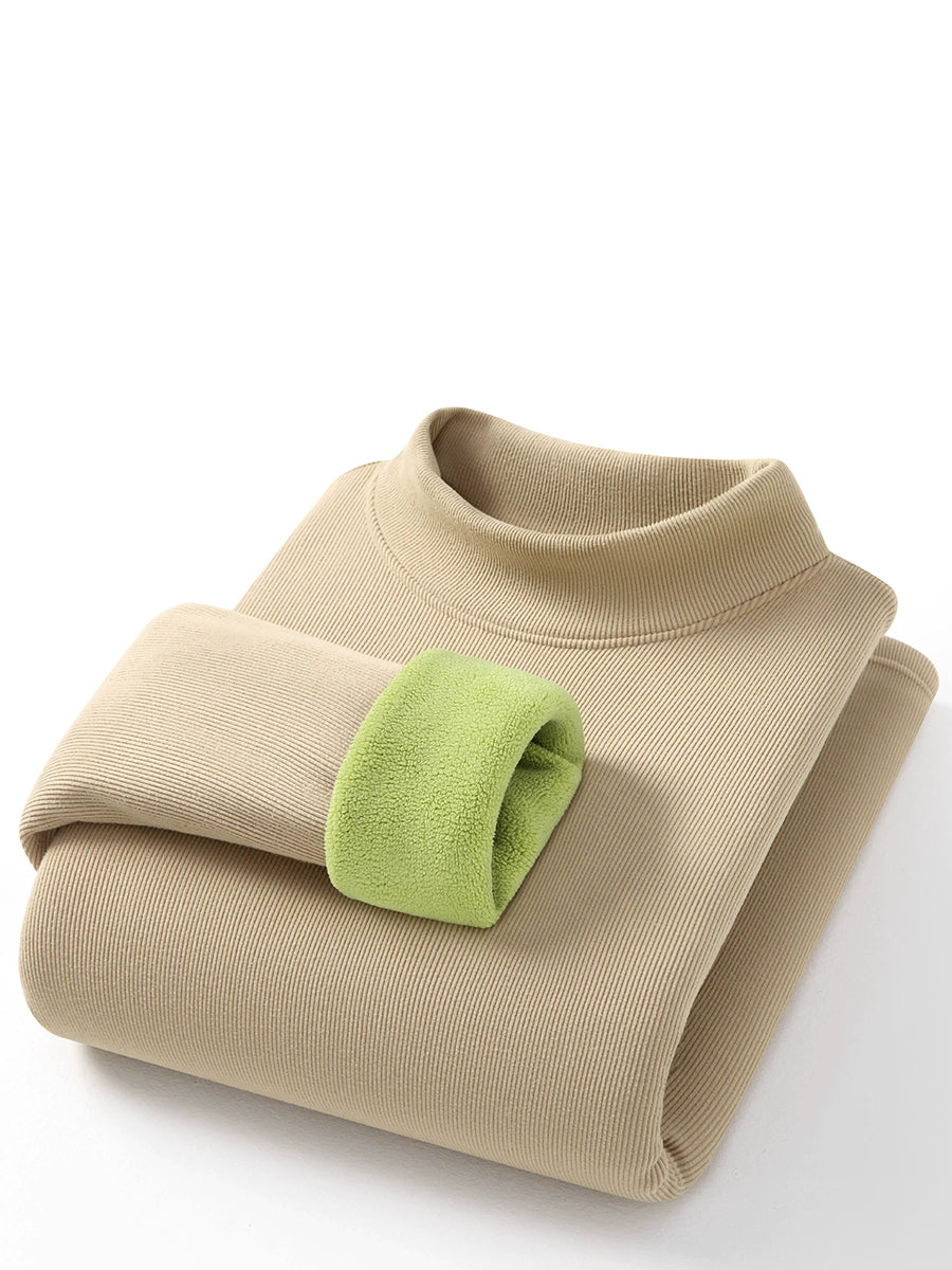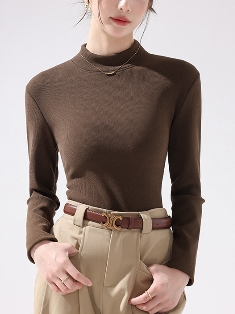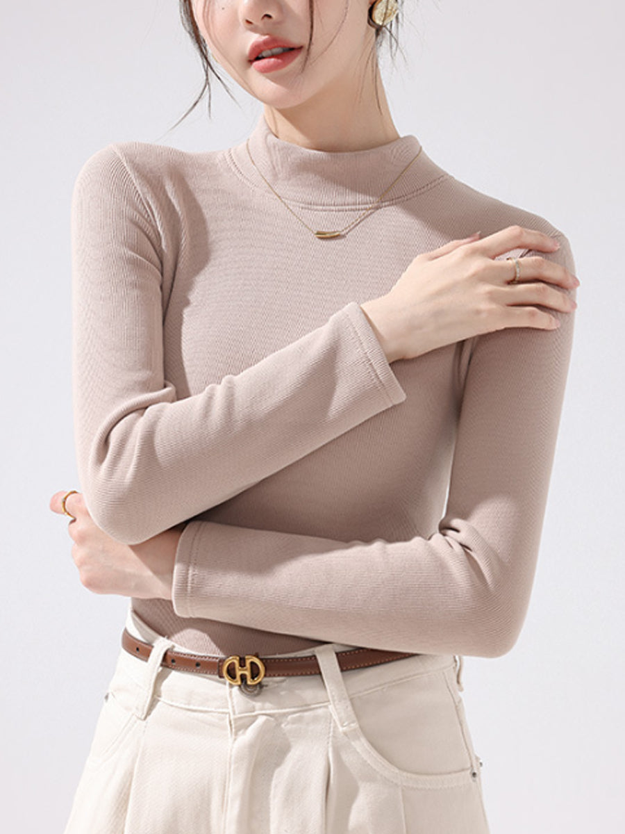 Damenbluse mit halben Rollkragen, einfarbig, fleecegefüttert, für den Herbst