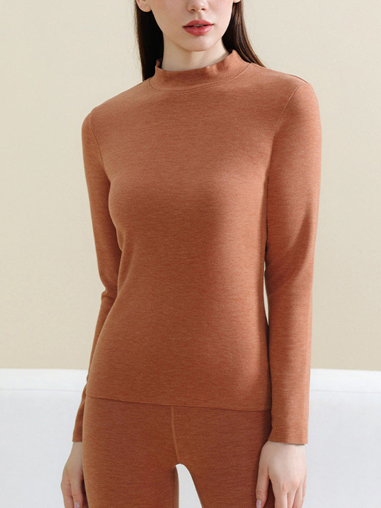 Damenbluse mit halben Rollkragen in Unifarben für den Herbst