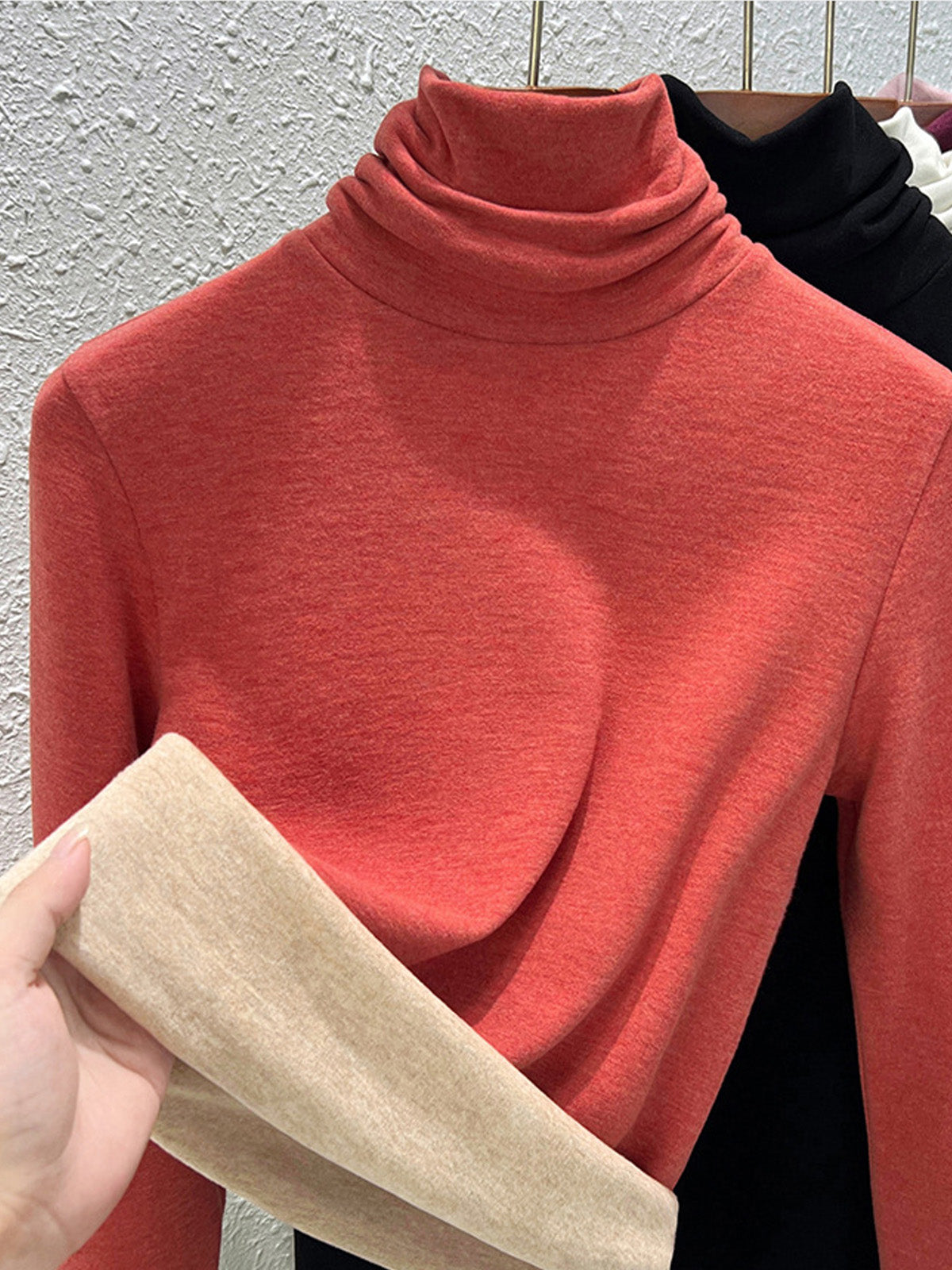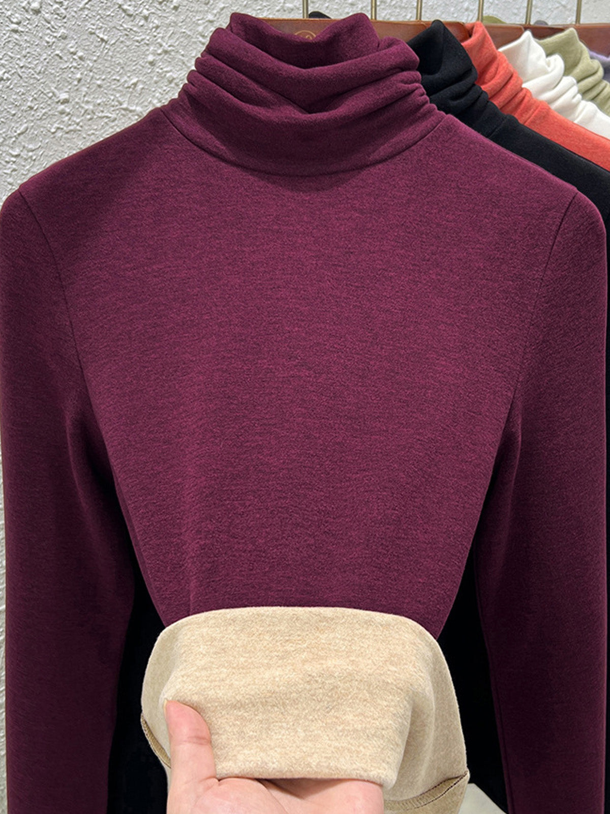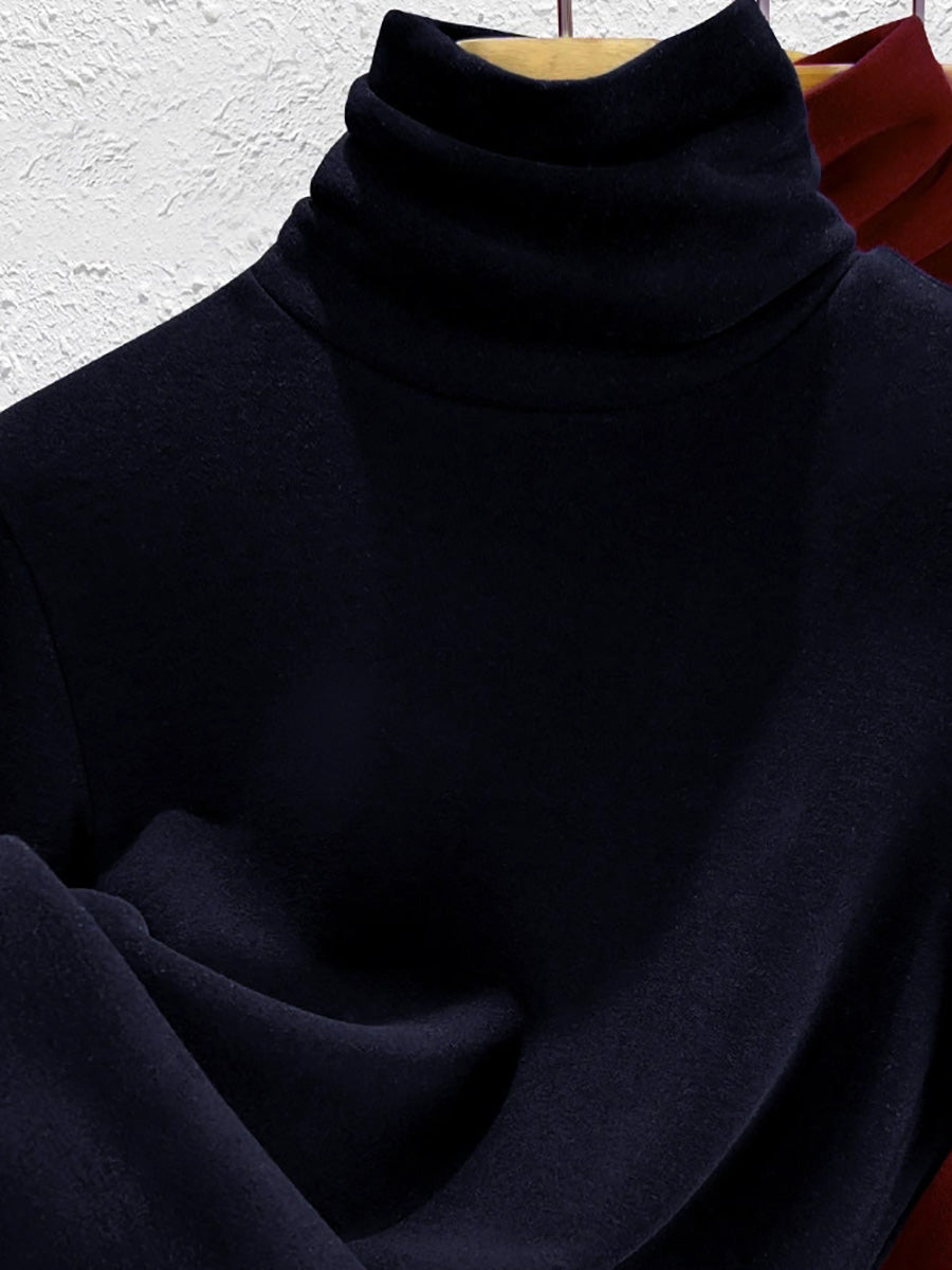 Lässige Damenbluse mit Rollkragen in Unifarben für den Winter