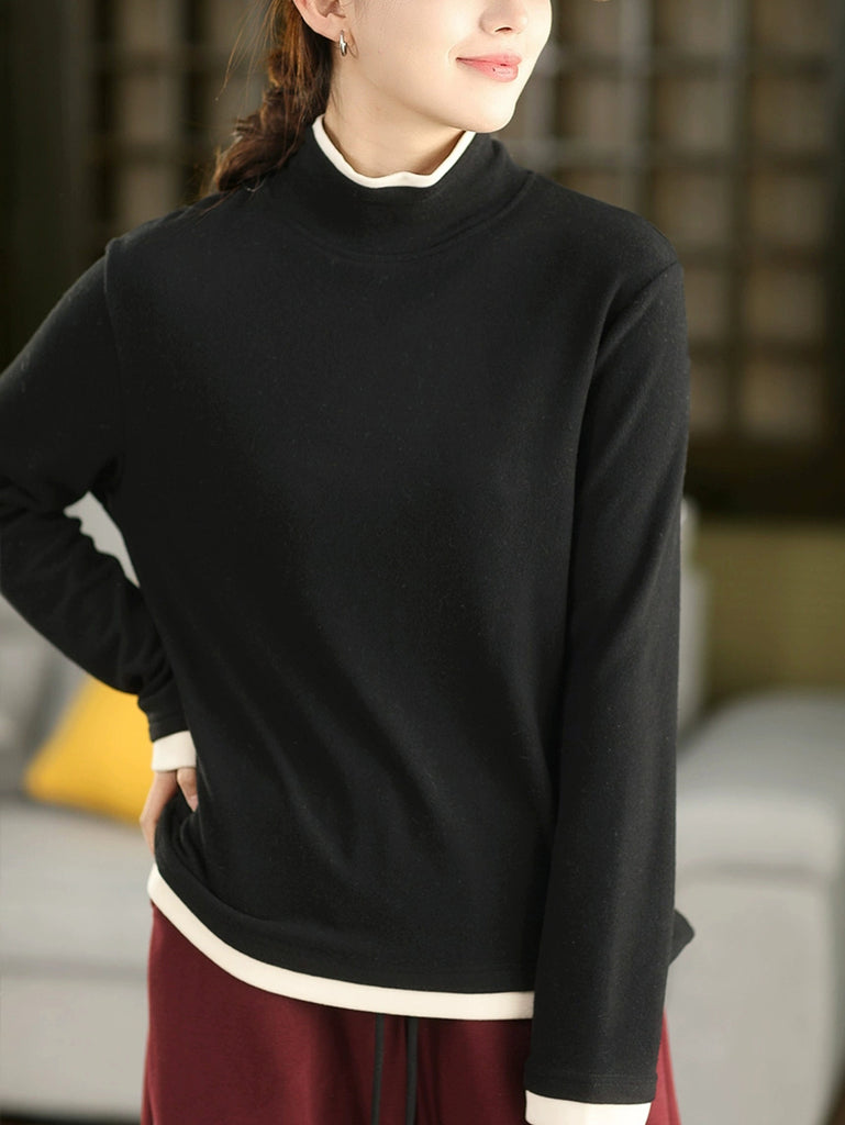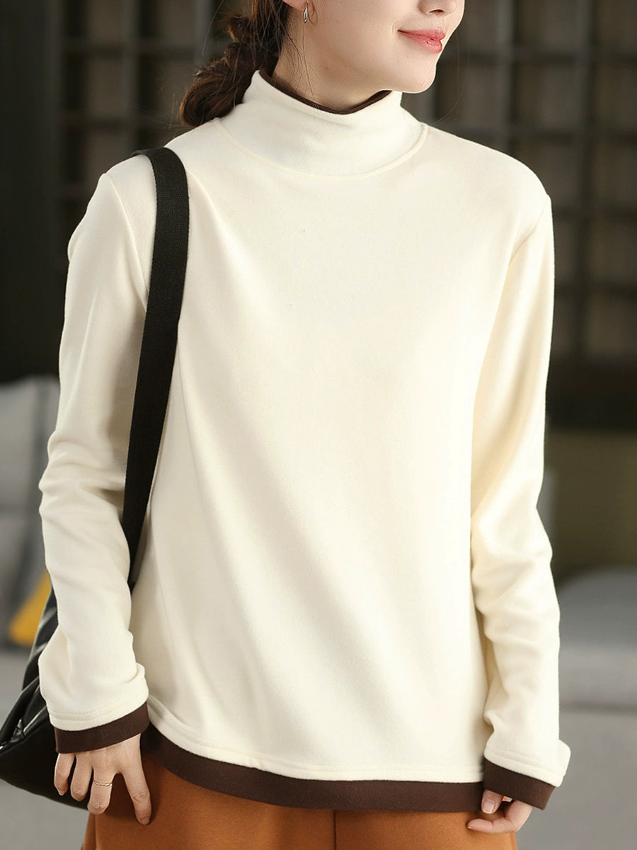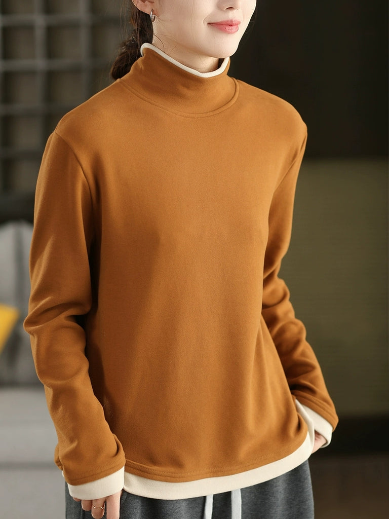Damen Winter Casual Colorblock Fleece Rollkragenbluse