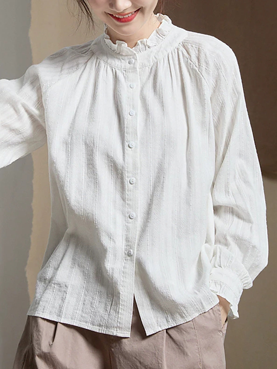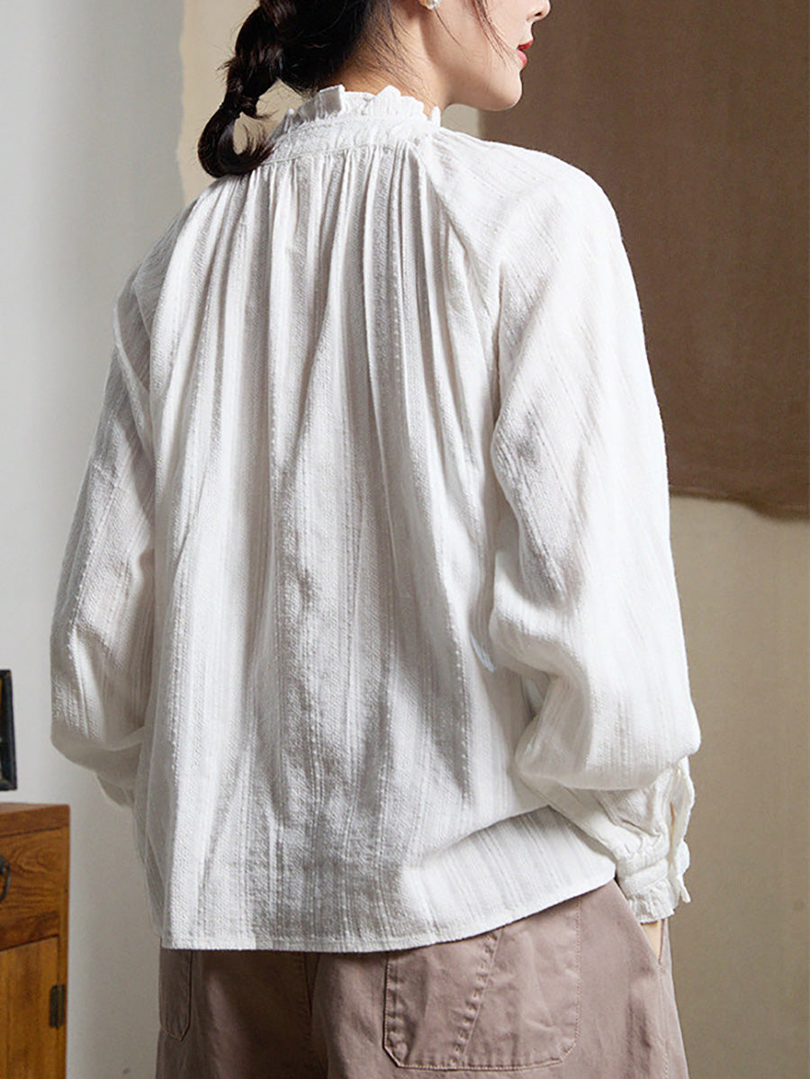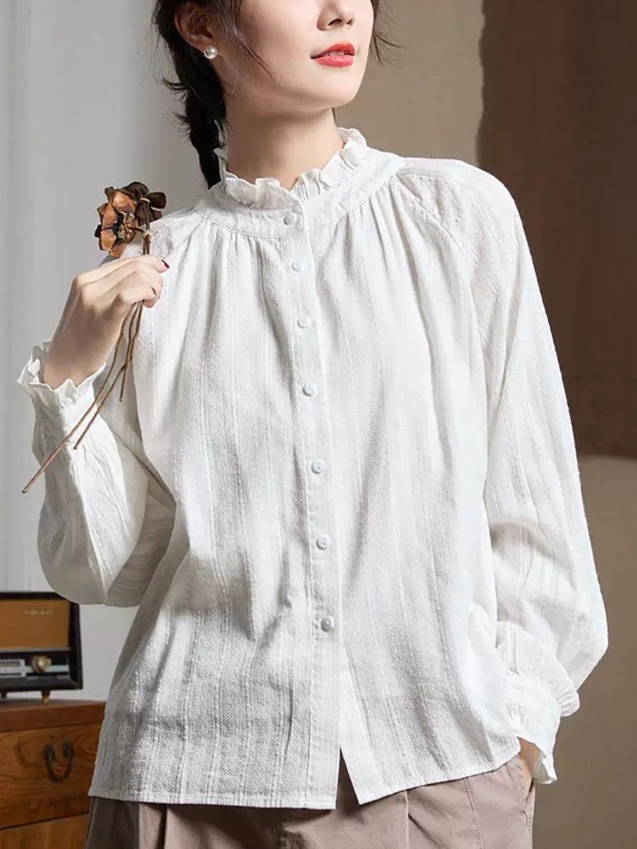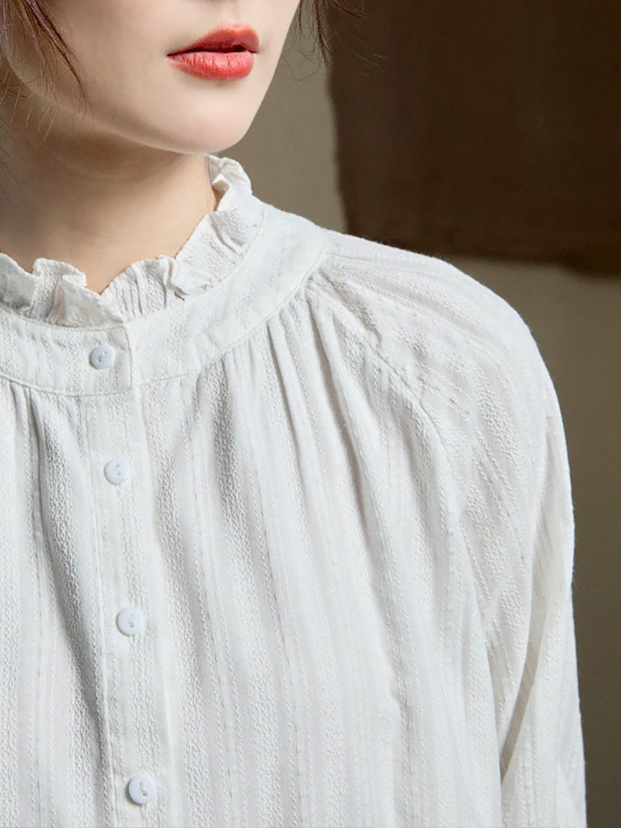 Damenbluse mit Jacquard-Spitzenkragen, typisch für den Frühling