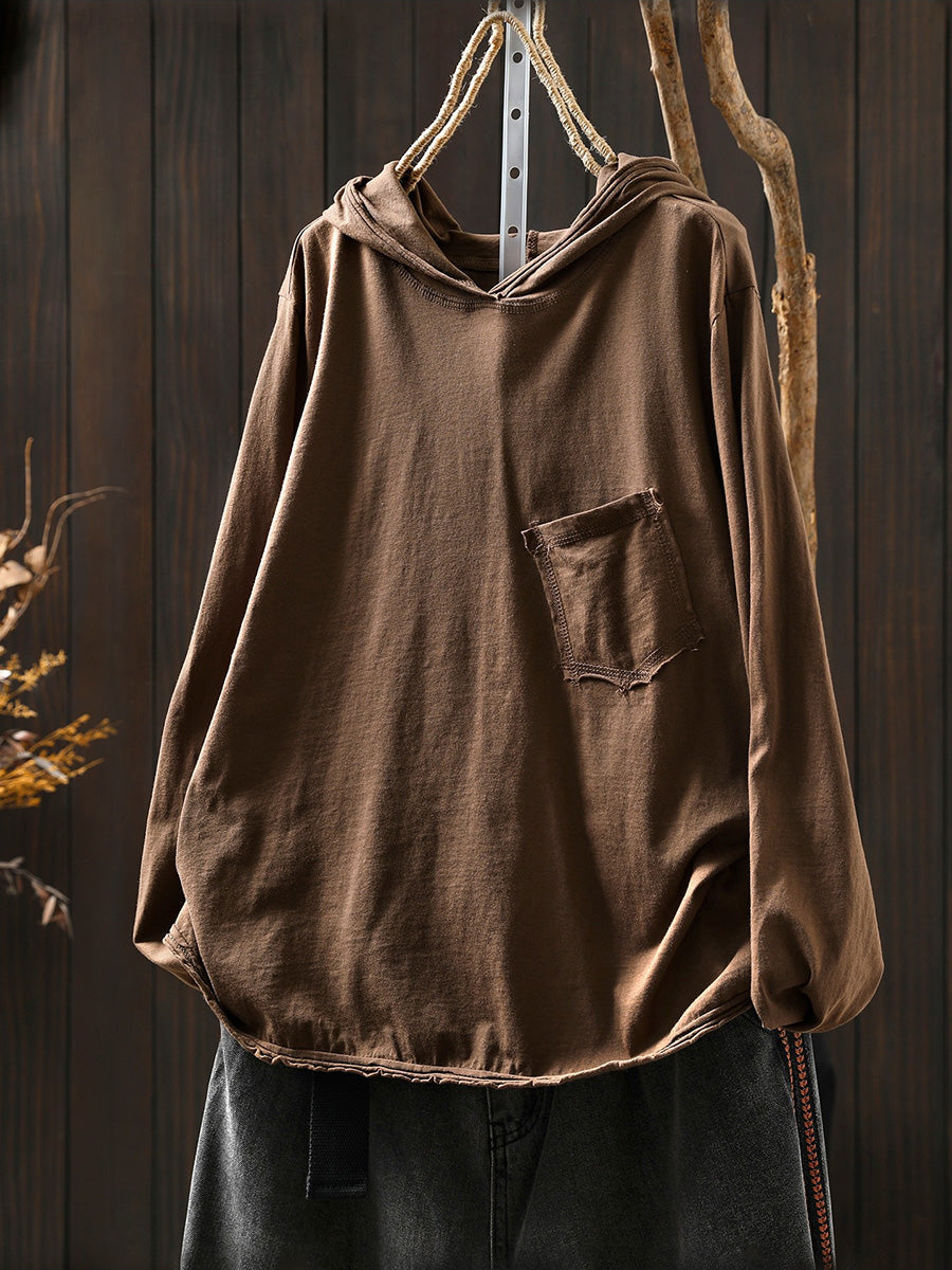 Damen-Hoodie aus reinfarbiger Baumwolle, typisch für den Frühling