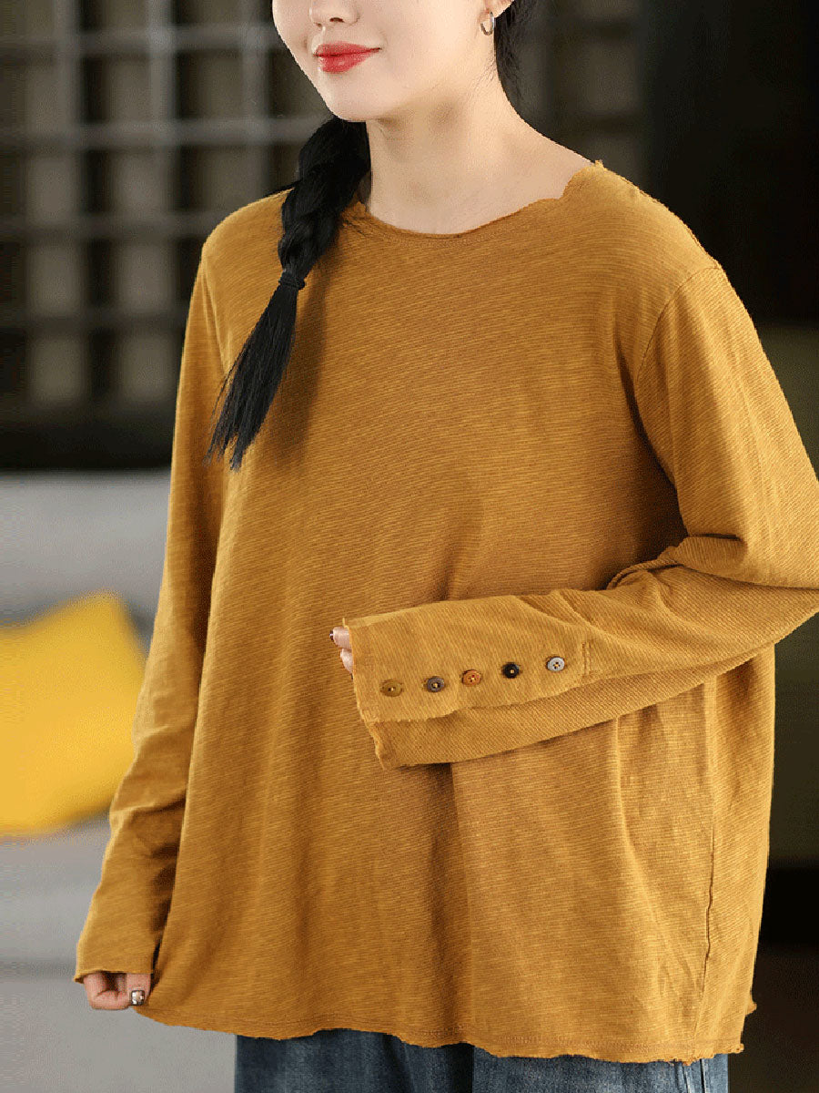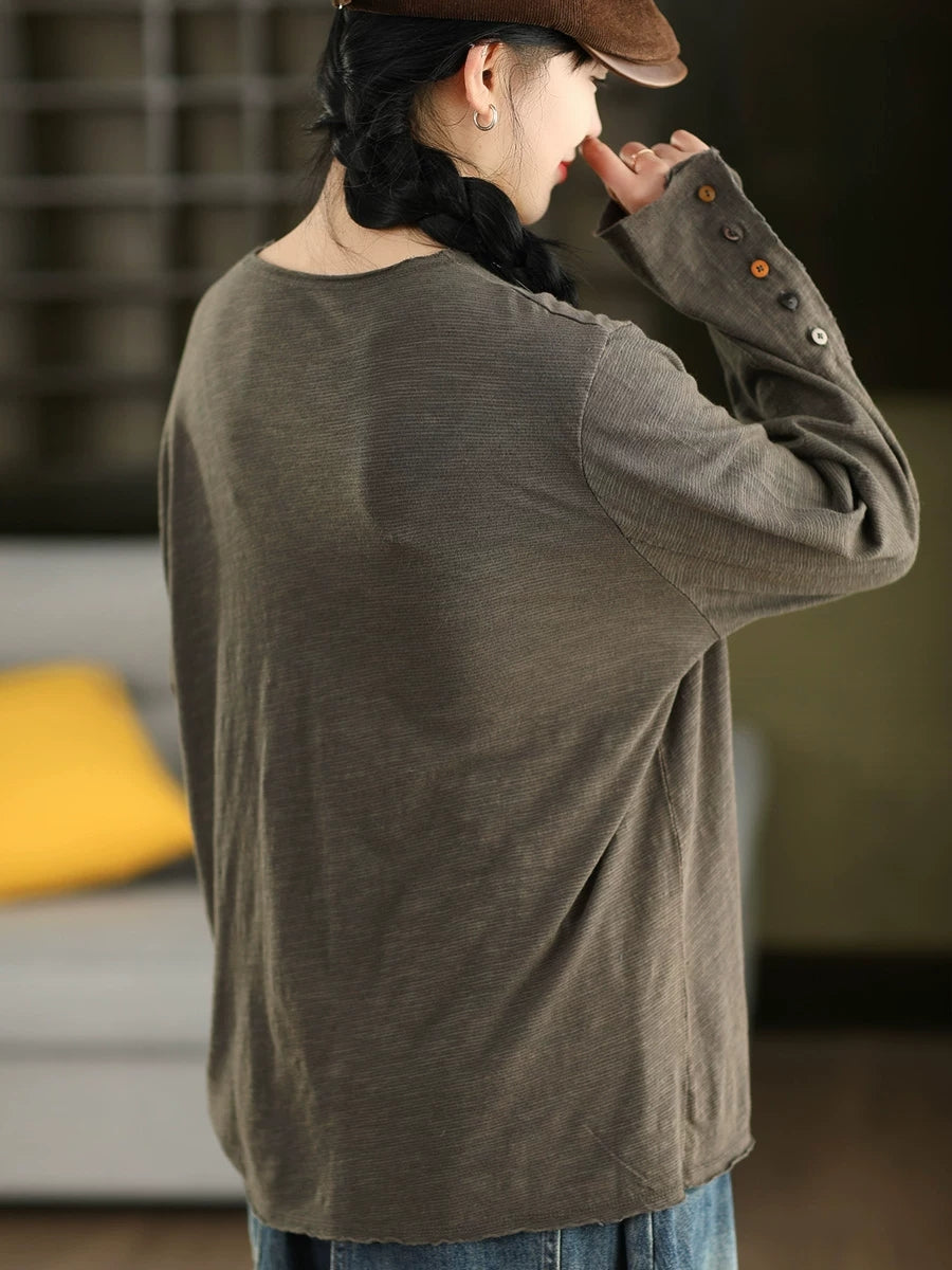 Damenbluse mit Rundhalsausschnitt aus reiner Baumwolle in einem eleganten Frühlingsdesign.