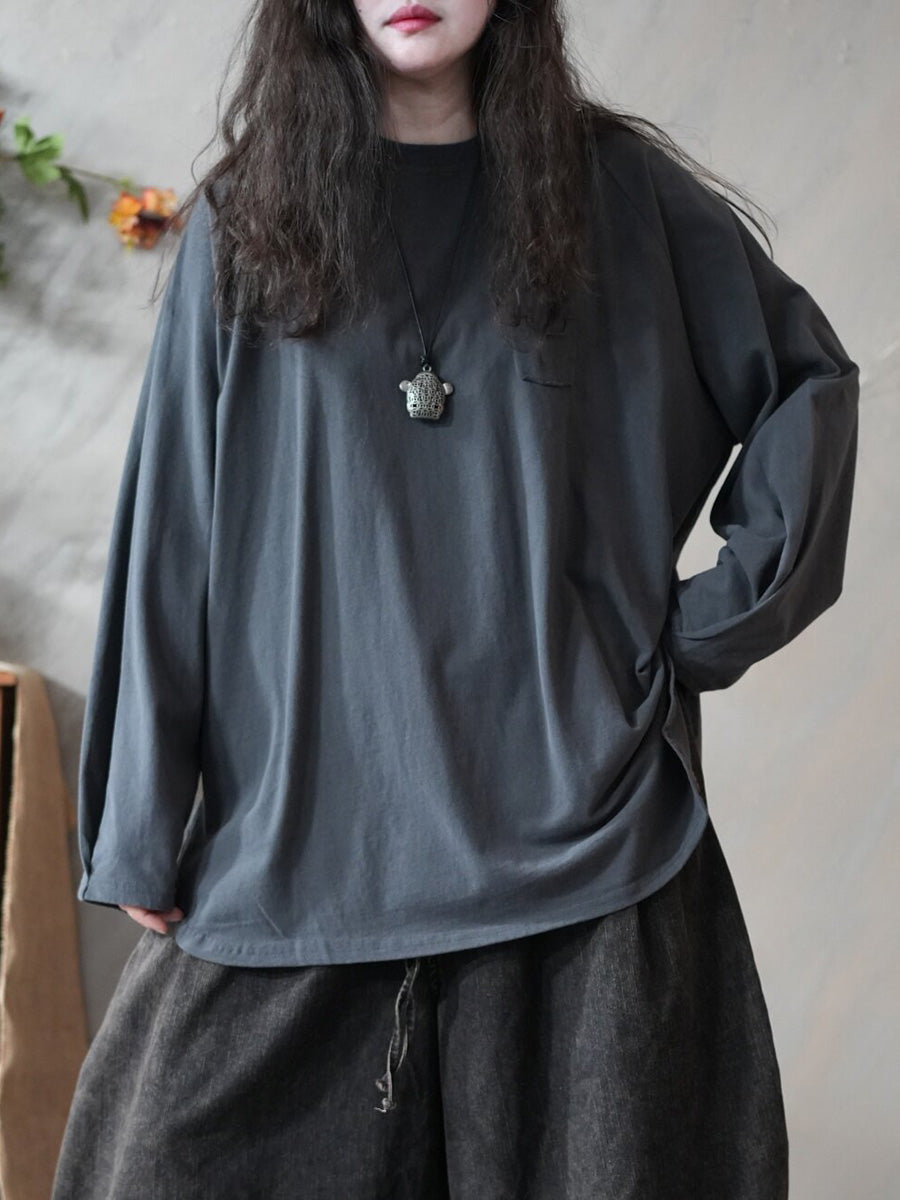 Damen-Frühlingsbluse, lässig, einfarbig, Rundhalsausschnitt