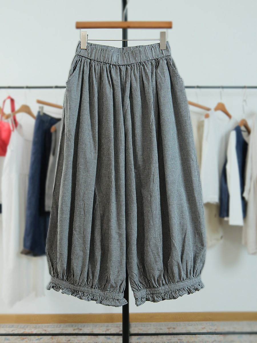 Damen Sommerhose mit künstlerischem Gittermuster und weitem Bein