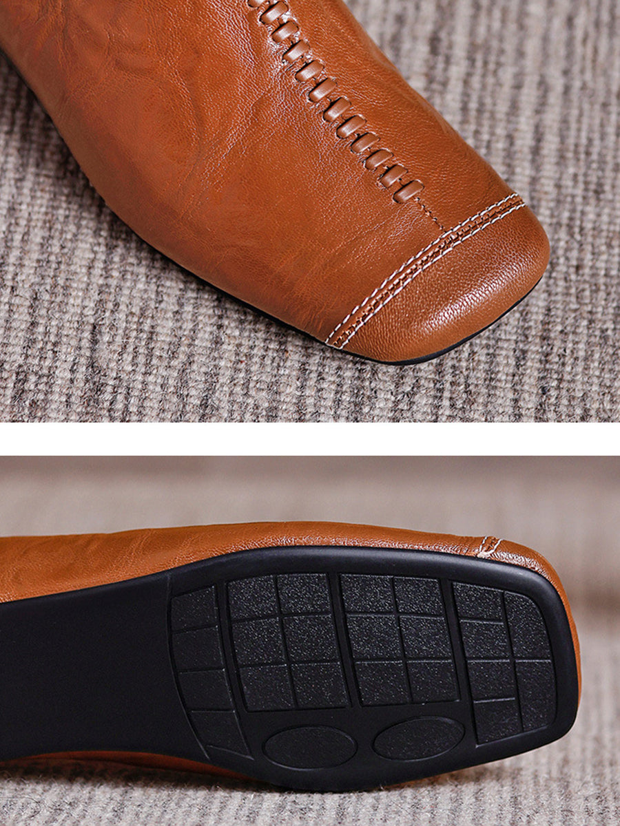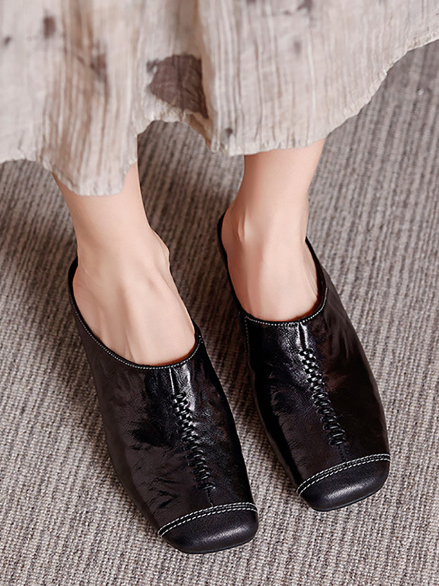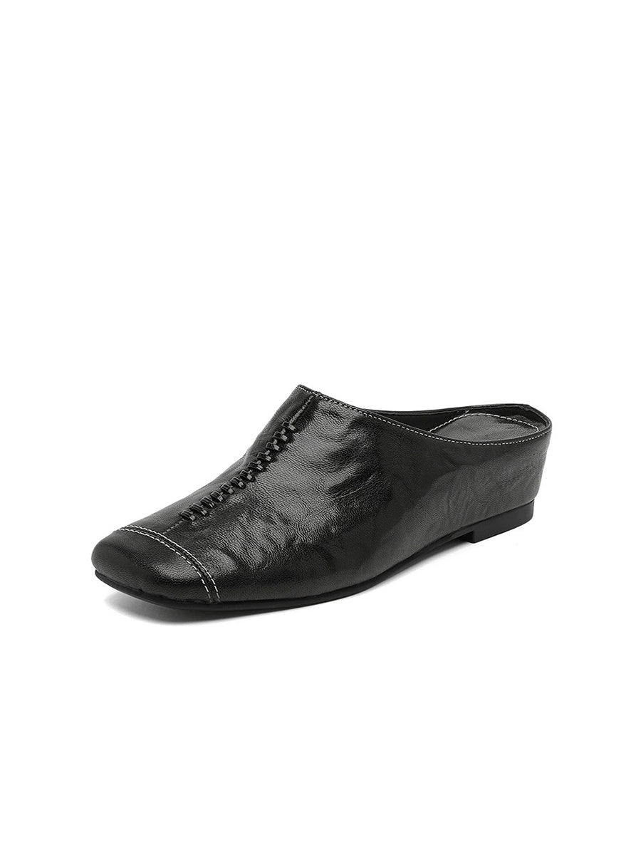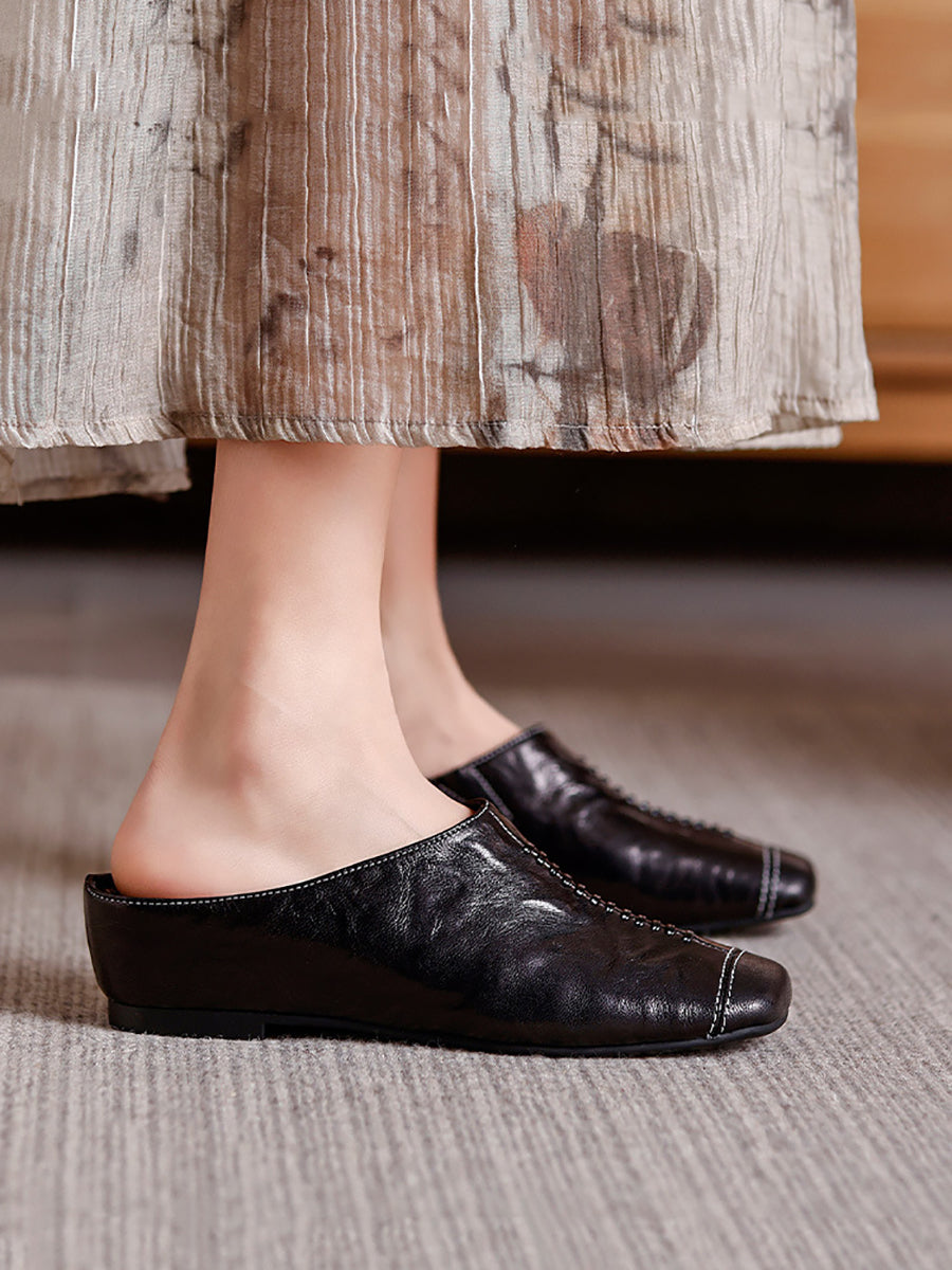 Damen-Sommerpantoffeln aus weichem Leder mit eckiger Spitze