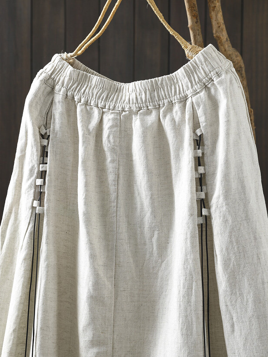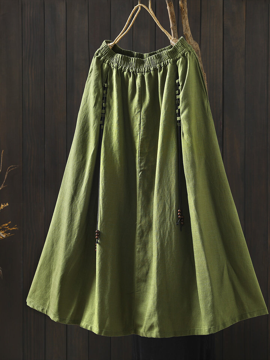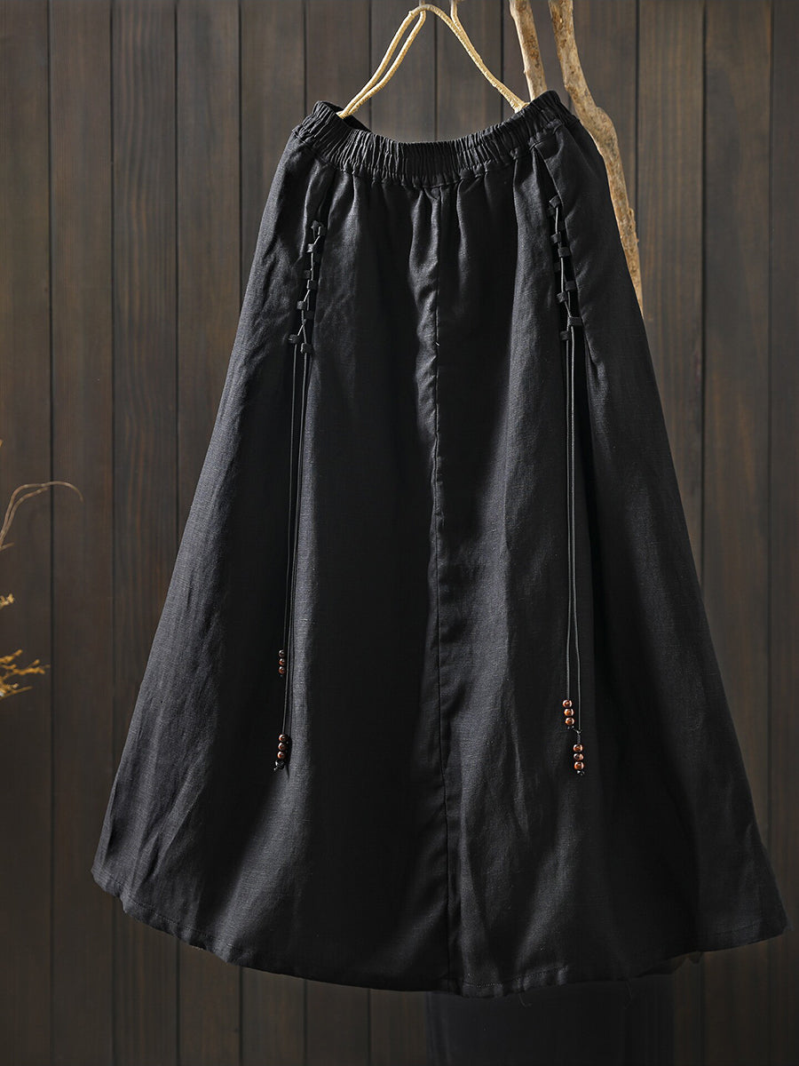 Damen-Sommerrock mit Quasten aus 100 % Leinen, A-Form
