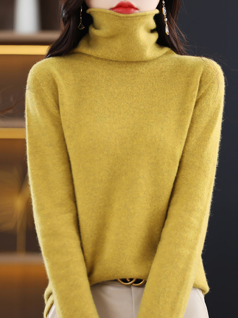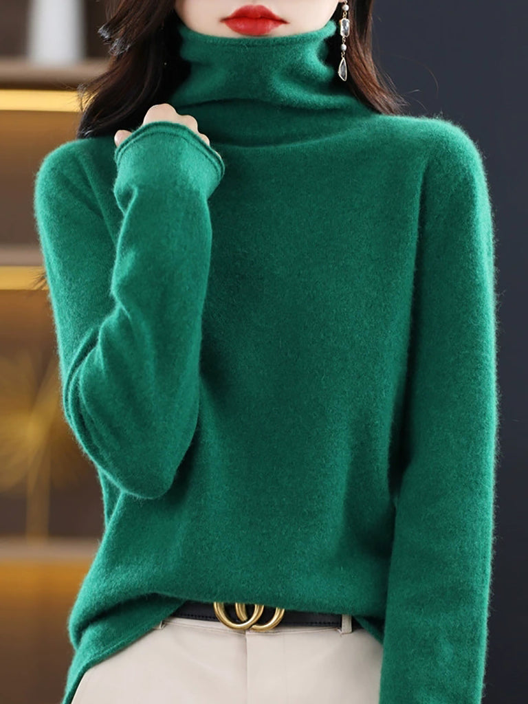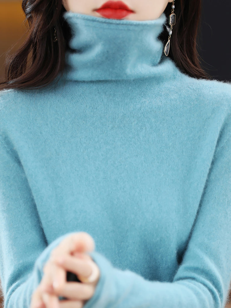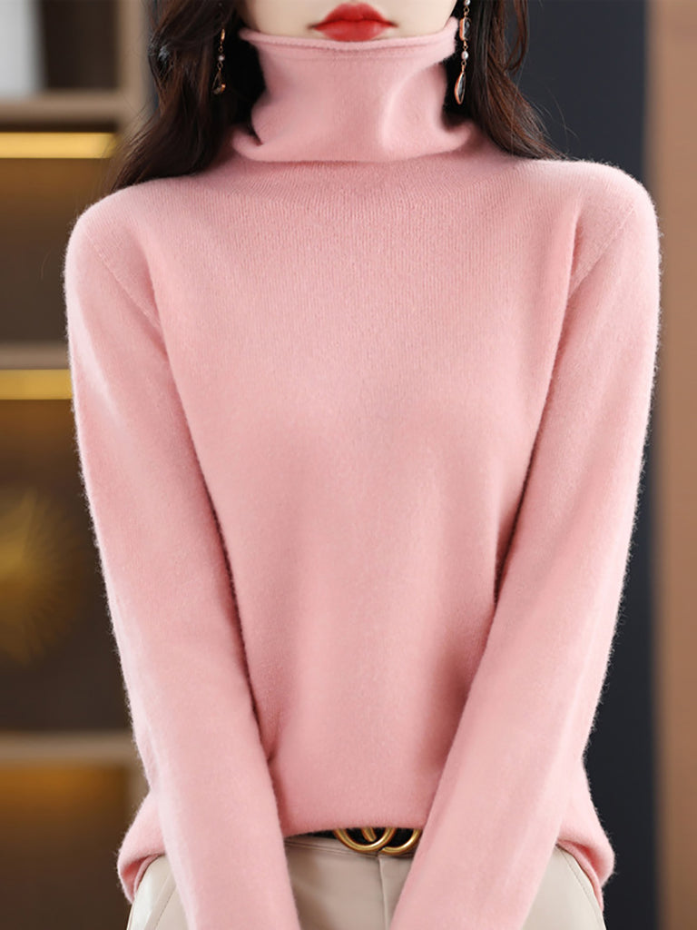 Damen Winter Casual Einfarbiger Rollkragenpullover