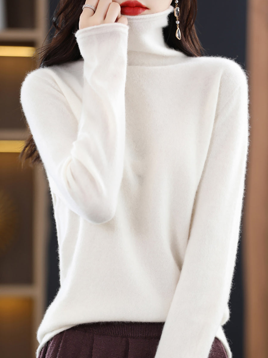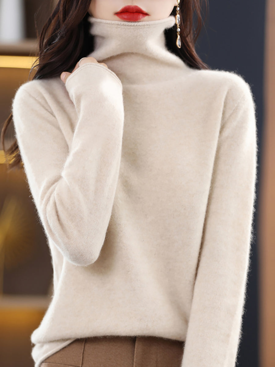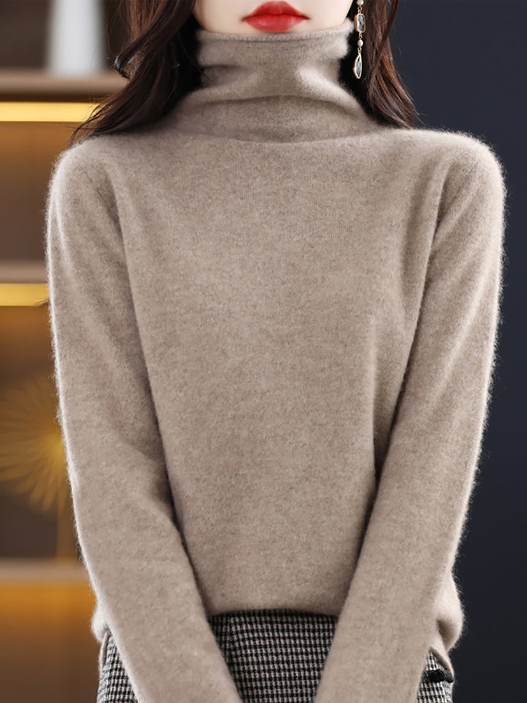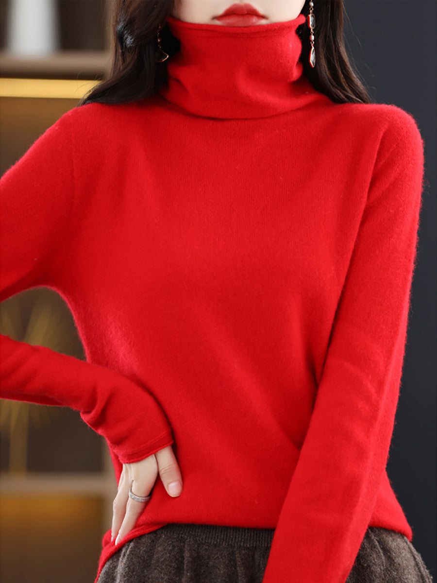 Damen Winter Casual Einfarbiger Rollkragenpullover
