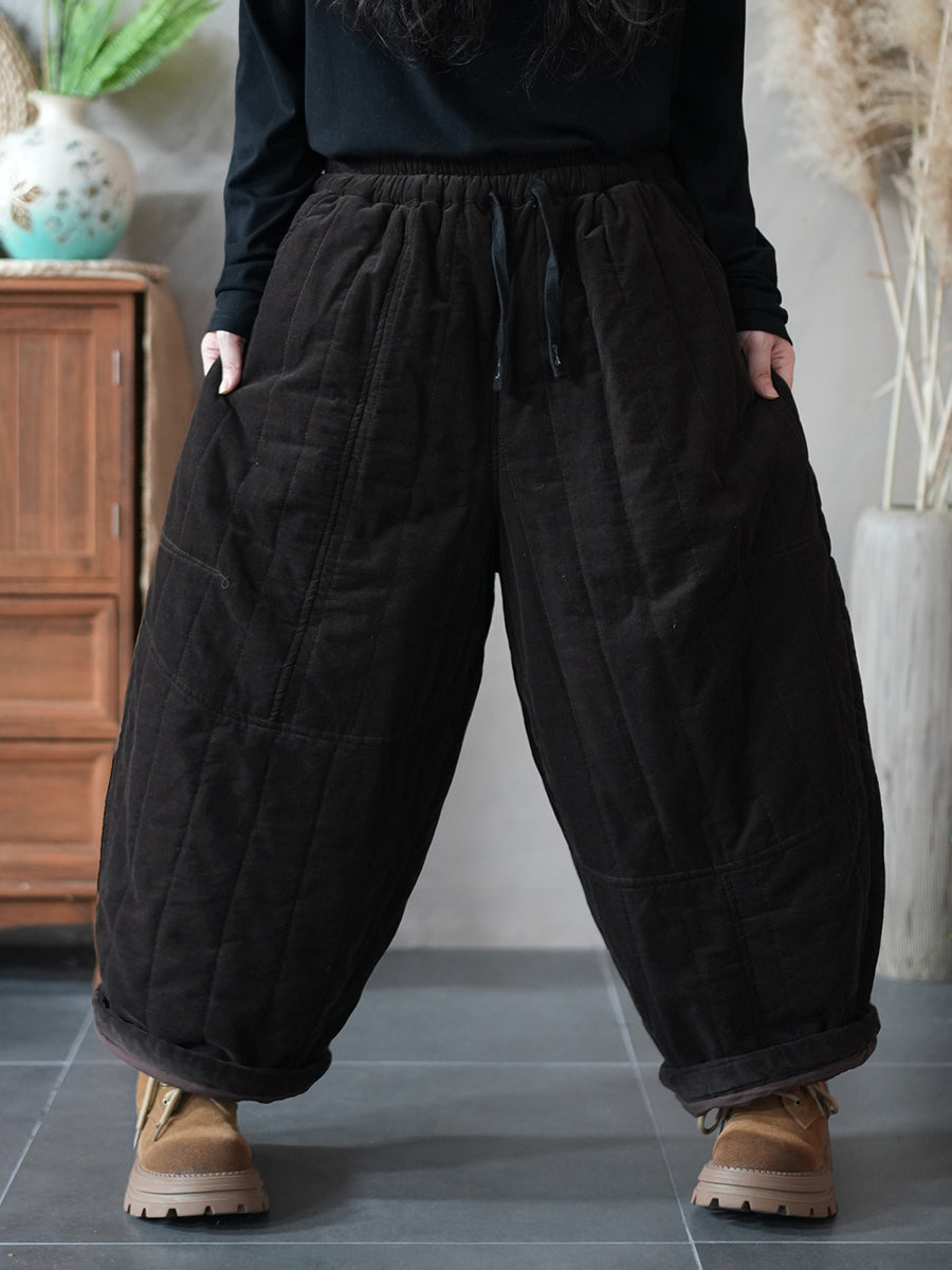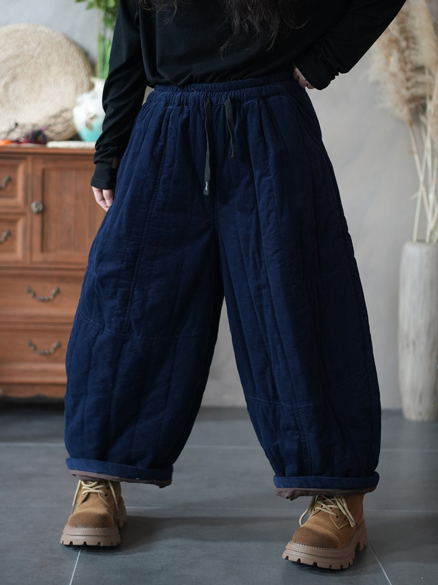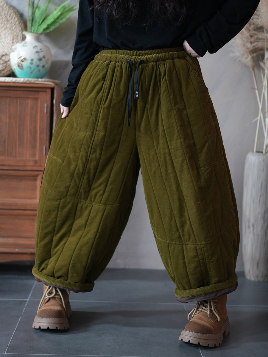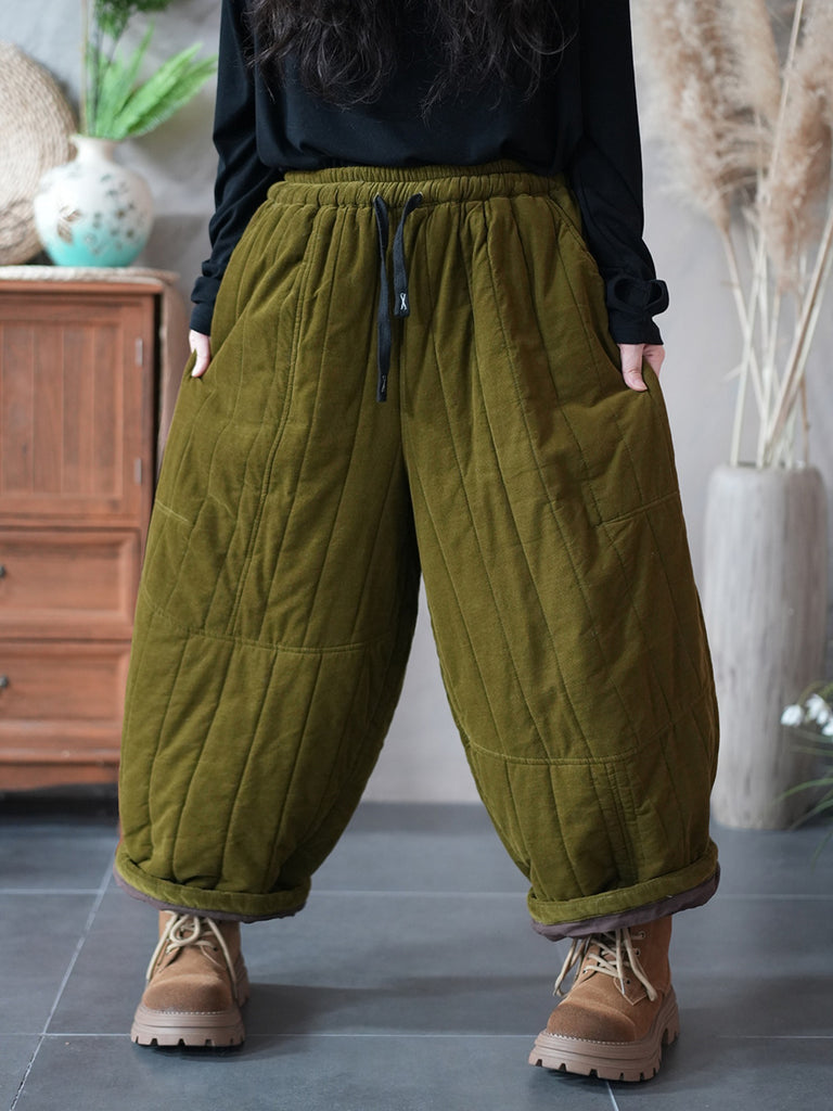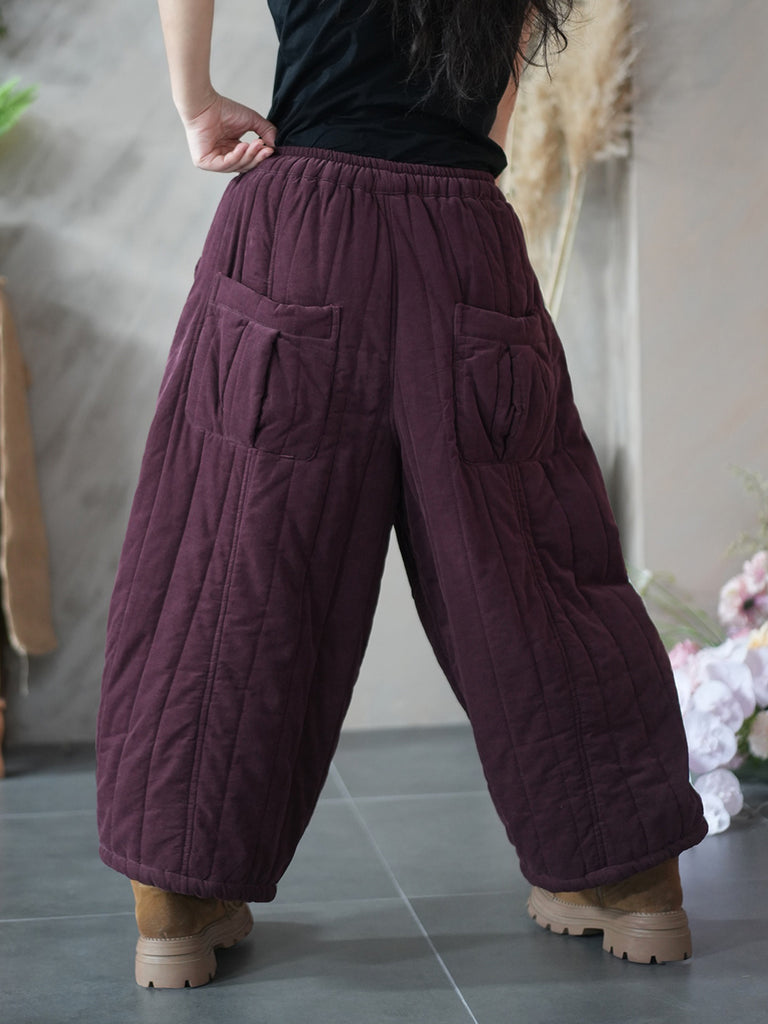 Γυναικείο Χειμερινό Ρετρό Παντελόνι με Πλατιά Επένδυση και Ενίσχυση σε Λευκό Χρώμα