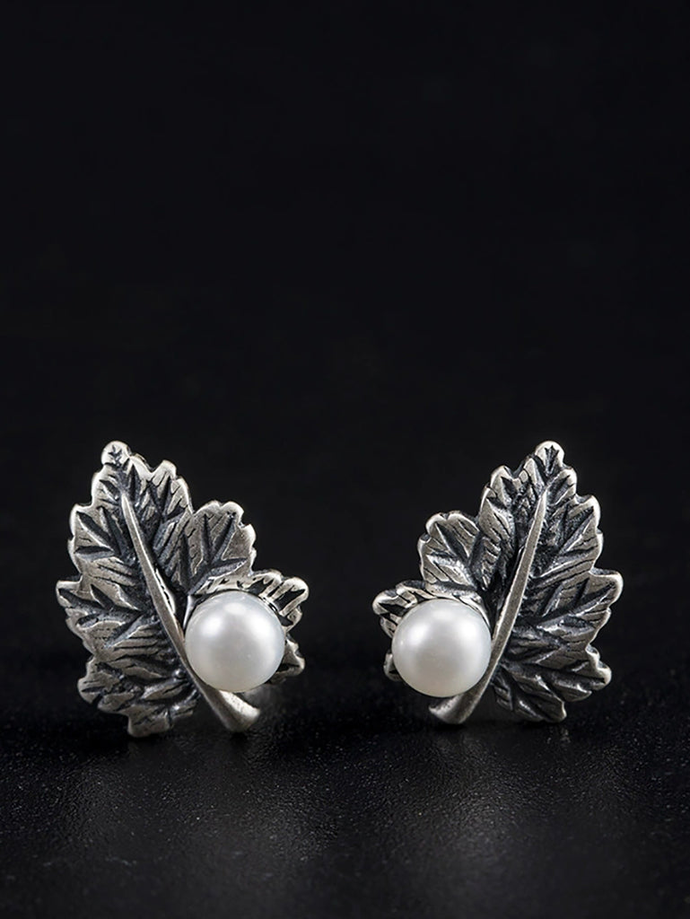 Γυναικεία Vintage S925Σκουλαρίκια με ασημένια φύλλα μαργαριταριού