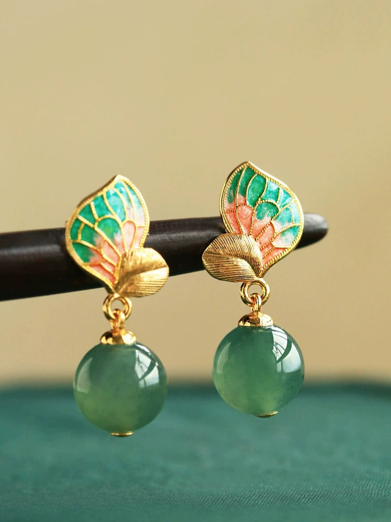 Γυναικείο Vintage Cloisonne Jade Χάλκινο Σκουλαρίκι