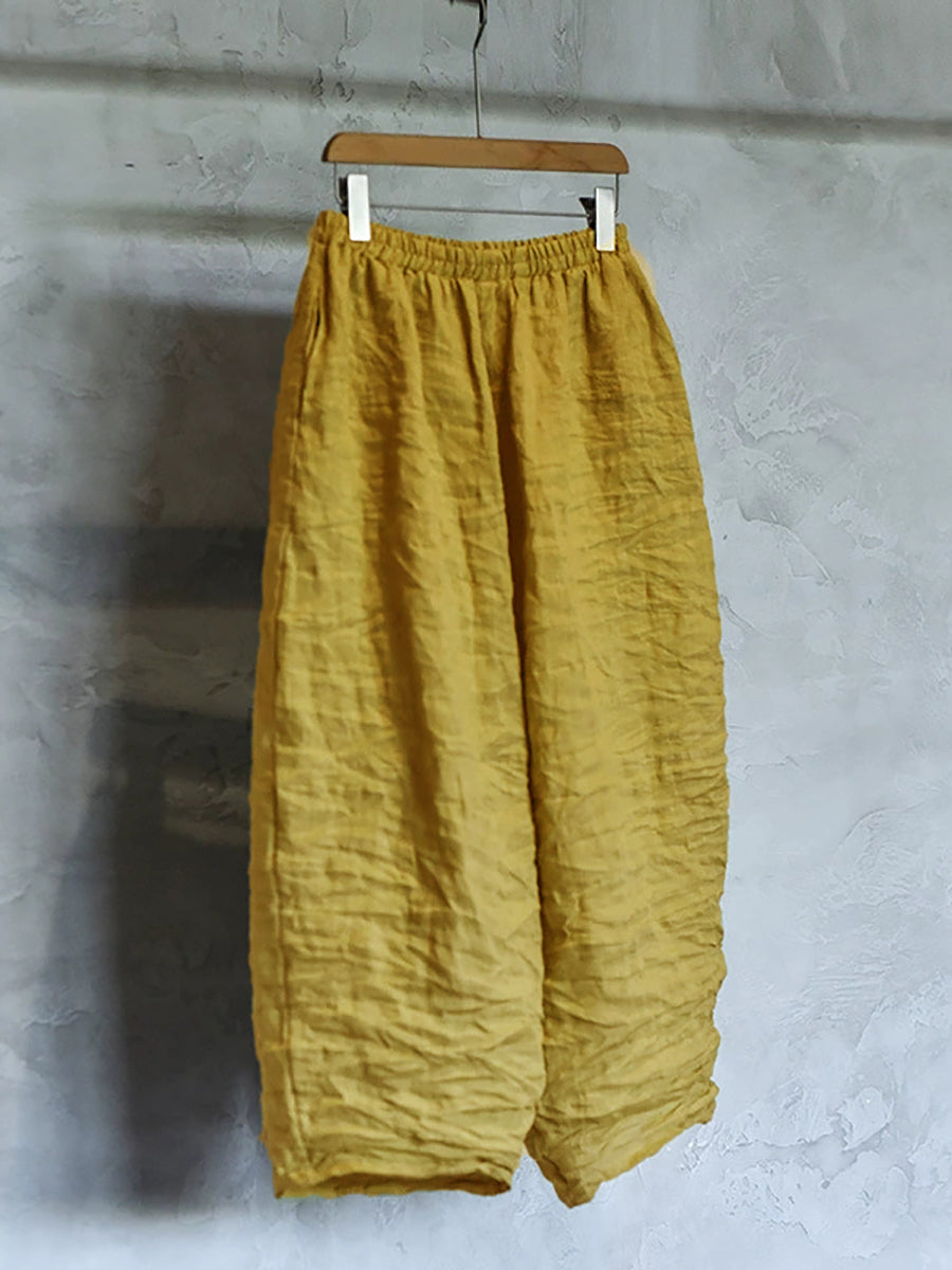 Γυναικείο ανοιξιάτικο ρετρό λινό παντελόνι με φαρδιά μπατζάκια από καθαρό χρώμα
