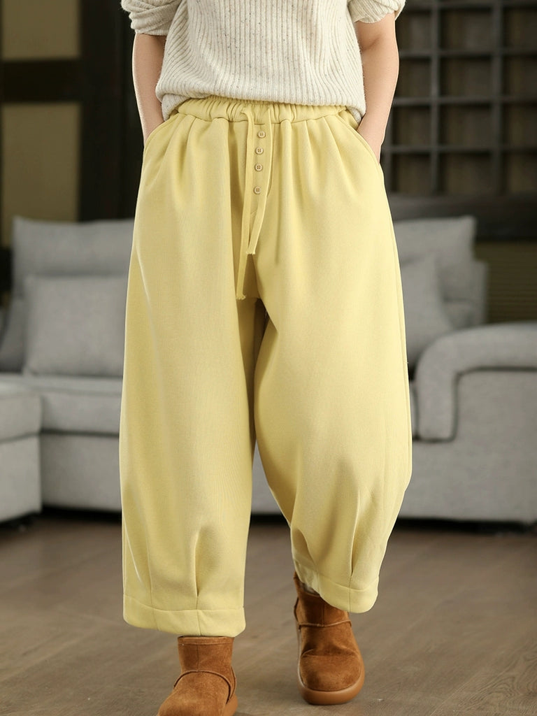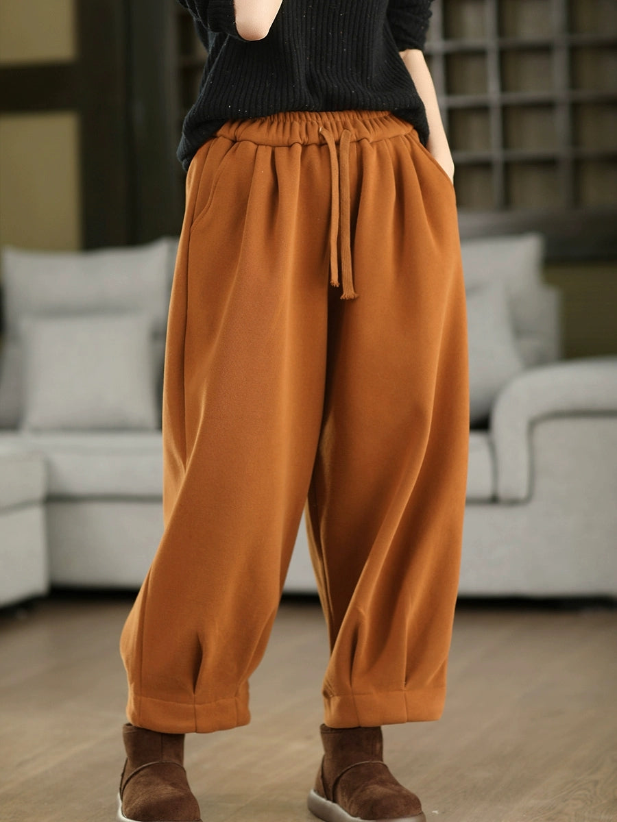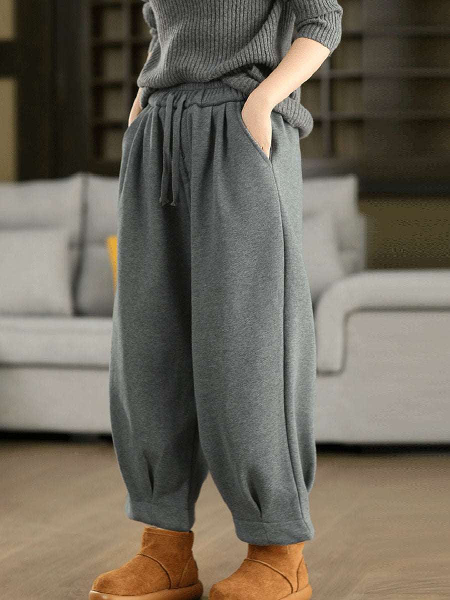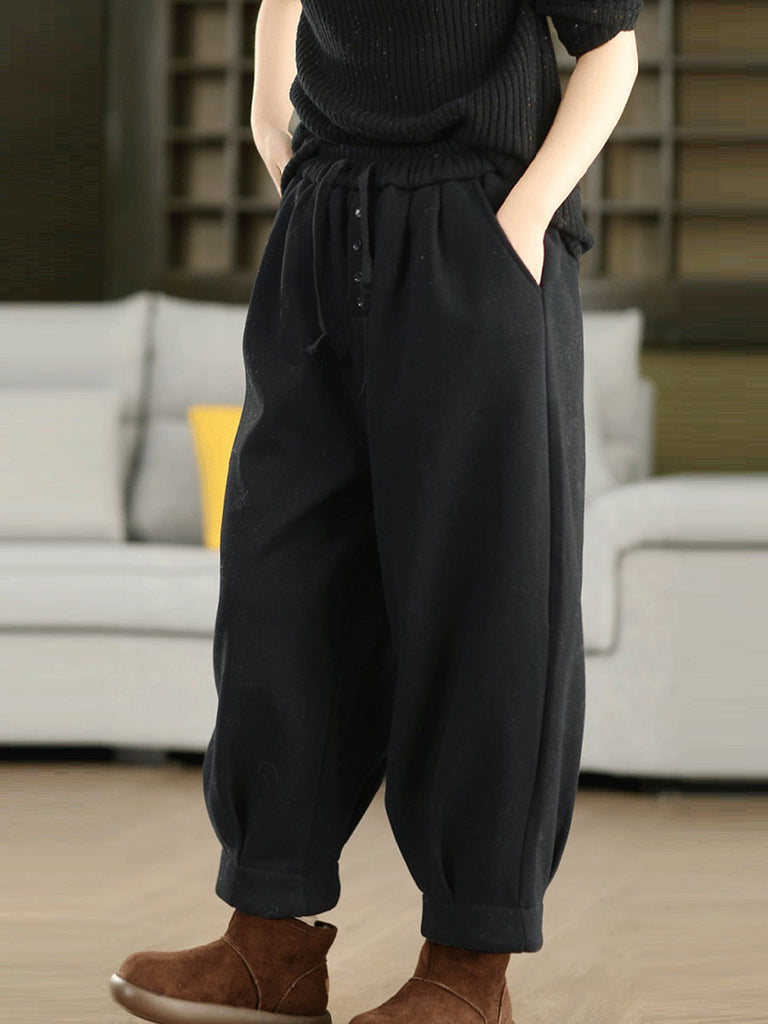 Γυναικείο Χειμερινό Ρετρό Παντελόνι Harem με Φόδρα από Φλις σε Καθαρό Χρώμα