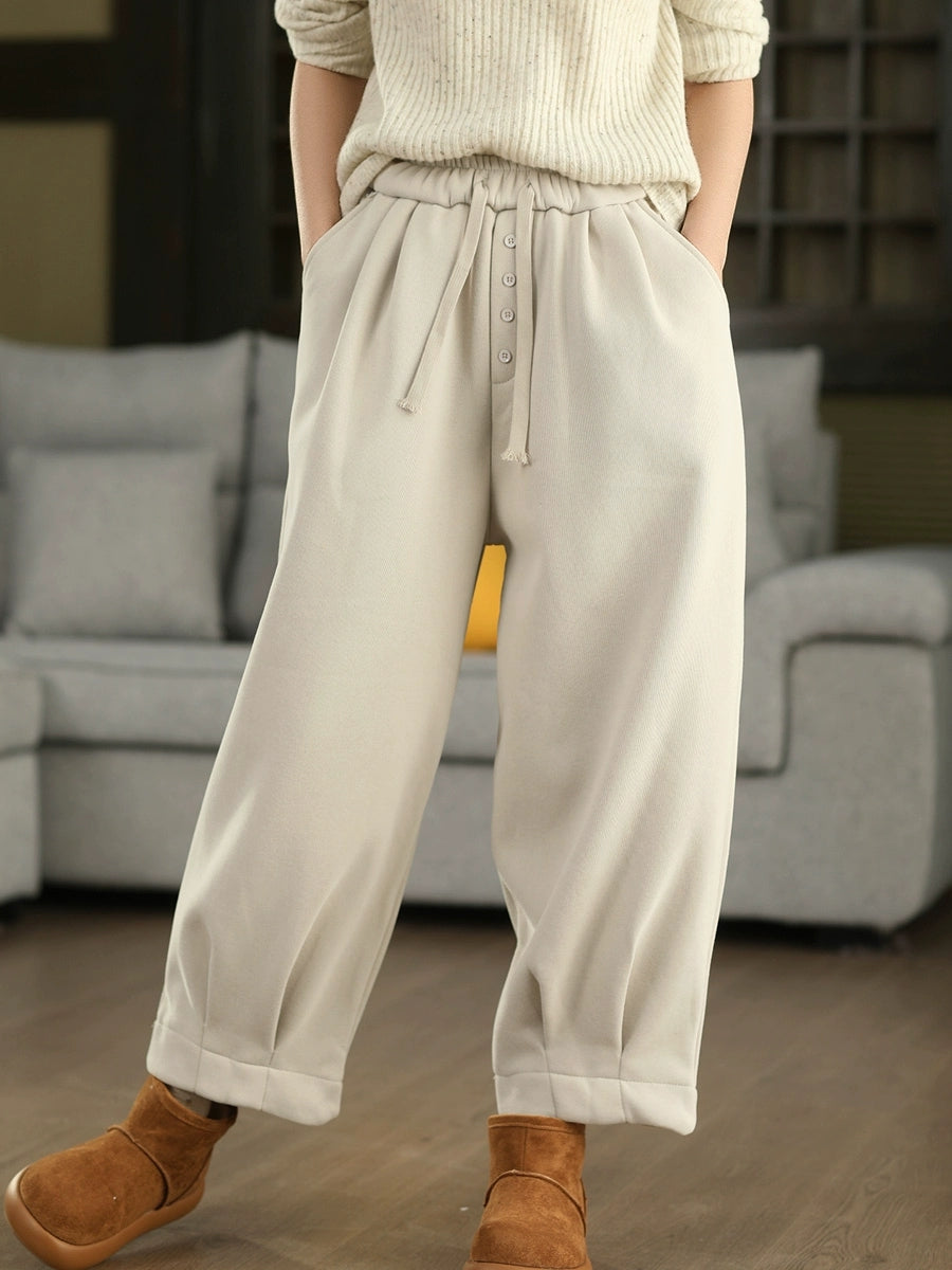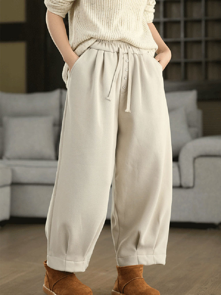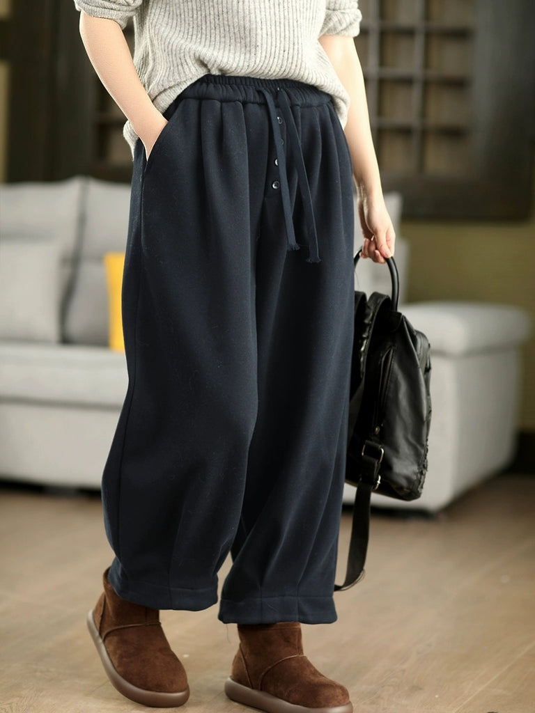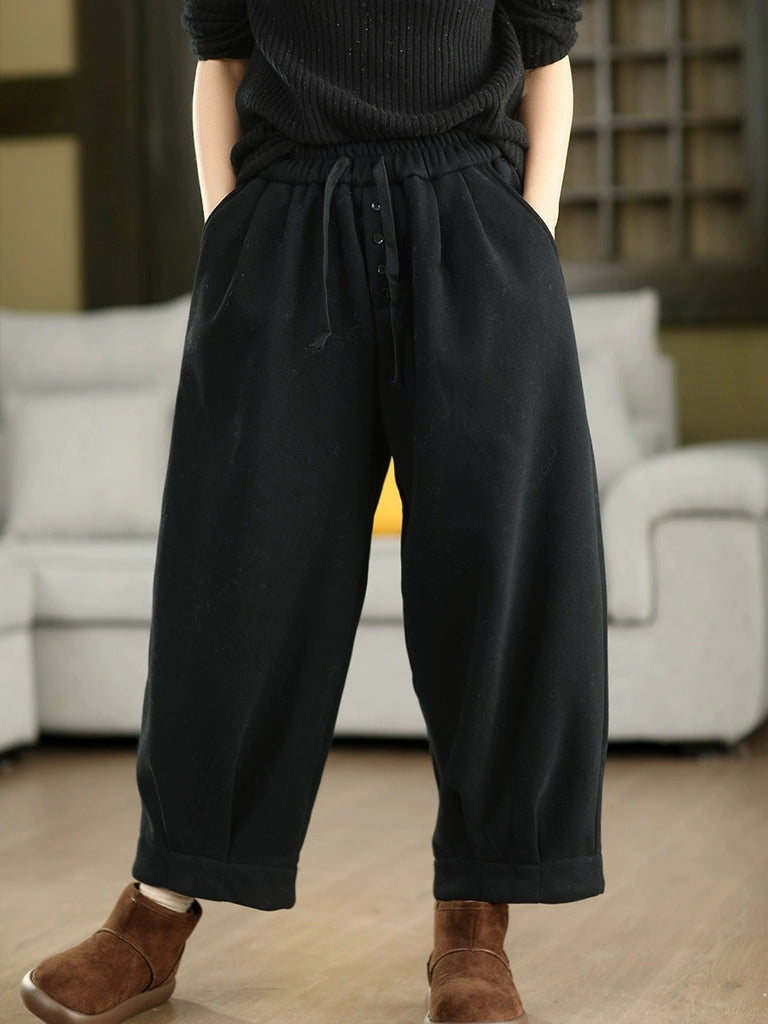 Γυναικείο Χειμερινό Ρετρό Παντελόνι Harem με Φόδρα από Φλις σε Καθαρό Χρώμα