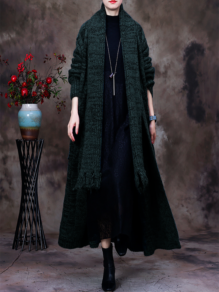 Γυναικείο παλτό Vintage μακρύ φαρδύ χοντρό πουλόβερ